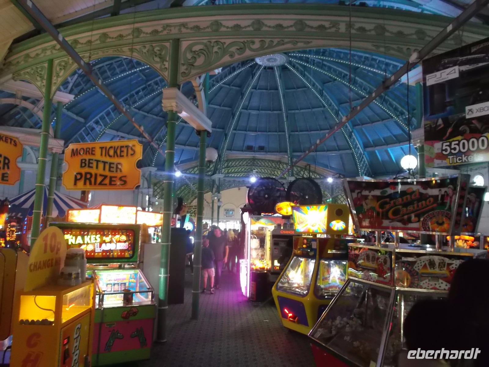 Weiter ging es dann ins vielleicht bekannteste britische Seebad, nach Brighton. Die Stadt, unter anderem bekannt für ihre Parties und ihr Nachtleben verfügt nicht nur über eine winzige Altstadt mit engen Marktgassen und einen breiten Kiesstrrand, der im Sommer übervölkert ist, sondern hat noch mehr zu bieten: Hier gibt es ein großes, beliebtes und sehr buntes „Pleasure Pier" - eine Seebrücke mit Buden, unzähligen Spielautomaten, Kiosken und Rummel-aktivitäten - und ein „königliches Gebäude". Der „Royal Pavilion" gehört zu den exotischsten Schlossbauten Europas und wurde einst für den Prinz von Wales errichtet, der später als Georg IV. den Thron bestiegt. Das Bauwerk wurde vom Architekten John Nash erbaut, der sich die Mogulpaläste in Indien zum Vorbild nahm. Nach vielfachem Besitzerwechsel gehört er nun der Stadt Brighton, die ihn nach dem Zweiten Weltkrieg originalgetreu restaurieren ließ und zum Museum machte.
