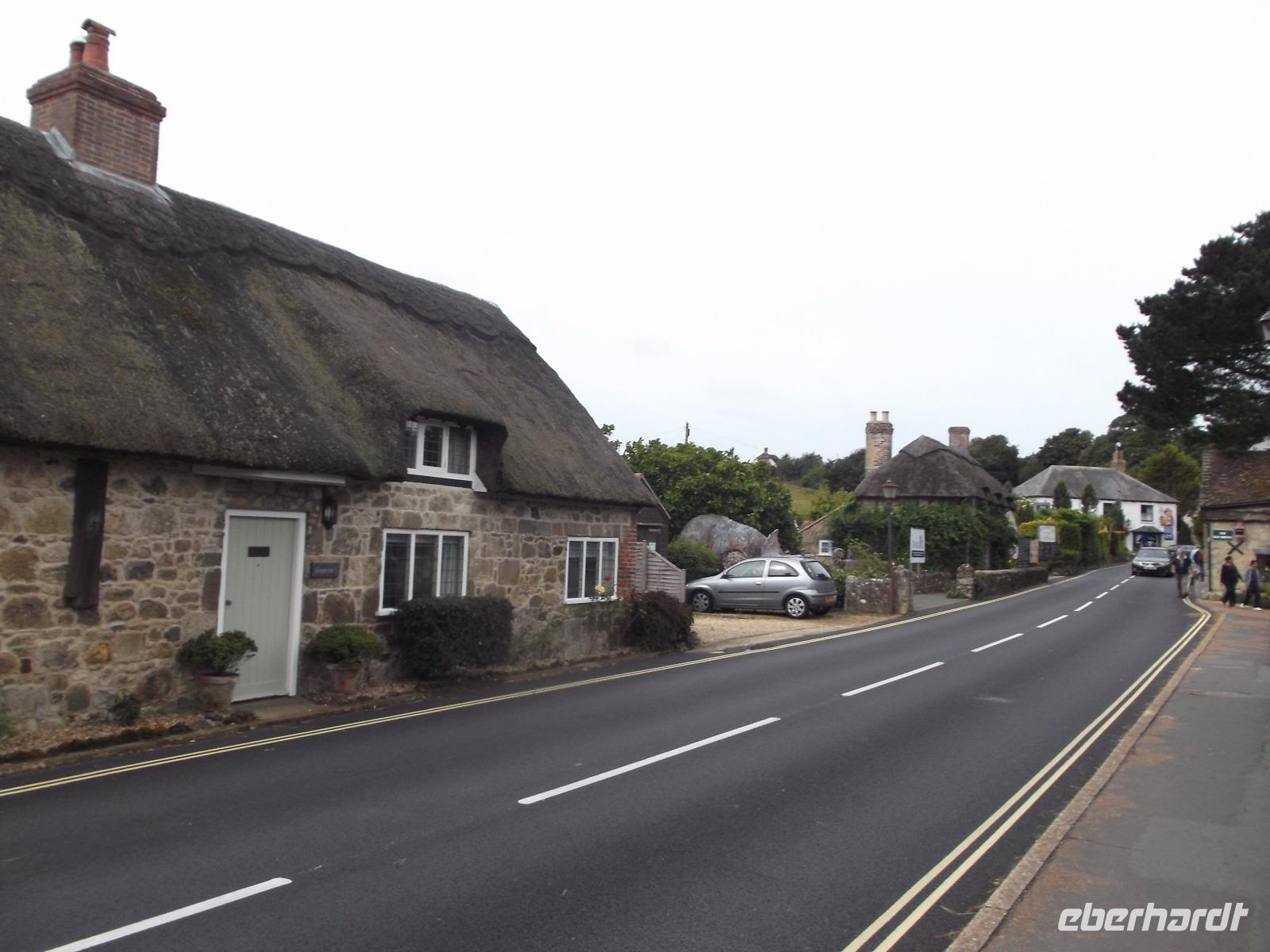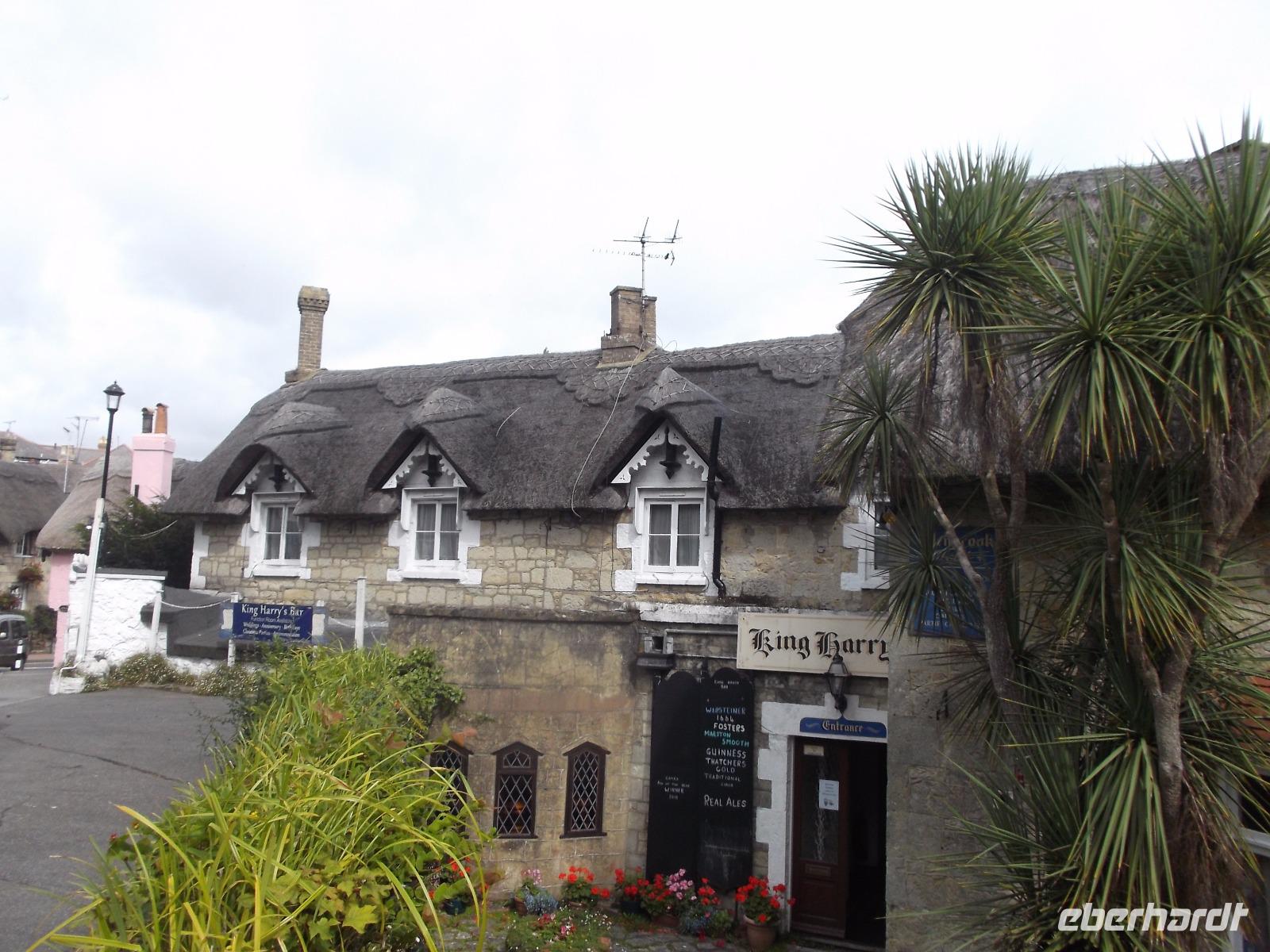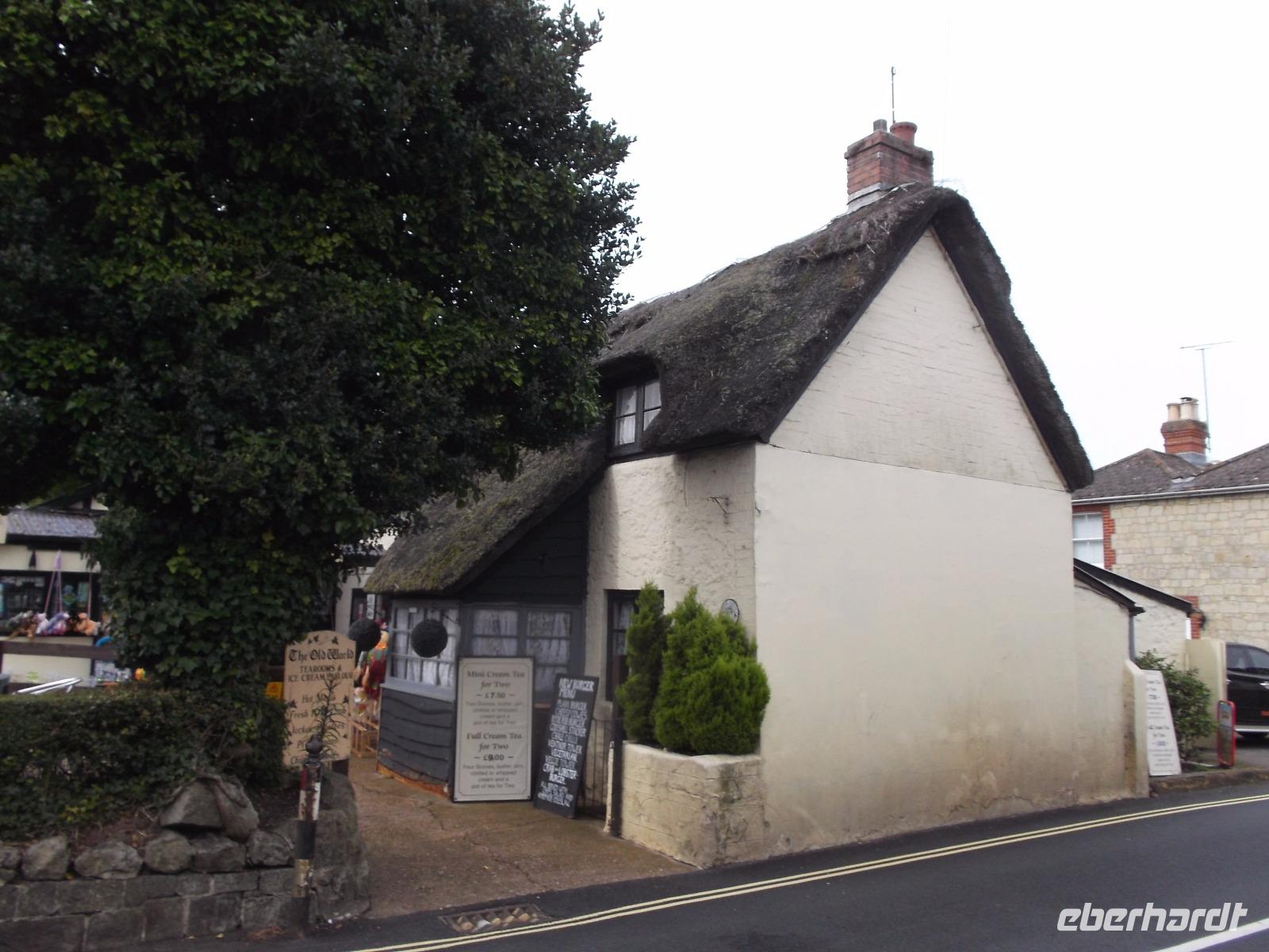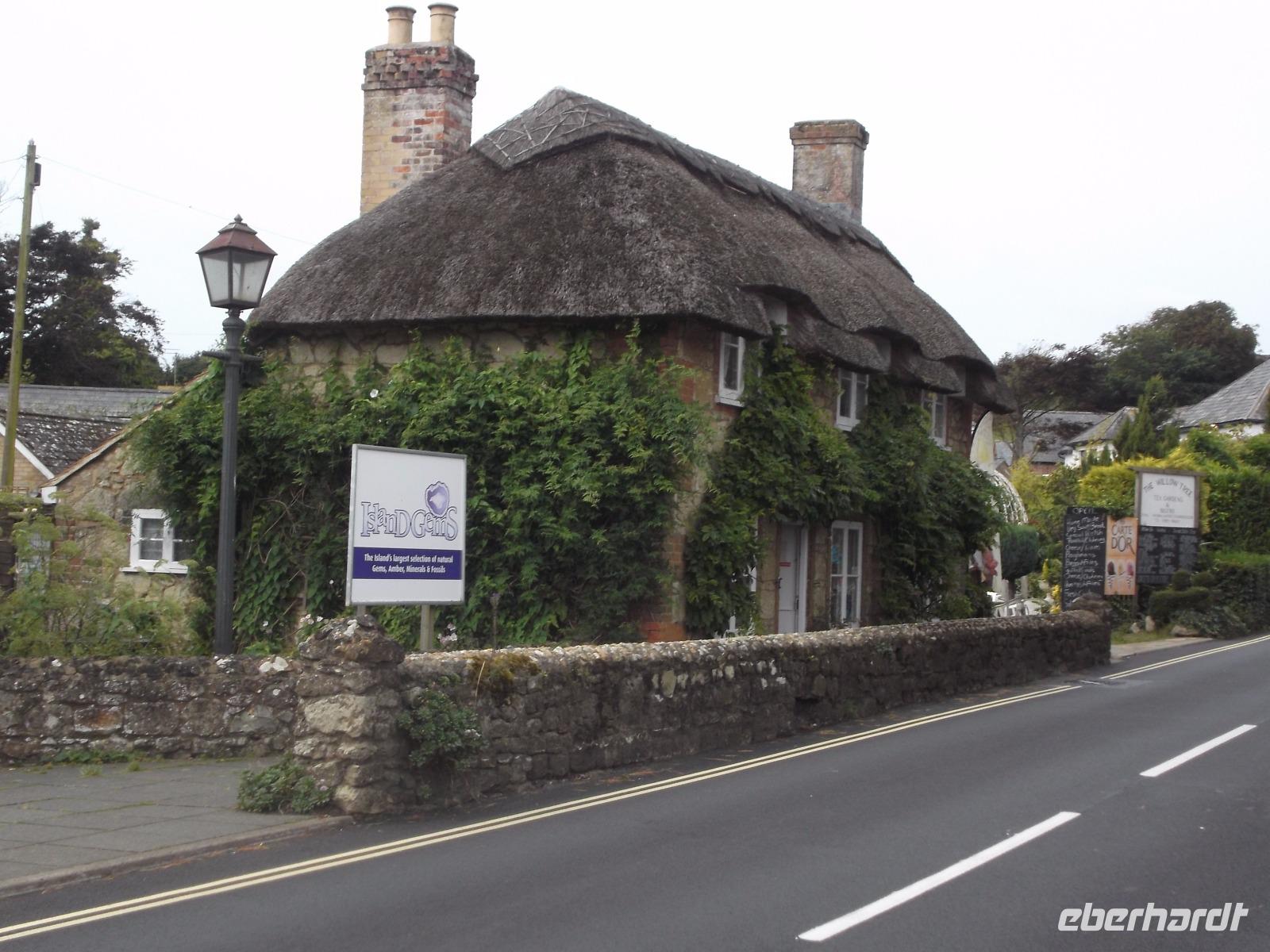 Wir durchquerten mit unserem Bus das Inselinnere, fuhren an der Inselhauptstadt Newport vorbei und erreichten bald unseren ersten Stopp in Godshill. Manche bezeichnen das beschauliche, typische Dörflein als Vorzeigedorf, denn mit seinen reetgedeckten alten Häusern, mit Cafés und Souvenirgeschäften ist es zu einem der (leider inzwischen allgemein bekannten!) „Geheimtipps" unter den Attraktionen der Ferieninsel geworden. Auch Shanklin, neben dem mit „Pleasure Pier" und bunt-grellem Rummel eher inseluntypischen Sandown eine der touristisch aktivsten Städte der Insel, wartet mit strohgedeckten Häusern - sogenannten „thatched houses" - Cafes, aber auch verträumten Winkeln und nahe am Ort gelegenen Badestränden auf. Hier in Shanklin legten wir eine Mittagspause ein - Gelegenheit für unsere Gäste, sich im malerischen Ortszentrum umzusehen.