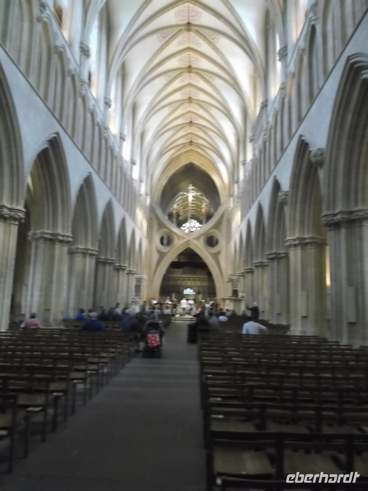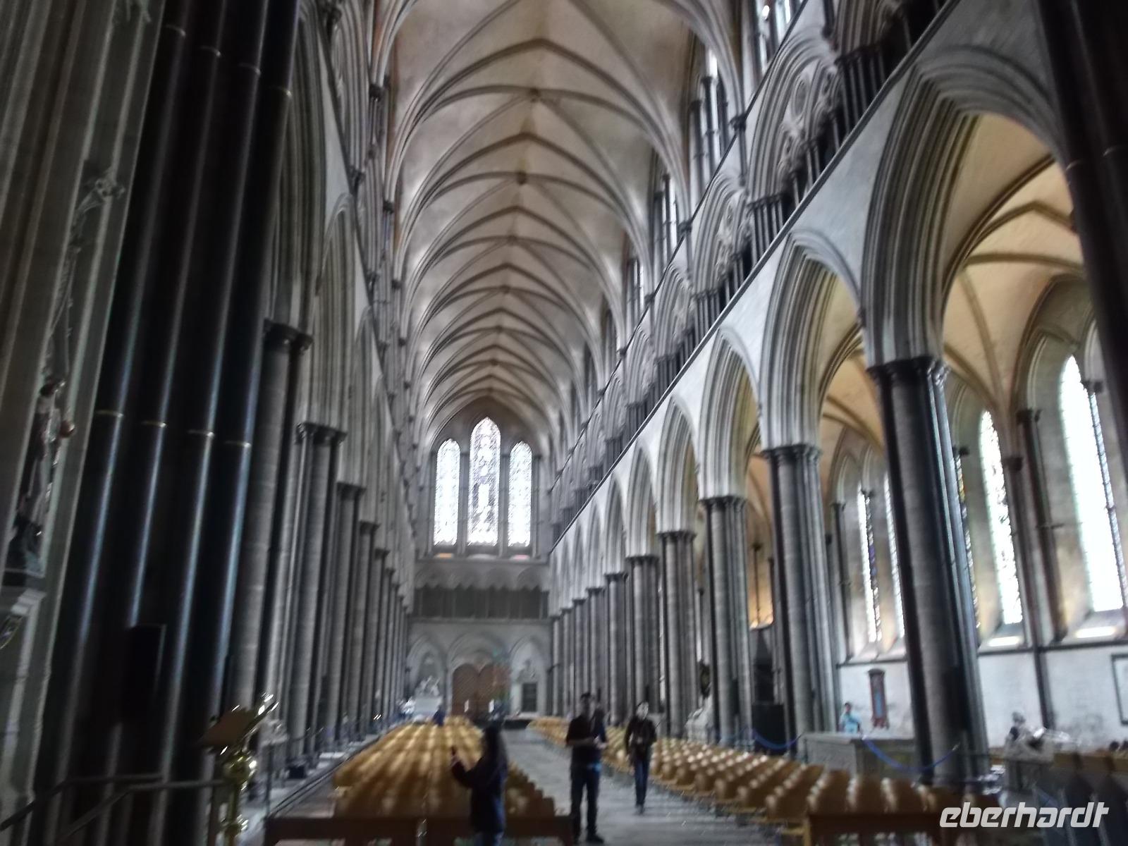Die Besichtigung dieses herrlichen Bauwerkes wurde nach Stonehenge zu einem weiteren Höhepunkt. Die verschwenderisch dekorierte Schirmfassade, die West- oder Schaufassade der Kathedrale, gehört zu den ersten ihrer Art und fasziniert ebenso wie das eindrucksvolle Kircheninnere mit seiner unvergleichlichen Raumwirkung. Beide nehmen sofort den Blick insgesamt gefangen und lassen den Betrachter erst nach und nach Einzelheiten erfassen, bis man Detail für Detail die herrlichen gotischen Verzierungen und Schmuckelemente registriert. Auch Großbritanniens größter Kreuzgang gehört zu diesem herrlichen Kirchenbau und zu diesem gehört auch das reichverzierte Kapitelhaus, das heute ein kleines Museum beherbergt. Hier ist eine besondere Kostbarkeit zu bewundern, denn die Ausstellung zeigt eine der vier erhaltenen Urschriften der „Magna Charta". Dieser Privilegienbrief, ausgestellt in Runnymeade im Jahr 1215 von König Johann Ohneland, der bis heute für Großbritannien so etwas wie eine Verfassung darstellt.