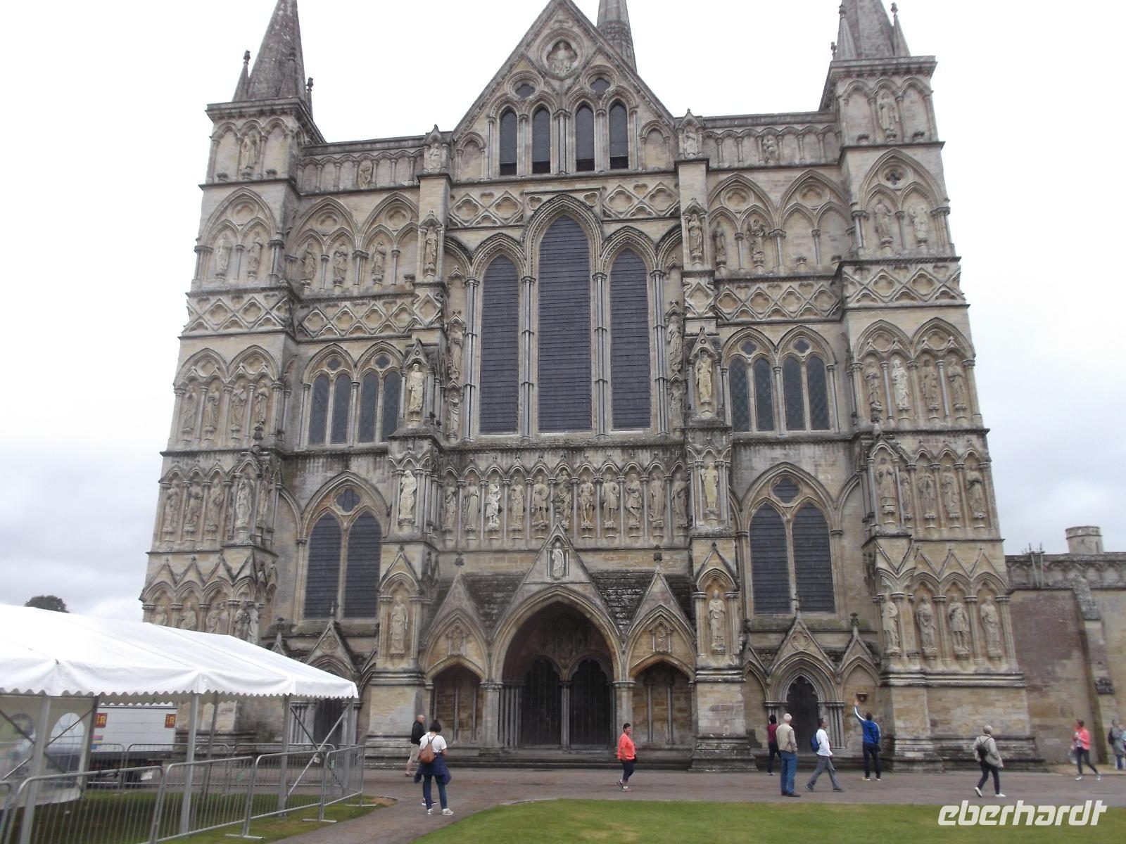 Tatsächlich gehört die Großsteinstruktur mit den umgebenden Anlagen von Grabhügeln und Menhiren, die sich teilweise im Gelände „verstecken" zu den geheimnisvollsten prähistorischen Hinterlassenschaften in der Welt. Während man in früheren Zeiten glaubte, nur Zauberei könne die gewaltigen, oft über hundert Tonnen schweren Steinblöcke bewegt haben, geht man heute von einer gewaltigen kollektiven Anstrengungen einer gerade erst sesshaft gewordenen Bauernkultur aus. Funktionen als Kalender, Himmelsbeobachtungen, die den Sonnen und Mondlauf betreffen und „Observatorium" für Sternbeobachtungen - all das vermutet man als Grund für die Errichtung der gewaltigen Steinkonstruktion, für das „Baumaterial" - eben jene tonnenschweren Steine - teilweise aus hunderten Kilometern Entfernung herantransportiert wurde. All das geschah mit rein menschlicher Kraft, denn größere Nutztiere oder technische Entwicklungen gab es zur Zeit der Errichtung von Stonehenge noch nicht! , welche wiederum aus mehreren konzentrischen Steinkreisen gebildet wird. Mehrere ineinander verschachtelte Steinkreise - z.B. ein äußerer Kreis aus Pfeilersteinen, die von Decksteinen überbrückt werden, sowie eine innere hufeisenförmige Steinsetzung aus ursprünglich fünf einzeln stehenden Trilithen (Dreisteinen) aus jeweils zwei Tragsteine, die von einem Deckstein überbrückt werden bilden den Kern der Anlage. Ihre Entstehung wird auf über 3000 Jahre v. Chr. datiert. 1986 erklärte die UNESCO Stonehenge und einen weiteren Steinkreis - den von Avebury, ebenfalls in Südengland gelegen, zum Weltkulturerbe.Wir hatten Zeit zur ausgiebigen Besichtigung des Steinkreises, bevor es weiterging nach Salisbury, der Kathedralenstadt in Wiltshire.