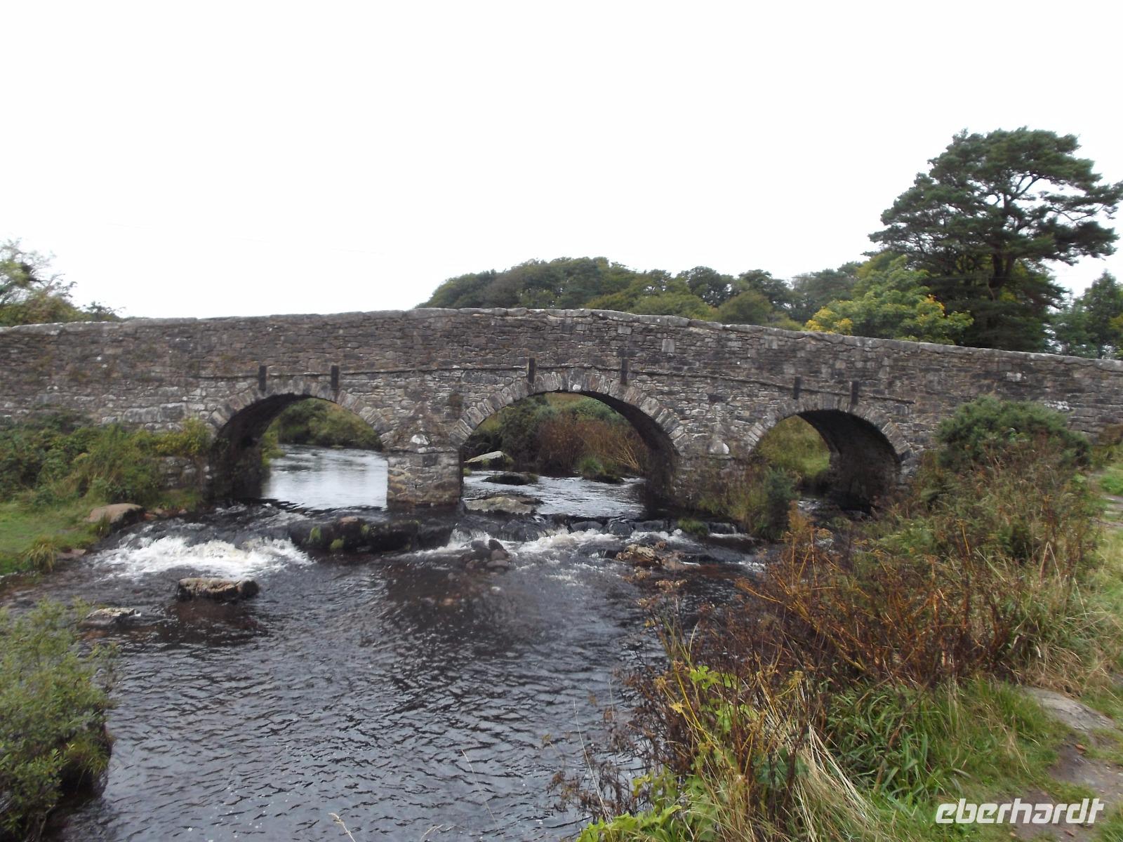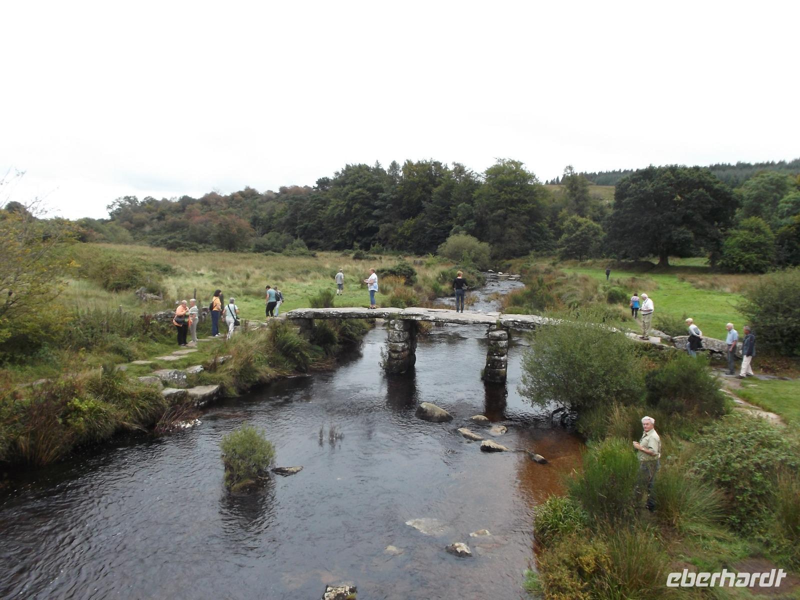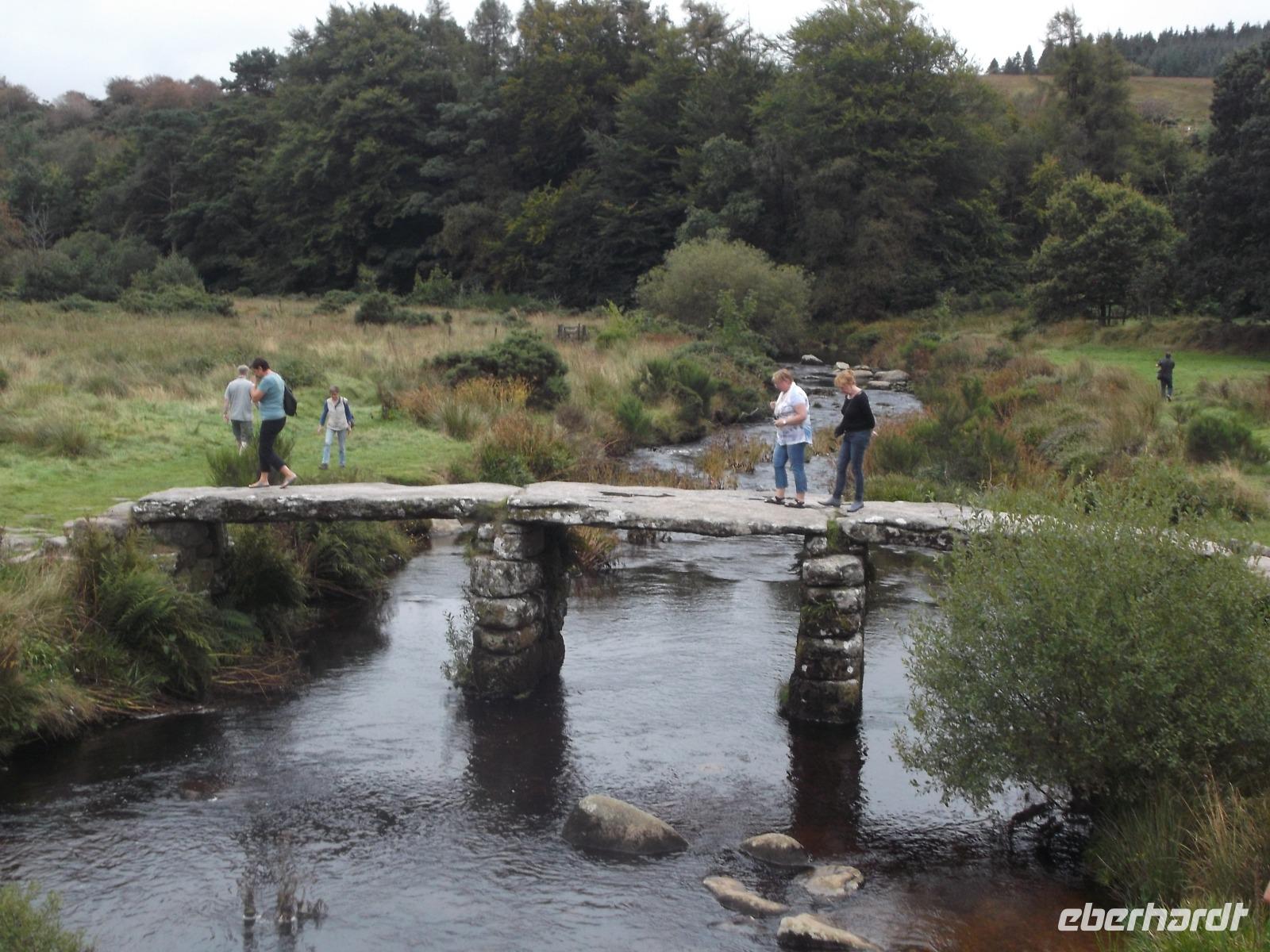 Nach dem Stadtbummel setzten wir unseren Weg nach Westen fort und begannen unsere Durchfahrt durch das Dartmoor. Anders als der Name „Moor" vermuten lässt, ist Englands berühmtestes Stein- und Sumpfgebiet kein flaches, mit Wasser gesättigtes Wald- und Wiesengebiet, sondern eine Hügellandschaft auf einem etwa 650 km² großen Granitmassiv in der englischen Grafschaft Devon. Neben mit Wald und Unterholz bewachsenen sanften Hügeln und Tälermn gibt es vor allem im Kern des Dartmoores halbwegs ebene, überwiegend mit Farnen und Heidekraut bewachsene Flächen mit steinigen Bachläufen dazwischen , die von einer Vielzahl sogenannter Tors, flacher Wiesenhügel mit Granitfelsbildungen, überragt werden. Hier im Dartmoor-Gebiet finden sich als Spuren prähistorischer Besiedlung Fundamente alter Wohnstätten, Reste uralter Straßen, aber auch megalithische Zeugnisse. Charakteristisch für das Gebiet sind auch die sogenannten Clapper bridges, die schon in der Bronzezeit aus dünnen Granitplatten erbauten Brücken über Bäche und Flüsse. Die bedeutendste dieser Clapper-Bridges findet man in Postbridge, wo wir Muße zum Fotografieren und vielleicht einer kurzen Moorwanderung - auf gekennzeichneten Wegen, versteht sich - hatten. Bei unserer Fahrt durch das von einer gewissen Mystik umgebene Gebiet - das immer wieder Autoren anregte wie z.B. den Sherlock-Holmes-Erfinder Sir Arthur Conan Doyle, der seinen „Hund von Baskerville" hier spielen ließ - konnten wir nicht nur zahlreiche, sich fast völlig frei bewegende Schafe sehen, sondern auch die charakteristischen, ausgewilderten Dartmoor-Ponies, von denen mehrere tausend im Moor leben.