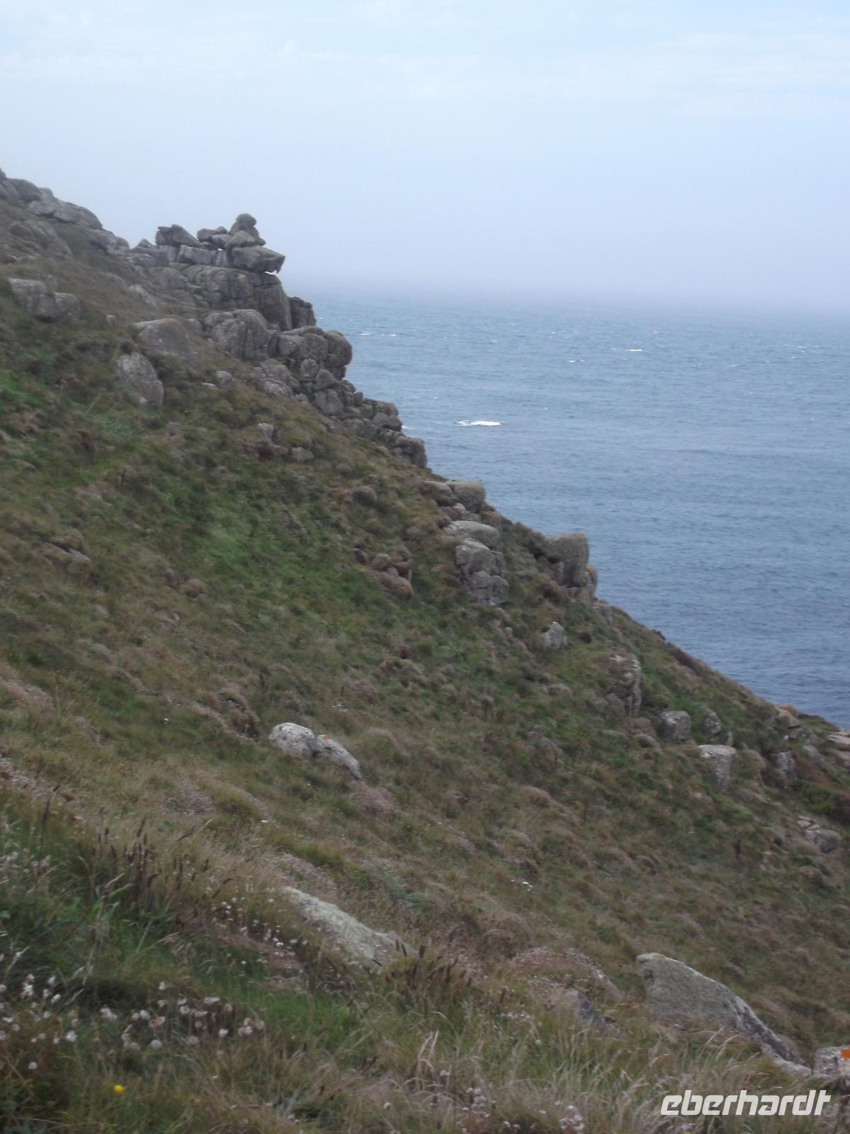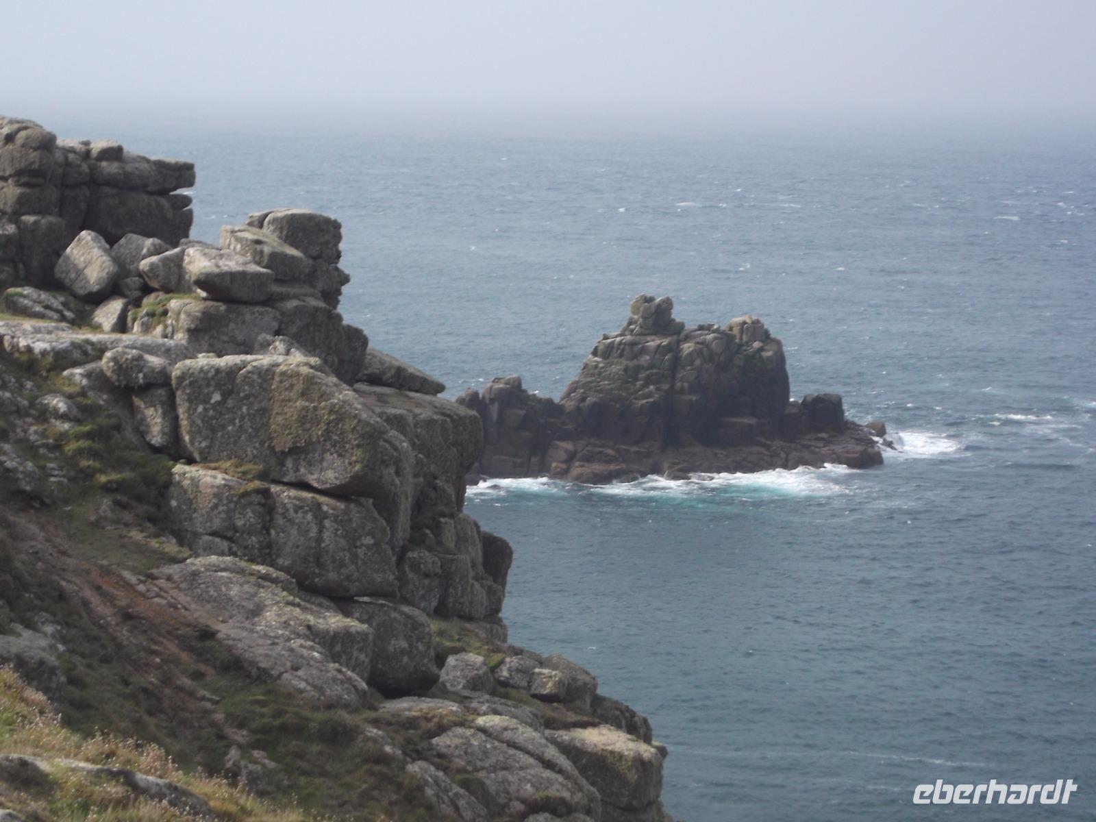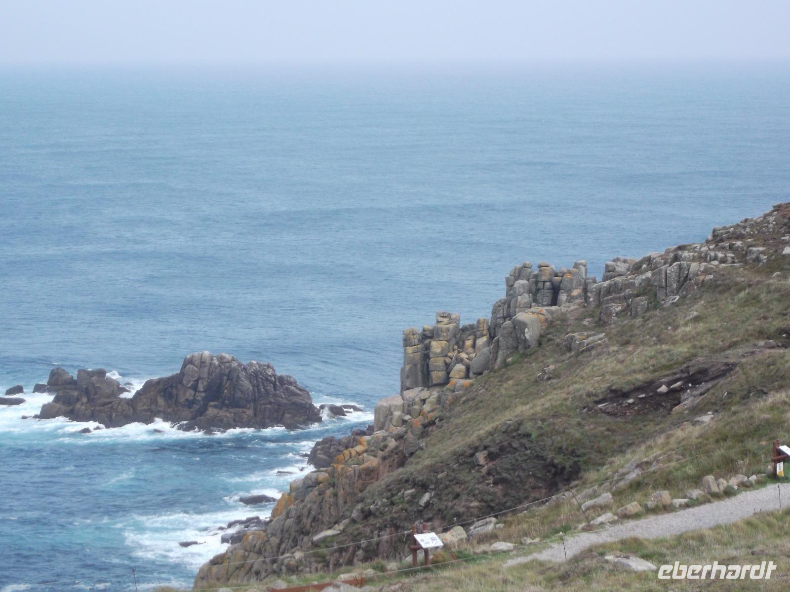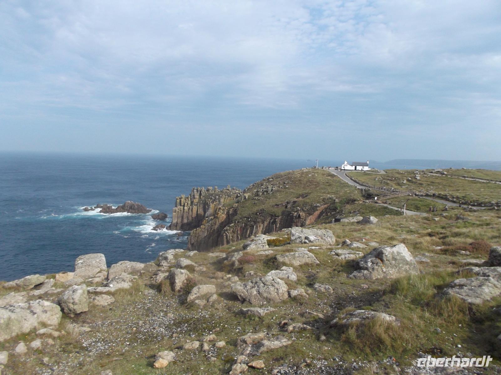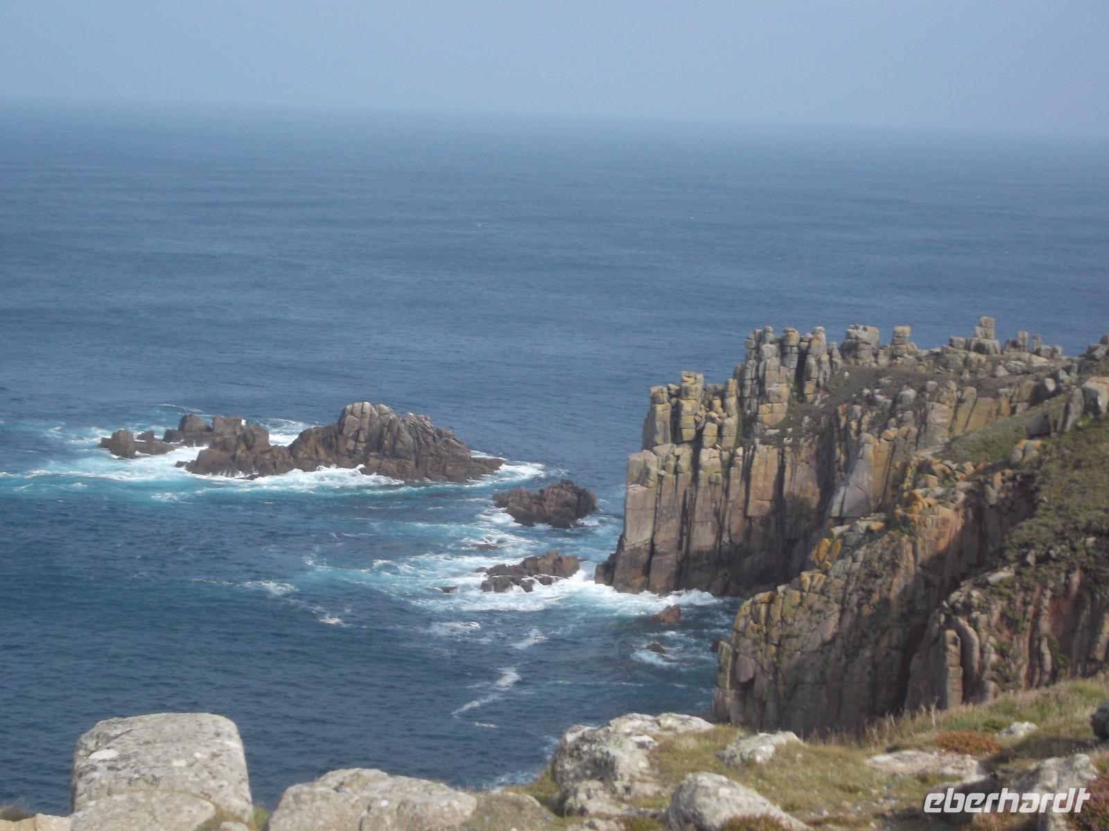 Die wild zerklüftete Südwestspitze Cornwalls war heute unser erster Programmpunkt Als „Land's End" ist sie zugleich der südwestlichste Punkt Großbritanniens und liegt sozusagen „entgegengesetzt" zur Nordostecke John O'Groats. Während wir letztere bei unserer Reise „Schottlands westliche Inseln und die Magie der Highlands" zu sehen bekommen, bildet der Südwestzipfel des Vereinigten Königreichs einen der Höhepunkte unserer Südengland-Fahrt. Weithin sichtbar ist der auf einer Land's End vorgelagerten, Quarzit-Insel gelegene Longship Leuchtturm, der stets den Eindruck vermittelt, sturmumtost zu sein. Tatsächlich ist auf Land's End immer windig und eine gut sicht- und hörbare Brandung schlägt gegen die rötlichen Felsen der Landzunge. Land's End, wegen der geographischen Lage oft Ausgangspunkt von Wanderungen, befindet sich in Privatbesitz. Daher hat man hier eine Art touristisch ausgerichteten Themenpark errichtet, in dem verschiedenes an Shows und Geschäften besucht werden kann. Bei unserem Aufenthalt, bei dem das felsige Gebiet aufgrund der frühen Stunde noch nicht komplett von Touristen überlaufen war, hatten wir Gelegenheit zu einer kleinen Wanderung bei schönem, aber windigem Wetter durch die Schönheiten der Klippenlandschaft.