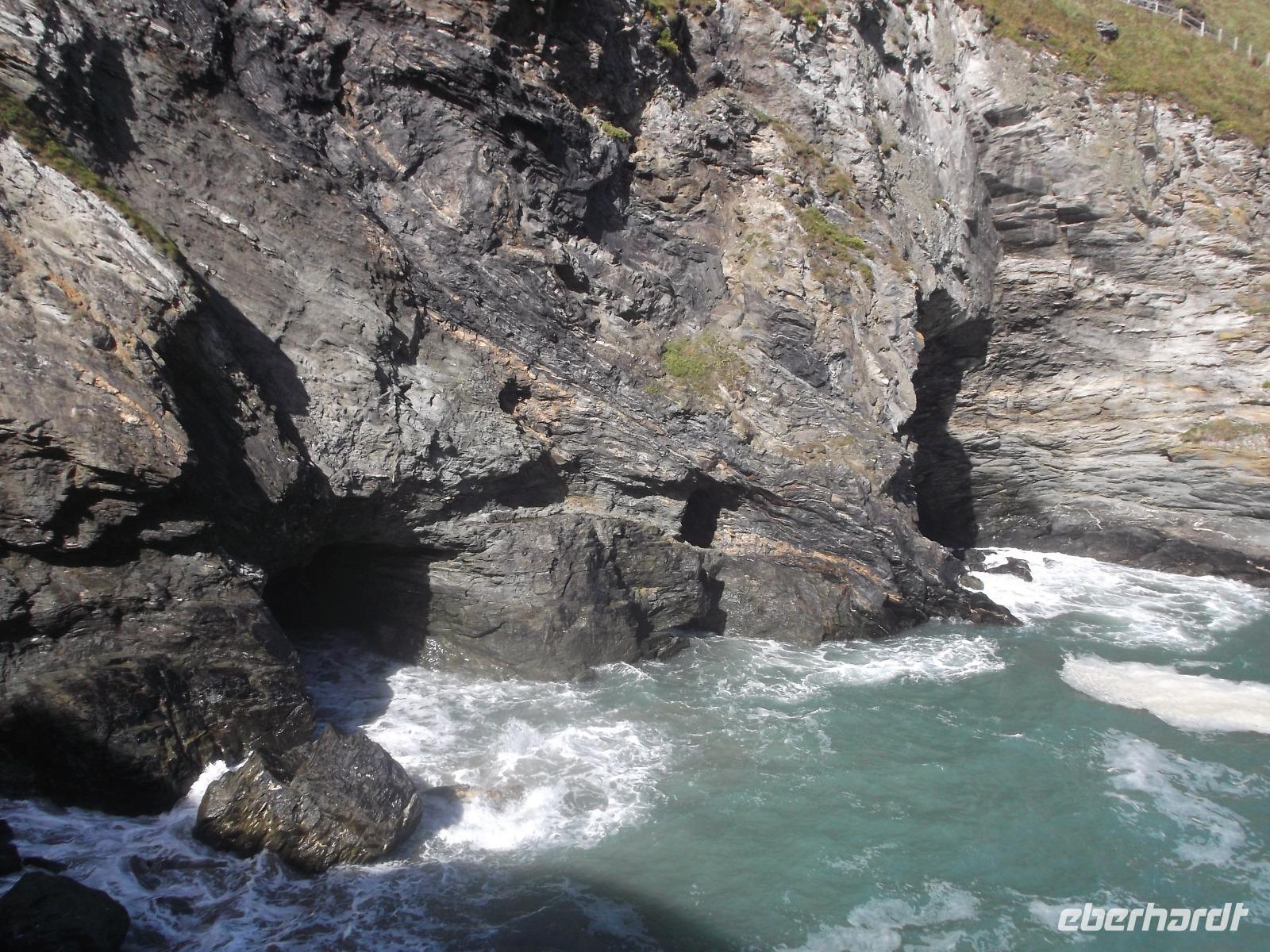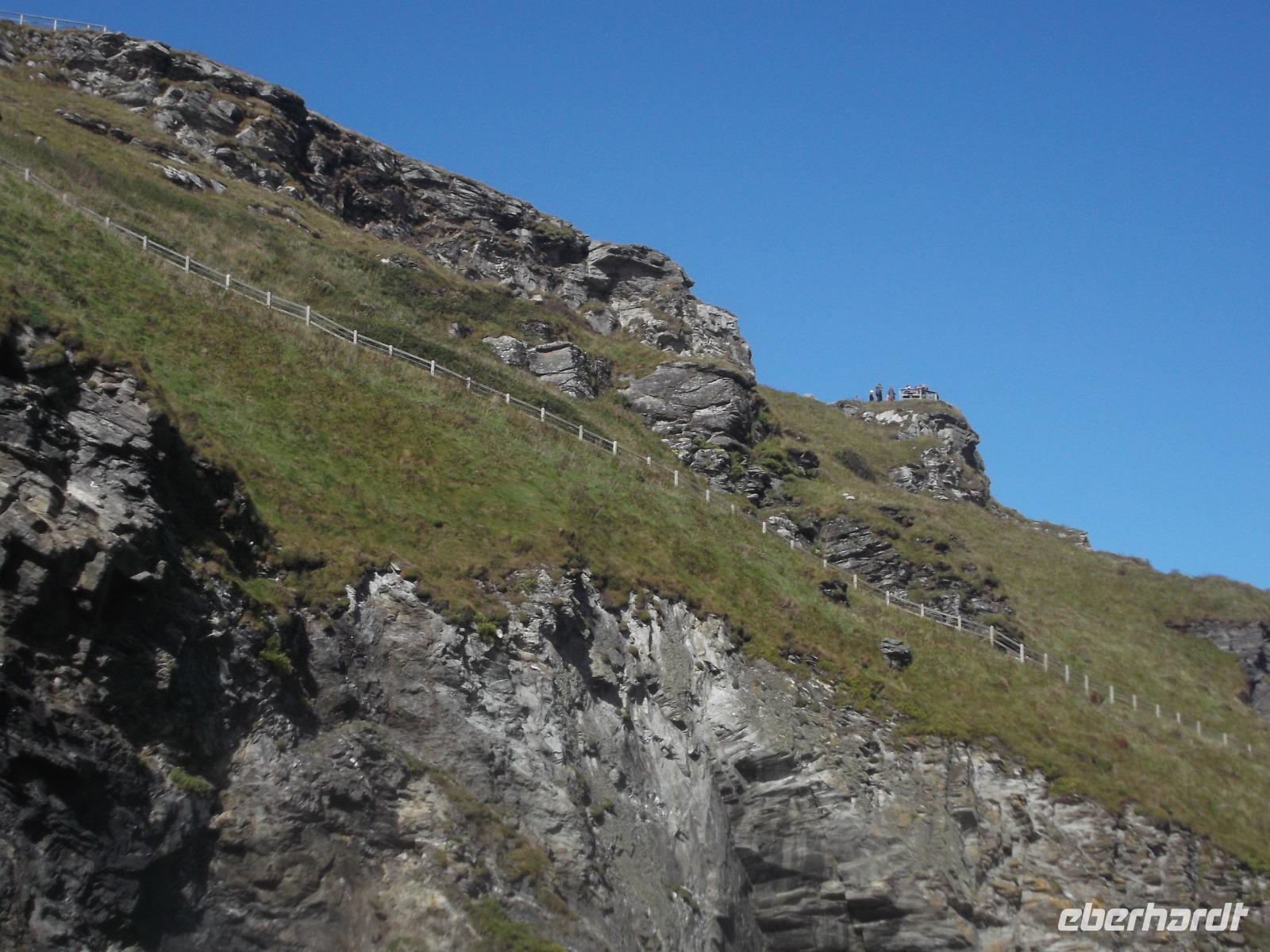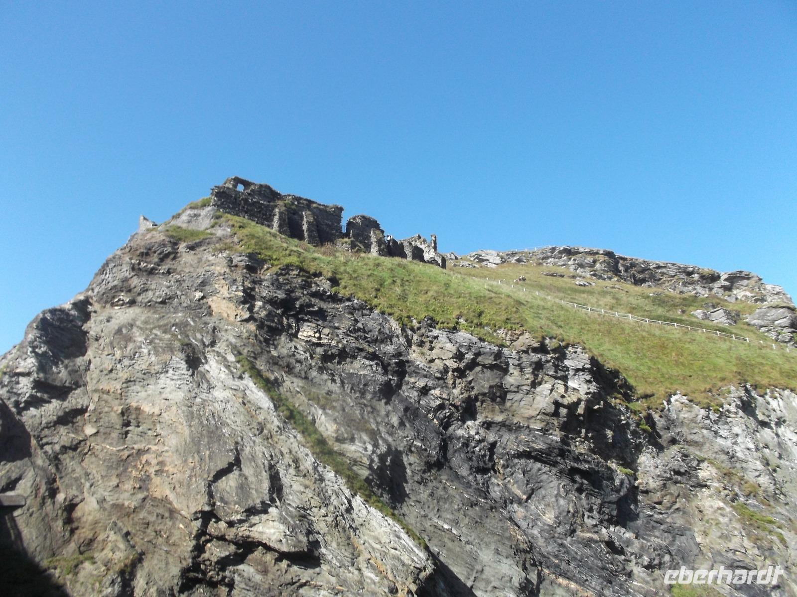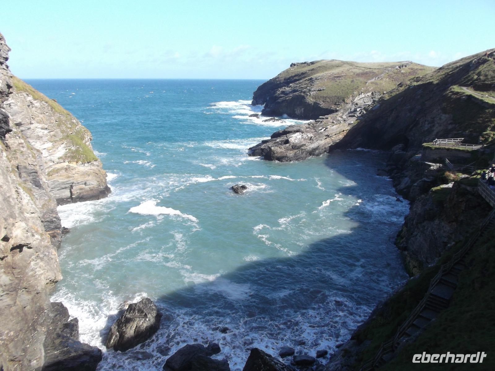 Artus, Sohn des Feldherrn Uther Pendragon, soll dessen Schwert Excalibur aus einem Stein gezogen und sich damit als rechtmäßiger König Britanniens legitimiert haben. Als neuer König anerkannt, einigte Artus die bis dahin zerstrittenen Ritter und führte an seinem Hof in Camelot die Tafelrunde ein. Immer wieder wurde dabei die alte Felsenburg Tintagel als sagenhafter Geburtsort von Artus genannt, unter dem sich auch Merlins Zaubergrotte befindet. Bei herrlichem Wetter besuchten wir diese legendäre Stätte und konnten von der imposanten Ruine, die sich über zwei Berggipfel mit einer Schlucht dazwischen erstreckt, phantastische Ausblicke auf das Meer und die Küstenlandschaft von Cornwall genießen. Dabei wird die „sagenhafte" Harmonie nicht einmal durch den Umstand gestört, dass die mittelalterliche Burg erst um 1230 errichtet wurde, sich die Artusgeschichte aber schon ein paar hundert Jahre zuvor zugetragen haben soll ... Die Burg wurde auch bald nach ihrer Erbauung wieder aufgegeben, schon im 15. Jahrhundert bezeichnete man sie als verfallen.
