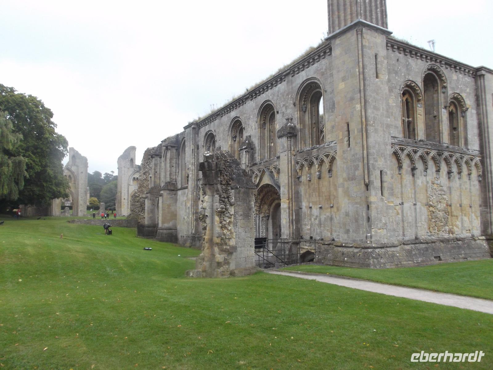 Heute hieß es Abschied nehmen von Cornwall. Der recht lange Weg führte uns über die Schnellstraße qauer durch Cornwall und wieder an Bodmin Moor und dem Dartmoor entlang bis nach Glastonbury im Herzen der Grafschaft Somerset. Die Kleinstadt ist vor allem aufgrund der Glastonbury Abbey bekannt, einst eine der größten Abteien Europas und heute eine Ruine, um die sich zahlreiche Mythen und Legenden ranken. Schon vor Einfahrt in den Ort erblickt man vom Weitem eine Quelle der Mythen um Glastonbury: den Tor, einen gewaltigen Hügel, gekrönt vom Turm der einstigen Michaelskirche. Es ist dies eine seit prähistorischer Zeit bekannte Kultstätte, derentwegen Glastonbury im Ruf steht, das sagenhafte Avalon zu sein. Deswegen begegnet man hier nicht nur dem im Süden Englands allgegenwärtigen Artus, auch die christliche Überlieferung steuert das Ihre zu den Mythen bei: Joseph von Arimathäa, einer der Förderer von Jesus Christus, soll hier nach Glastonbury in der damaligen römischen Provinz Britannia gereist sein und den Heiligen Gral hierher gebracht haben. Etwas entfernt vom Fuße des Tor entstand dann die Abtei, die rasch zu einer der reichsten und größten des Landes wurde und die wir besichtigten.