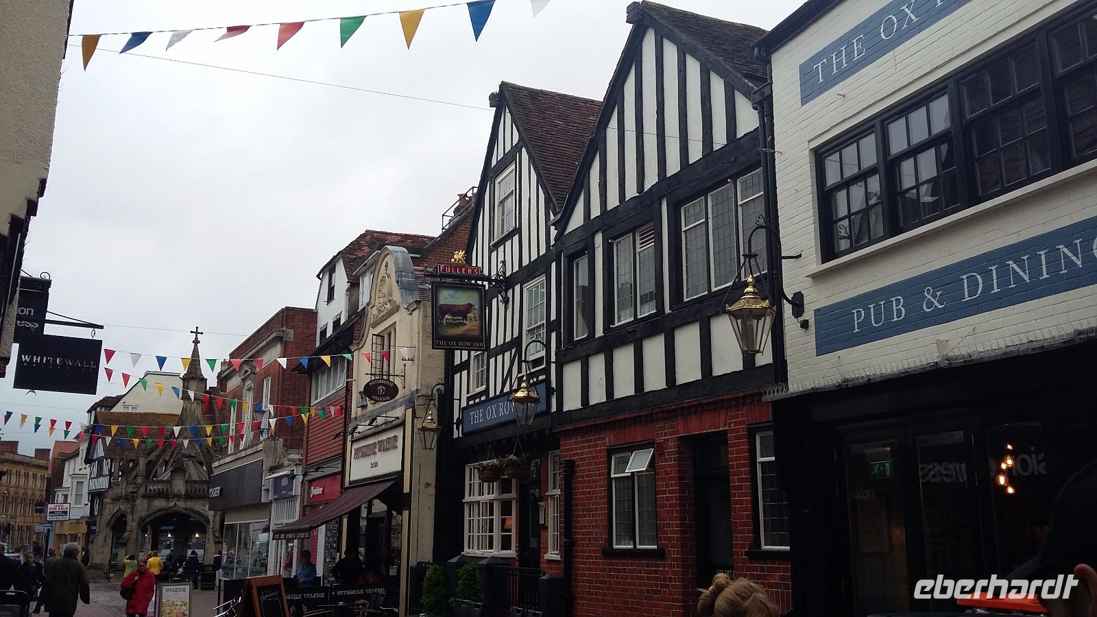 Unser erster Stopp führte uns ins wunderschöne und sehr gut erhaltene Örtchen Rye. In einem ausführlichen Stadtrundgang entdeckten wir die pittoreske Mermaid Street, inklusive des Mermaid Inns, einem der berühmtesten Pubs in ganz Großbritannien, das Flussufer, die beiden Kirchen, zwei tolle Aussichtspunkte und das noch erhaltene Stadttor Landgate. Nach dem Mittagessen am Bus ging es- vorbei am historisch bedeutsamen Hastings- ins pulsierende Seebad Brighton. Hier trafen wir zum ersten Mal auf unsere Fluggäste und betrachteten die wichtigsten Sehenswürdigkeiten zunächst aus dem Bus heraus. Unsere kleine Stadtrundfahrt führte uns zum Pier, der bekannten Seebrücke, dem Royal Pavilion, vorbei an Brightons Altstadt, den Lanes und in den Regency District, wo alle Gäste von der imposanten Architektur beeindruckt waren. Anschließend entschlossen sich einige Gäste zur lohnenswerten Besichtigung des Royal Pavilions, andere schlenderten durch die Lanes oder probierten eine der zahlreichen Fish-and-Chips-Tipps des Reiseleiters aus. Von Brighton aus ging die Reise weiter Richtung Eastbourne, wo sich unser Hotel befand. Doch das Abendessen musste sich erst verdient werden: eine ca. 30-minütige Wanderung an den Steilklippen des Beachy Heads sorgte nicht nur für spektakuläre Ausblicke, sondern auch für eine ganze Menge gute Laune unter den Gästen. Nach dem leckeren Abendessen verschlug es ca. 15 Gäste und den Reiseleiter nochmal in einen Pub im Stadtzentrum, wo der Abend einen netten Ausklang fand.