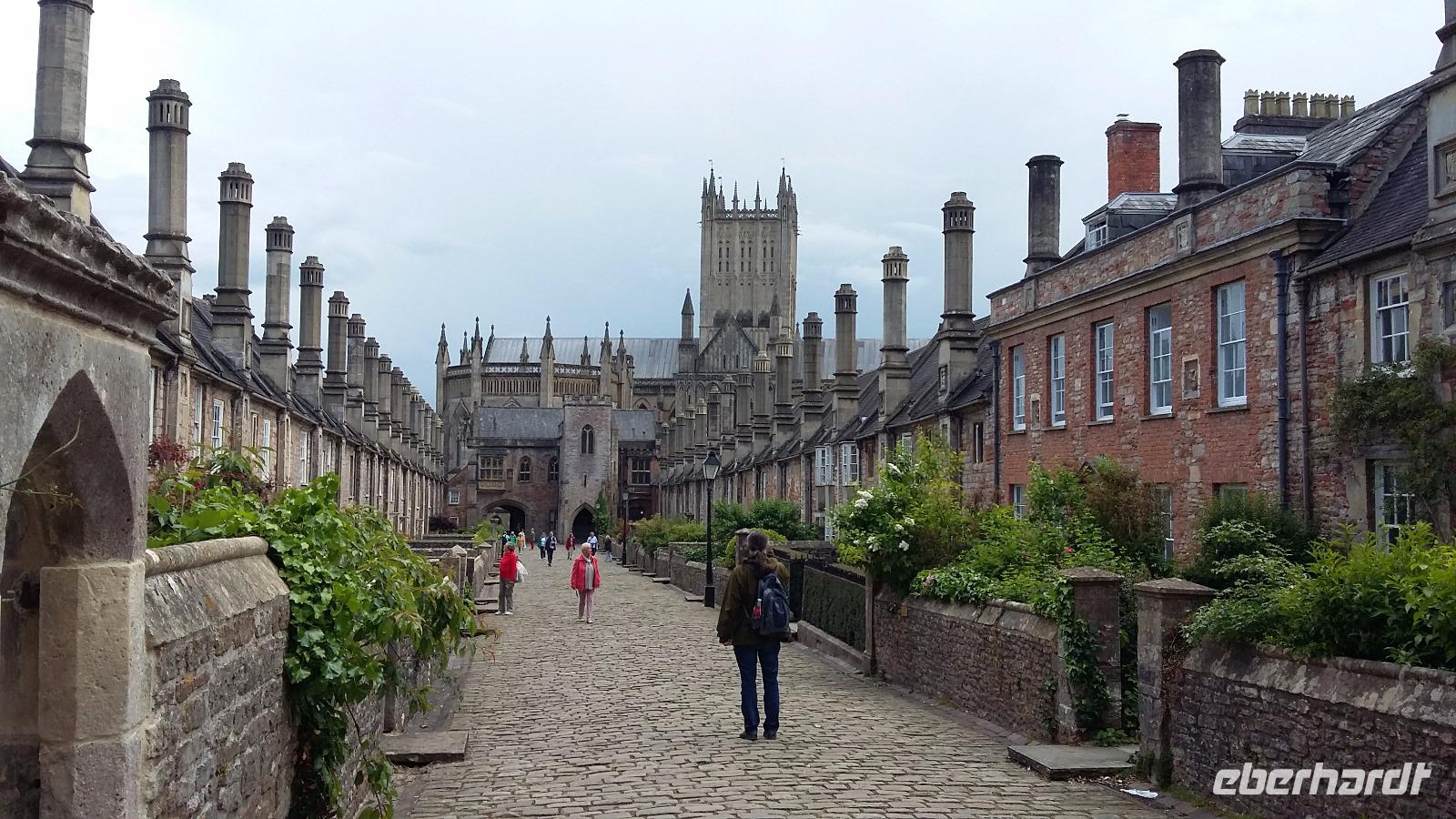 Erste Station des heutigen Tages war Glastonbury- Englands mystischster Ort und Hippie-Stadt gleichzeitig. Am sagenumwobenen Glastonbury Tor vermutet man den Heiligen Gral und in der geschichtsträchtigen Glastonbury Abbey ist angeblich König Artus begraben. Zur Besteigung des Hügels, auf dem sich das Glastonbury Tor bzw. der St. Michael-Turm befindet, reichte die Zeit leider nicht aus. So widmeten wir uns stattdessen der ausführlichen Besichtigung der ehemals größten Abtei Großbritanniens und schlenderten in aller Ruhe durch das kleine Städtchen, das von Edelsteinläden, alternativen Cafés und anderen spirituellen Adressen nur so wimmelt. Anschließend ging es weiter ins nur knapp 10 Meilen entfernte Wells, ebenfalls ein wunderschönes mittelalterliches Kleinod mit einer imposanten Kathedrale, die sich die meisten Gäste auch von Innen anschauten und hellauf begeistert waren. Außen beeindruckte vor allem die reichverzierte Westfassade, innen die herrlichen Fenster und Figurenkapitelle. Von Wells aus führte uns unsere Reise- vorbei an Ciderfarmen und durchs Käsestädtchen Cheddar- nach Bristol, wo wir unser Hotel bezogen. Nach dem sehr amüsanten und leckeren Abendessen begab sich knapp die Hälfte der Gäste in den Llandoger Trow, einen der ältesten und geschichtsträchtigsten Pubs Großbritanniens, wo der Abend bei Bier, Wein und netten Gesprächen ausklang.