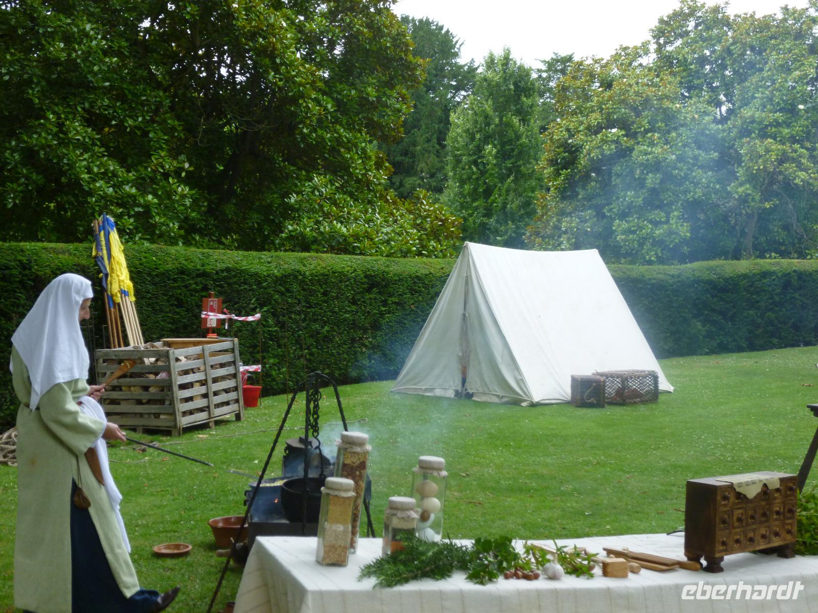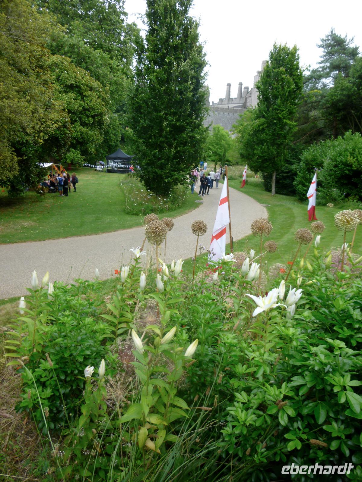 In den ausgedehnten gepflegten Schlossgärten erfreute uns mittelalterliches Treiben: Falkenschau, Ritter, Kräuterfrauen.