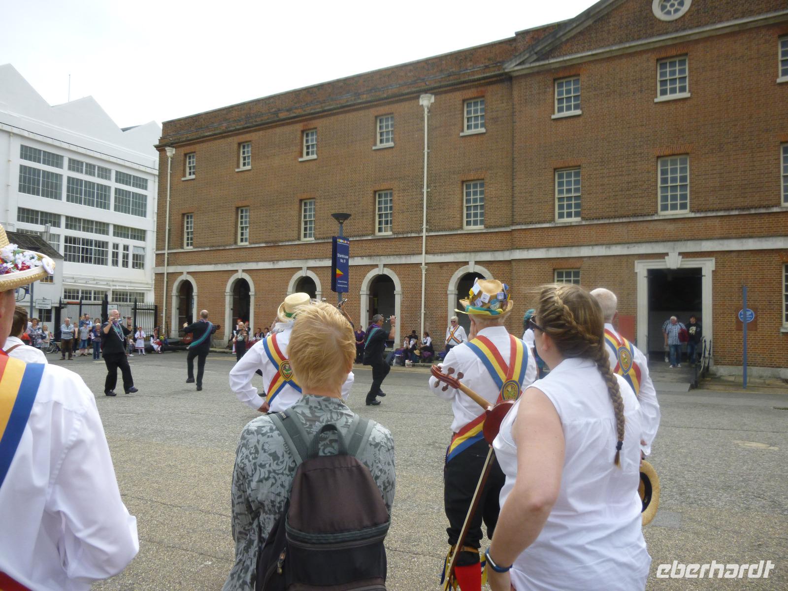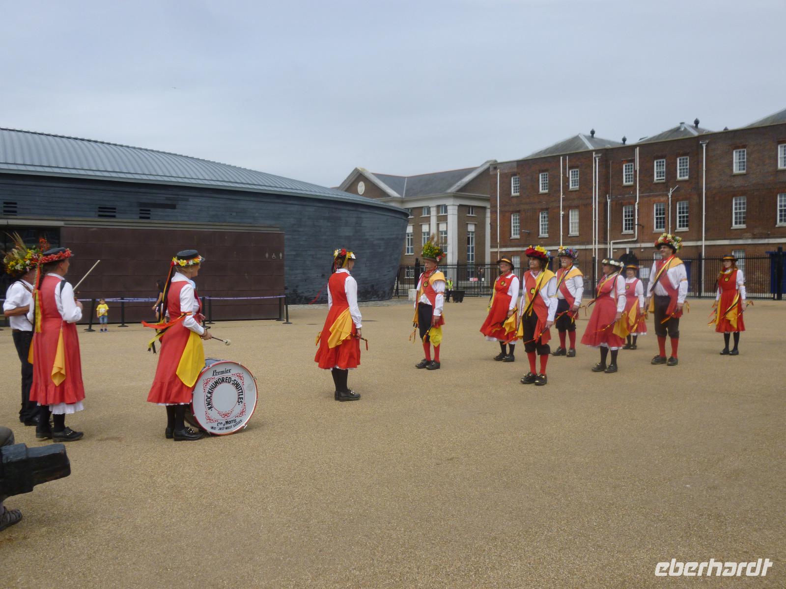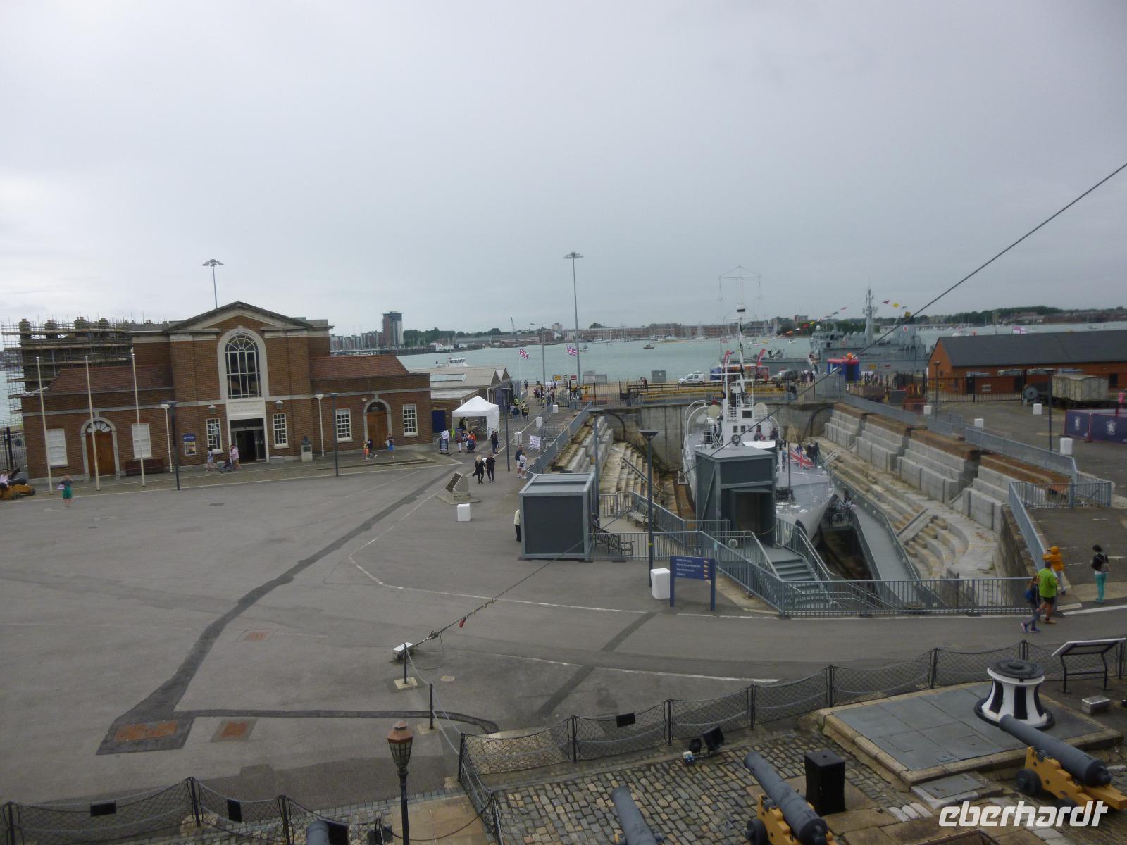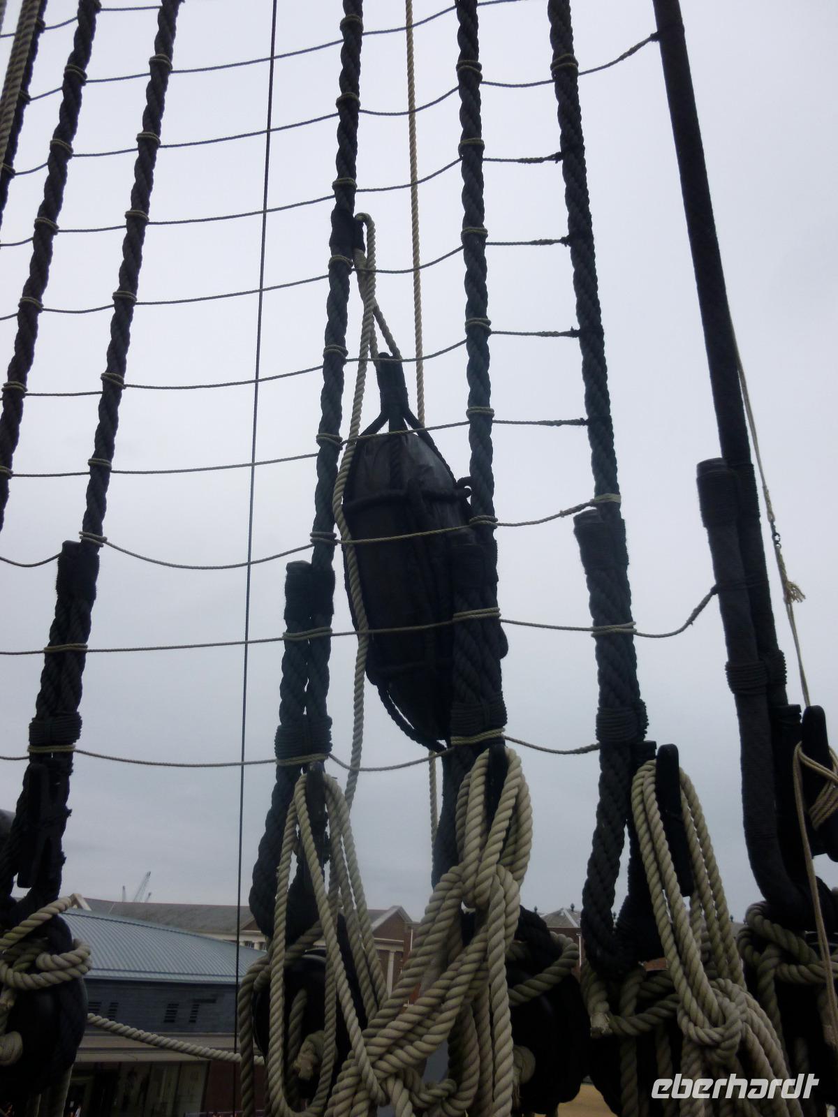 Die HMS Victory ( 18. Jh.) ist neben der Mary Rose (16. Jh.) und der HMS Warrior (19. Jh.) eines der Schiffmuseen und wohl das berühmteste Kriegsschiff, eng verbunden mit dem Trafalgarsieg von Lord Nelsons Truppen. Das Schiff ist voll einsatzfähig und zwischen Steuerrad und Achterdeck fanden wir die markierte Stelle, wo Nelson tödlich verwundet wurde.