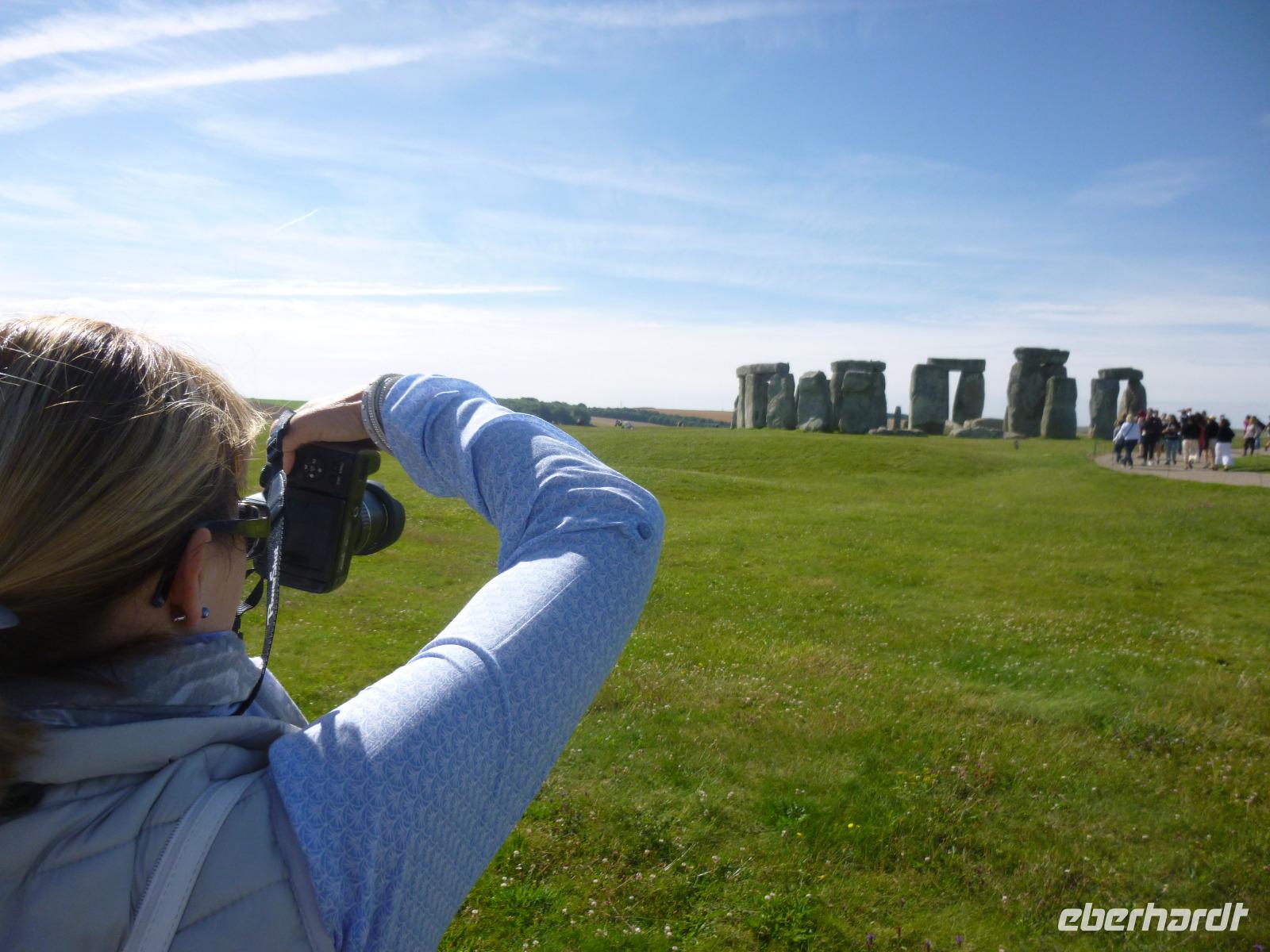 Das 1986 zum UNESCO Weltkulturerbe ernannte Stonehenge ist einzigartiger Zeuge der langen Geschichte der Ebene von Salisbury. Entstanden in mehreren Bauabschnitten vor fünftausend Jahren bildet es mehrere Kreise, die wir von verschiedenen Perspektiven aus betrachteten. Vieles über die Megalithen ist noch nicht erforscht, Sonnenbeobachtungen könnten sie gedient haben oder Fruchtbarkeitszeremonien. Rundum befinden sich ca. 350 Hügelgräber der Wessex-Kultur mit teilweise wertvollen Grabbeigaben, so könnte Stonehenge auch deren Totenkult genutzt haben.