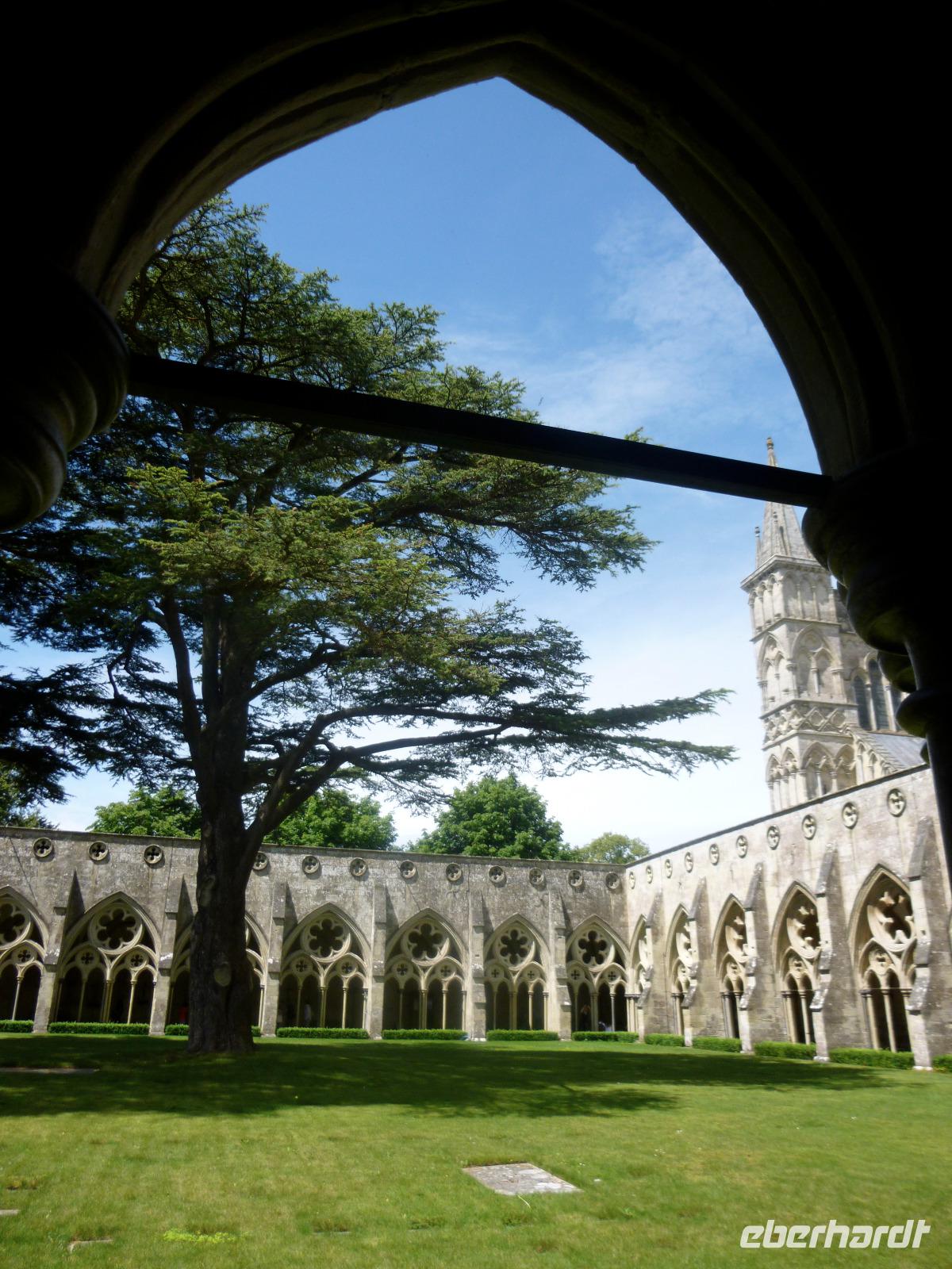 Salisbury entstand aus der Römerstadt Sarum in dafür typischen geplanten Stadt-Vierteln, überragt von der frühgotischen 123 Meter hohen Kathedrale inmitten der Domfreiheit und gesäumt von adretten schwarz-weißen Tudor-Fachwerkhäusern mit ihren hervorragenden Obergeschossen.