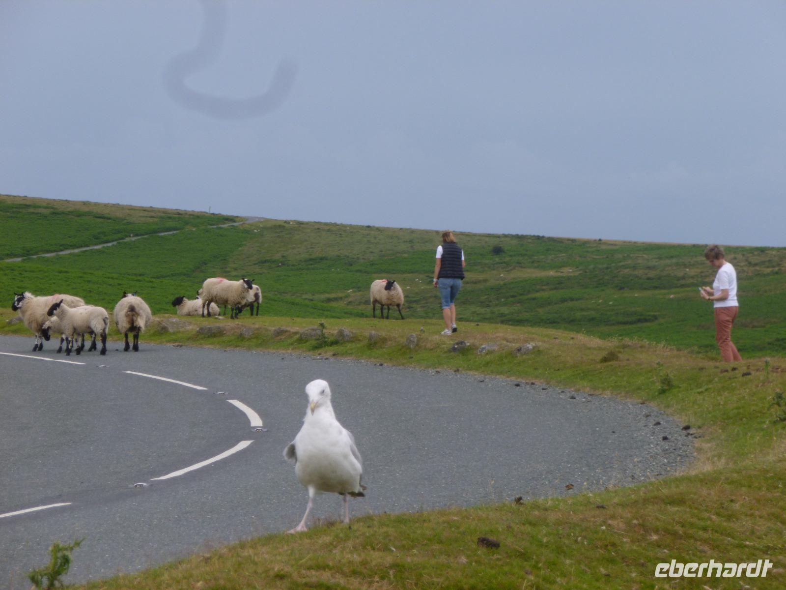 Den „Hund von Baskerville" haben wir nicht getroffen (es war auch überhaupt nicht nebelig) - dafür frei umher laufende typische Dartmoor-Ponys und Schafe.