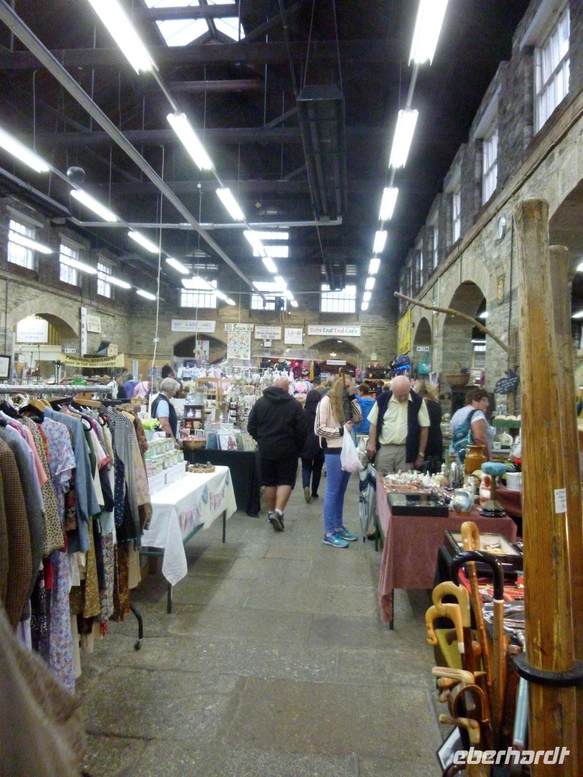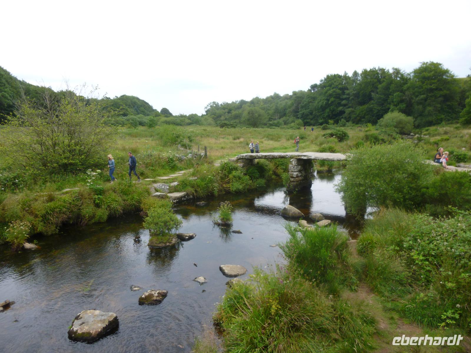 In Postbridge faszinierte uns die uralte steinerne Clapperbridge und in der „stannery town" Tavistock am Rande des Moores die Restgebäude der einstigen Benediktinerabtei und der überdachte Pannier Market, bekannt seit dem 12. Jahrhundert, der uns bei strömendem Regen Schutz bot.