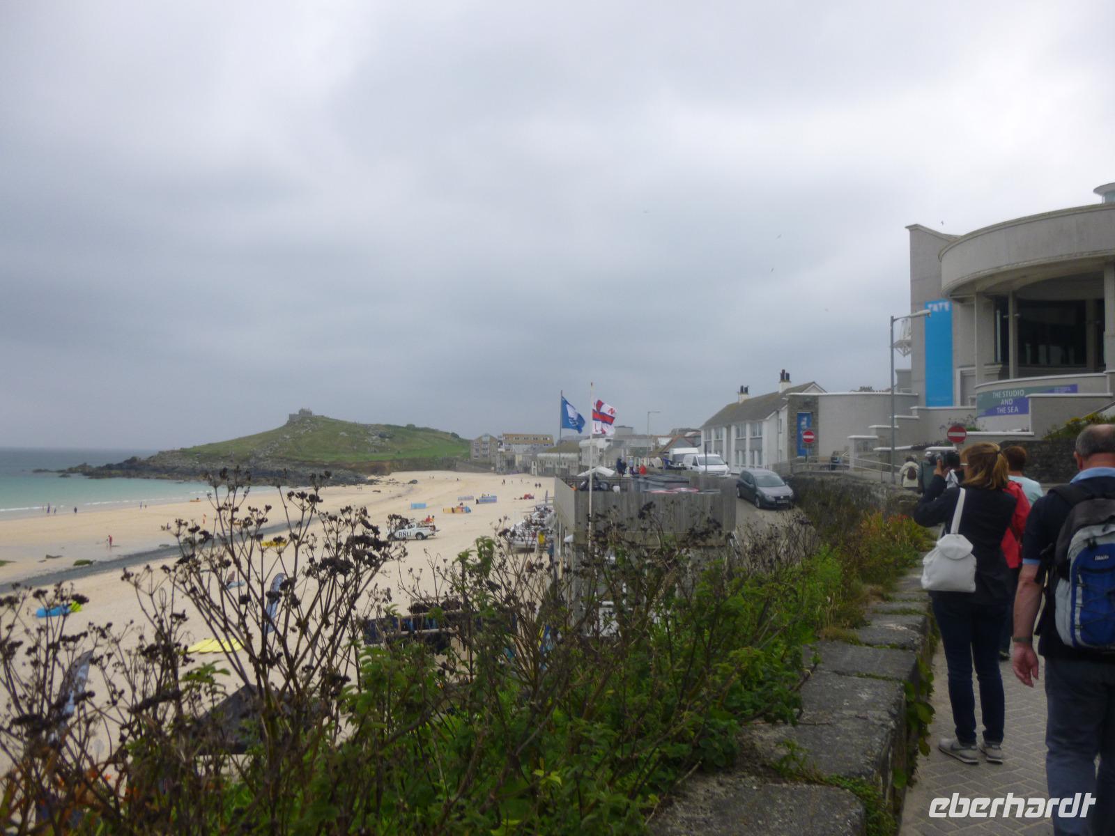 St. Ives, nach der heiligen Ia benannt, präsentiert sich uns als malerischer Küstenort mit drei Buchten, als ehemalige Künstlerkolonie und einstiges Zentrum der Sardinenfischerei. Wir shuttelten zur Küste mit schönen Sandstränden nahe der Tate Gallery, bummelten durch die idyllischen Gässchen und schleckerten Eis. Allerdings entführen hier gern Möwen Eiswaffeln - ihre Leibspeise ist möglicherweise Vanilleeis?