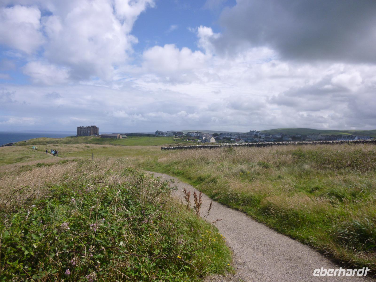 Die normannische Ruine aus dem 12. Jahrhundert stand einst auf einer Insel und soll ein keltisches Kloster aus dem 6. Jahrhundert als Ursprung haben. Von oben hatten wir einen herrlich weiten Blick über die Küste.