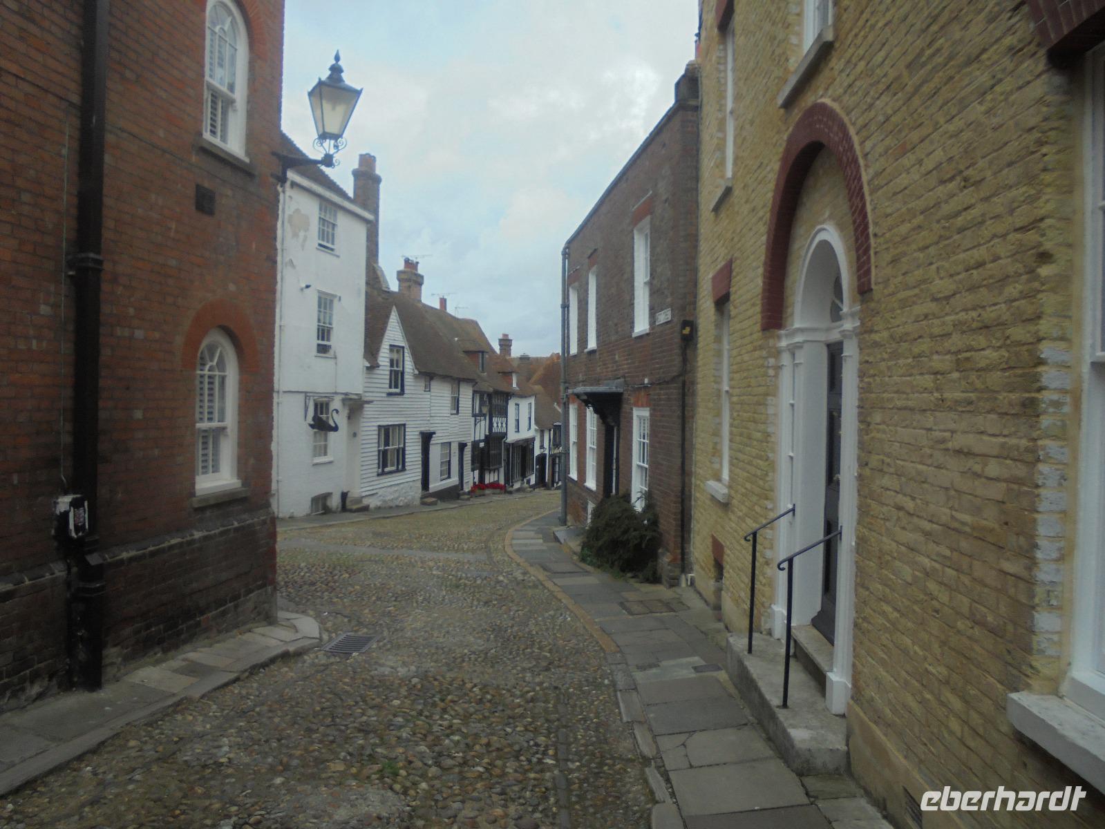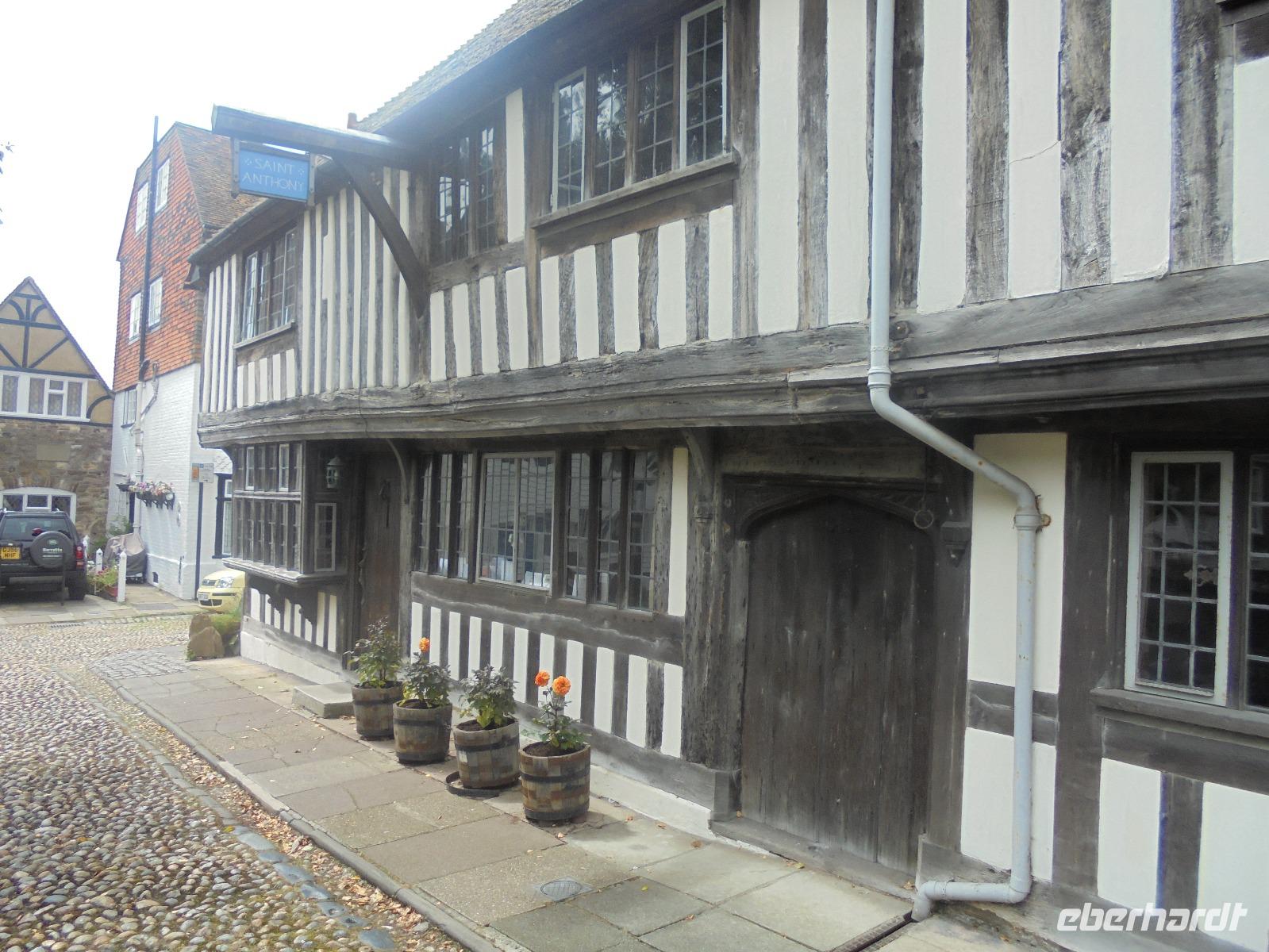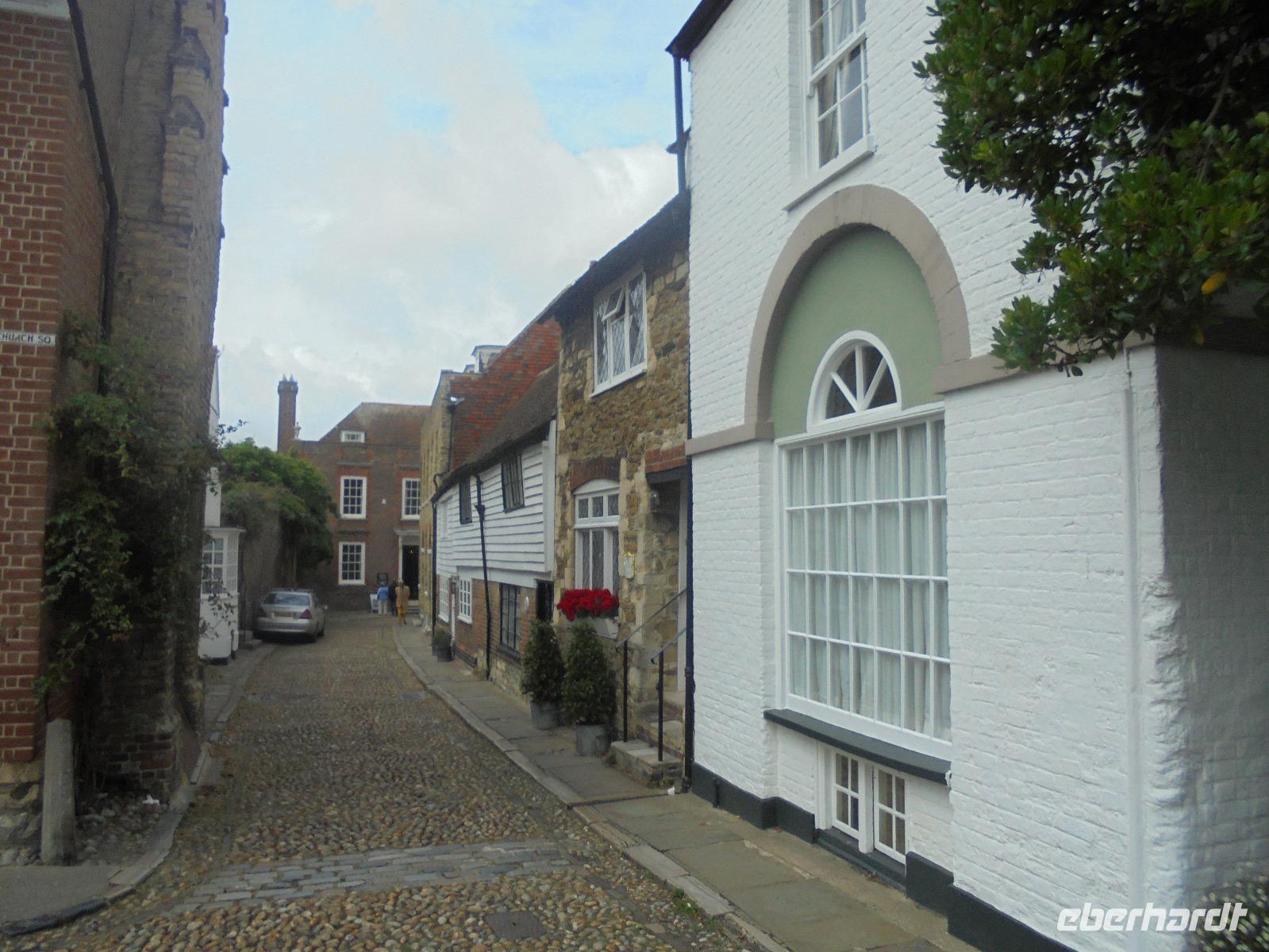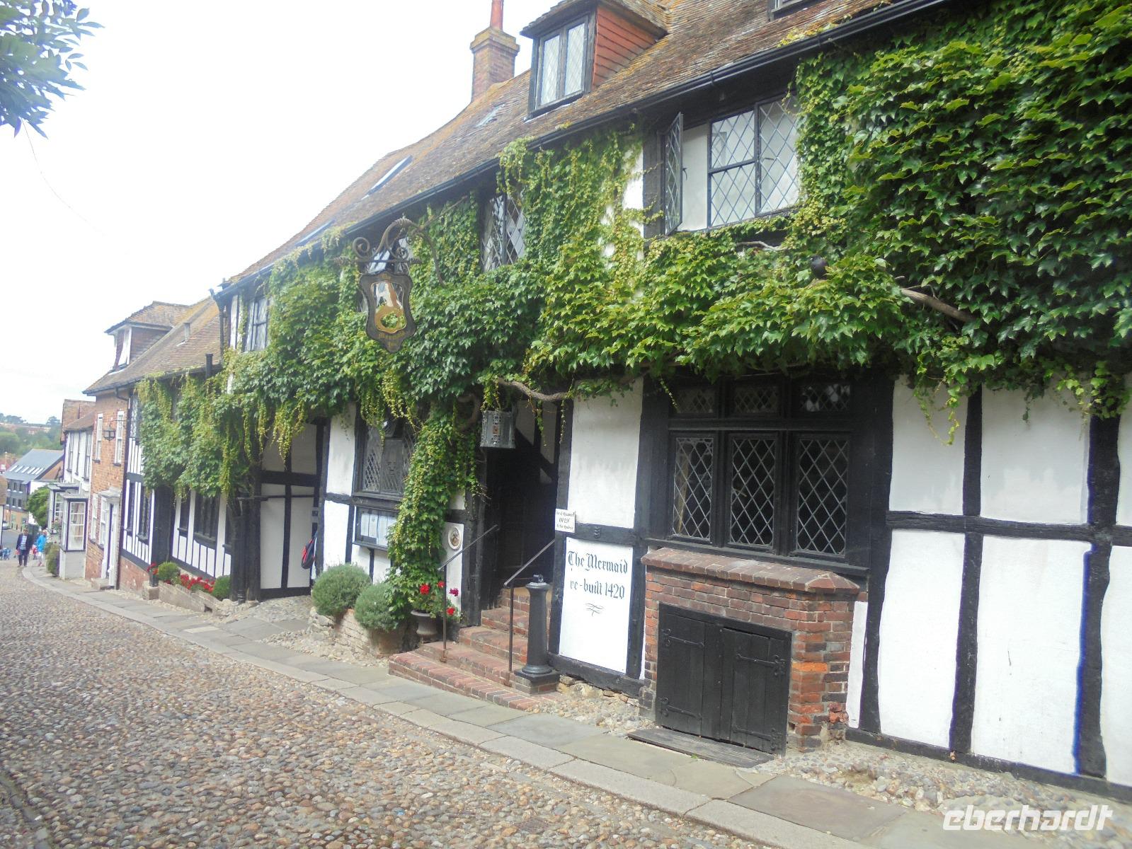 Nachdem wir in Dover auf britischen Boden gelangten, wählten wir die Küstenstraße und fuhren an Folkestone vorbei durch das Marschland von Romney bis in den hübschen und historisch bedeutenden Hafenort Rye umsehen. An vielen Stellen noch „mittelalterlich", sind besonders die kieselgepflasterten Straßen der Altstadt, allen voran die bekannte „Mermaid Street" mit dem aus dem 15. Jh. stammenden „Mermaid Inn", einer alten Schmugglerkneipe, sowie die Pfarrkirche und der daneben liegende alte Ypres Tower, einst wehrhafte Stadtburg, für das historische Ambiente verantwortlich. Vor mehrern hundert Jahren gehörte Rye zu den „Cinque Ports" (fünf Häfen), einem bedeutenden südenglischen Städtebund, der mit verantwortlich ist für das Entstehen und Wachsen der hiesigen maritimen Traditionen der im späten Mittelalter in England eine bedeutende politische Macht dargestellt hatte. Da selbst der König von ihnen abhängig war, hatten die Städte viele Rechte, die sie später, nach Verlust ihrer Macht, aus Gewohnheitsrecht behielten und auf ihre Art für Strandpiraterie und Schmuggel nutzten. Alles legendär...