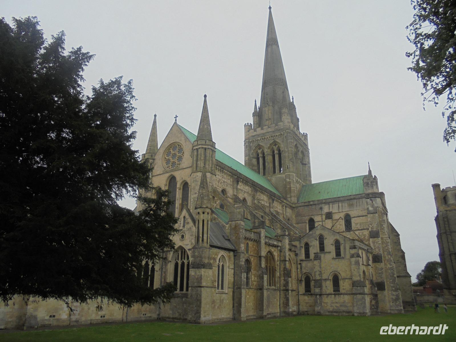 Auf unserem weiteren Weg gönnten wir uns gleich noch ein kleines „Extra" und legten einen ausgedehnten Fotostopp im historischen Städtchen Chichester ein. Der bereits von den Römern planmäßig angelegte Ort mit einander rechtwinklig kreuzenden Hauptstraßen besitzt genau in seinem Mittelpunkt ein wundervolles gotisches Marktkreuz aus dem 15. Jh. sowie eine sehr schöne Kathedrale mit einem - für Großbritannien ungewöhnlich - freistehenden Glockenturm.