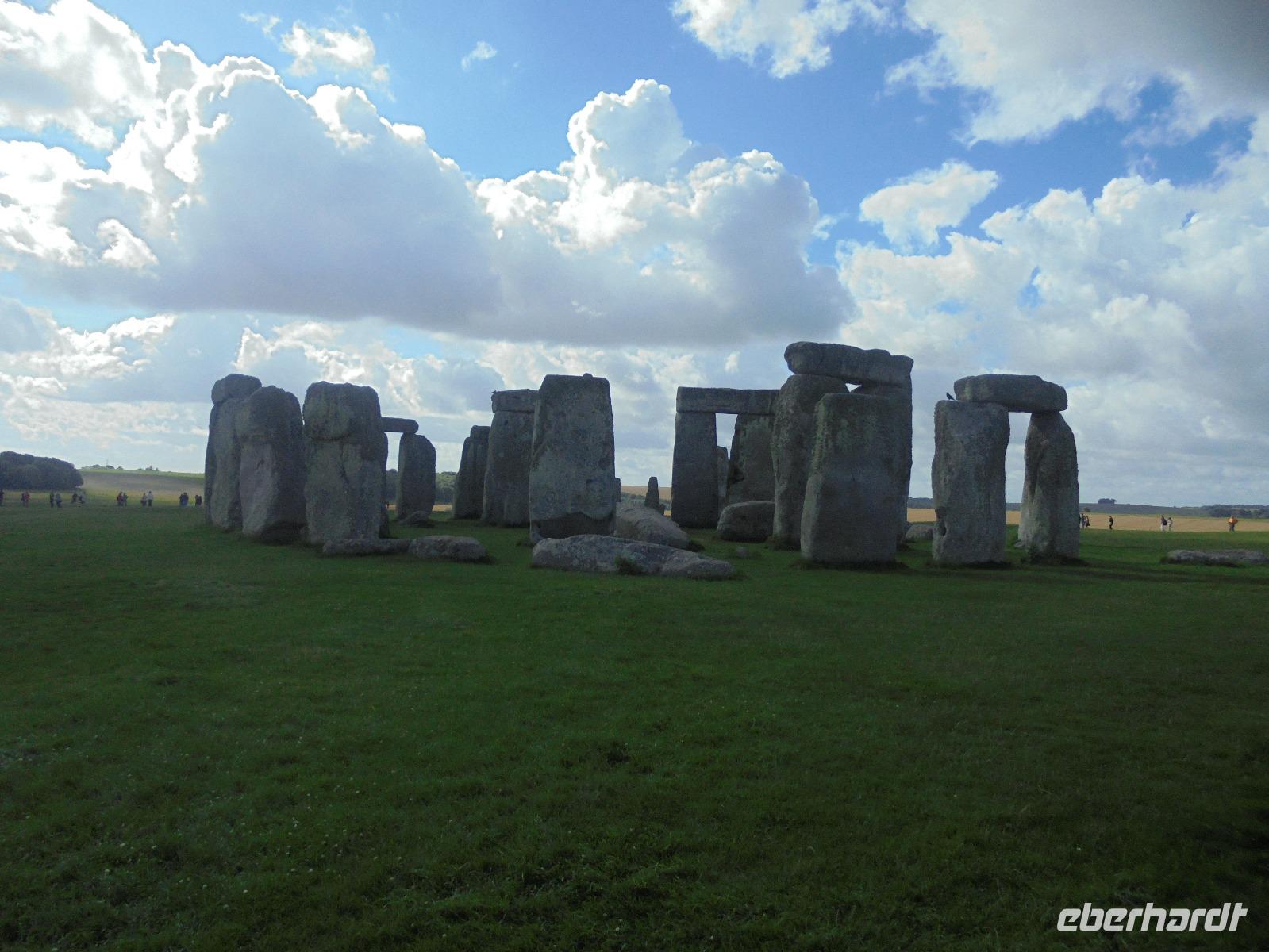 Stonehenge, das Monument aus der Jungsteinzeit und eine der bedeutendsten Sehenswürdigkeiten Südenglands war unser erstes heutiges Ziel. Es gehört zudem zu den meistbesuchten Attraktionen des Vereinigten Königreiches und muss täglich, vor allem im Sommer, gewaltige Besuchermassen bewältigen. Der Tipp, früh aufzustehen um einer der ersten hier zu sein und das berühmte Denkmal noch nicht völlig überlaufen genießen zu können, erwies sich auch diesmal als goldrichtig. Als einer der ersten Besucherbusse erreichten wir das Monument, empfingen unsere Audioguides und waren schon per Shuttle vom Besucherzentrum auf dem Weg zu den großen Steinen. Tatsächlich benennt man solche Denkmäler, bestehend aus gewaltigen Steinblöcken, nach diesen: „Megalithkultur"- Kultur der großen Steine.