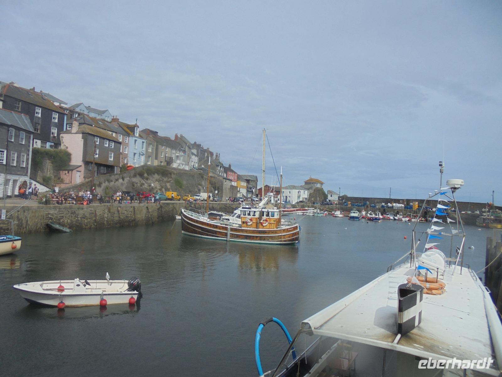 Bevor wir uns zum Hotel nach Newquay begaben, hatten wir Zeit für einen weiteren Abstecher: an der Küste von Cornwall, dem westlichsten Teil Südenglands, wo wir uns nunmehr befanden, gibt es eine Reihe uriger und überaus typischer Fischerdörfer. Eines davon ist Mevagissey, traditionell und überaus romantisch erhalten. Zwar ist es ein Fischerdorf geblieben, aber Ambiente und Urigkeit haben sich herumgesprochen, so dass inzwischen auch viele Touristen in der Saison in den Ort strömen. Ein wenig jedoch ist erhalten geblieben von der einstigen, echten Romantik und man kann es noch im alten Ortskern mit seinen schmalen, malerischen Gassen und dem charakteristischen alten Hafen spüren.
