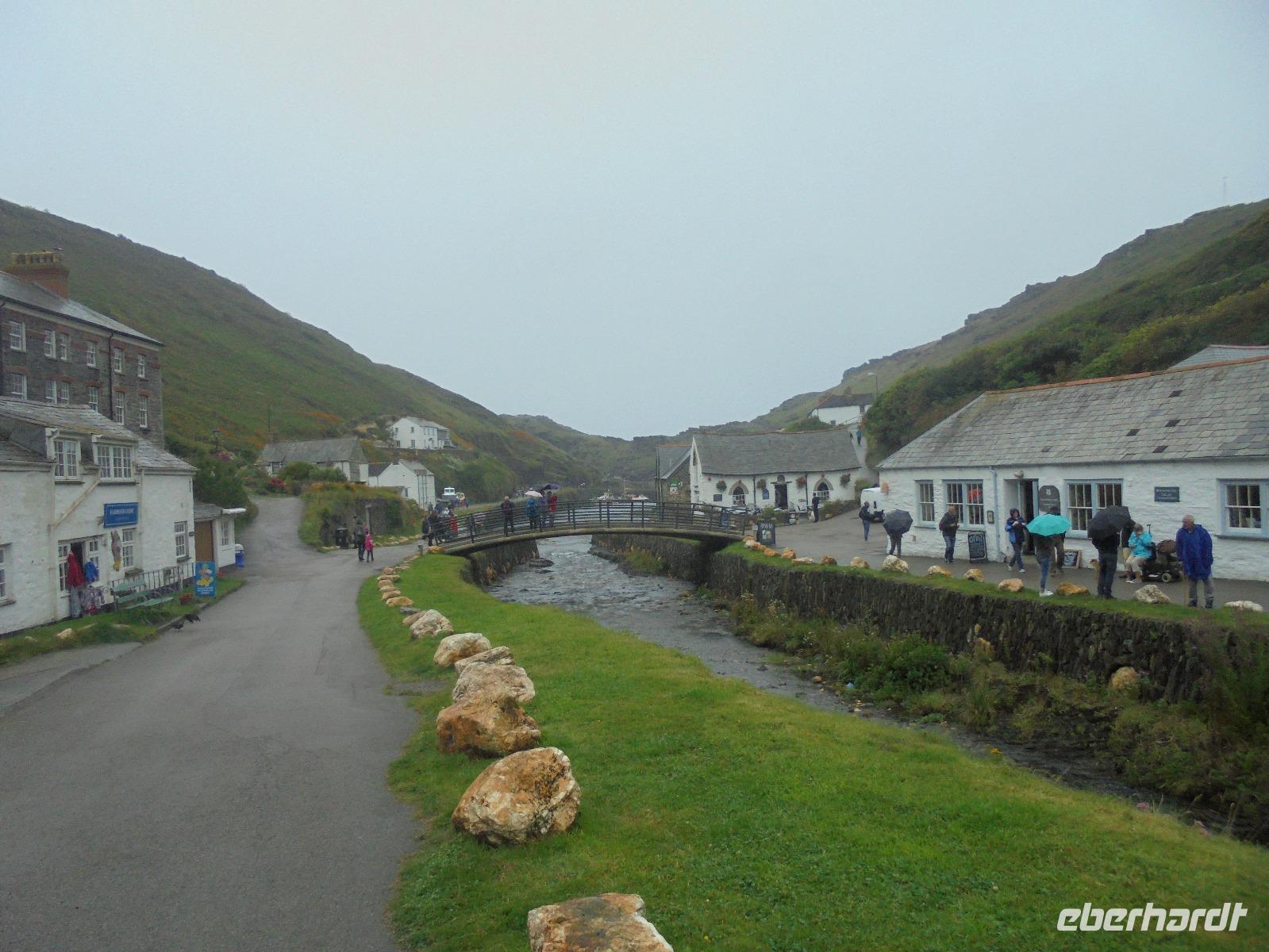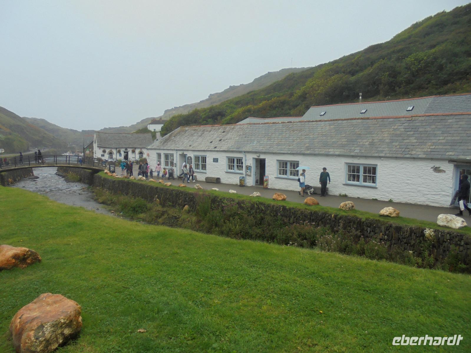 Am frühen Nachmittag ging es zu einem kleinen „Richtig-Reisen"-Abstecher, bei dem wir das als Strandgut- und Piratennest apostrophierte Hafendörfchen Boscastle besuchen. Fast alle Häuser des Ortes stehen in Verbindung zu dem in einer Flussmündung liegenden kleinen Hafen. Später vor allem für den Abtransport des in den nahen Schiferbrüchen abgebauten Materials genutzt, wurde er als enger Naturhafen angelegt, dessen Einfahrt von See her so gut wie nicht zu erkennen ist. So wurde die einer Schlucht ähnliche Einfahrt zum idealen Versteck für Strandpiraten und Strandgut-Sucher. Die historische Hafenmauern aus Naturstein und die hübschen weißgetünchten Häuschen des Ortes machen den Besuch hier zu einem Höhepunkt.