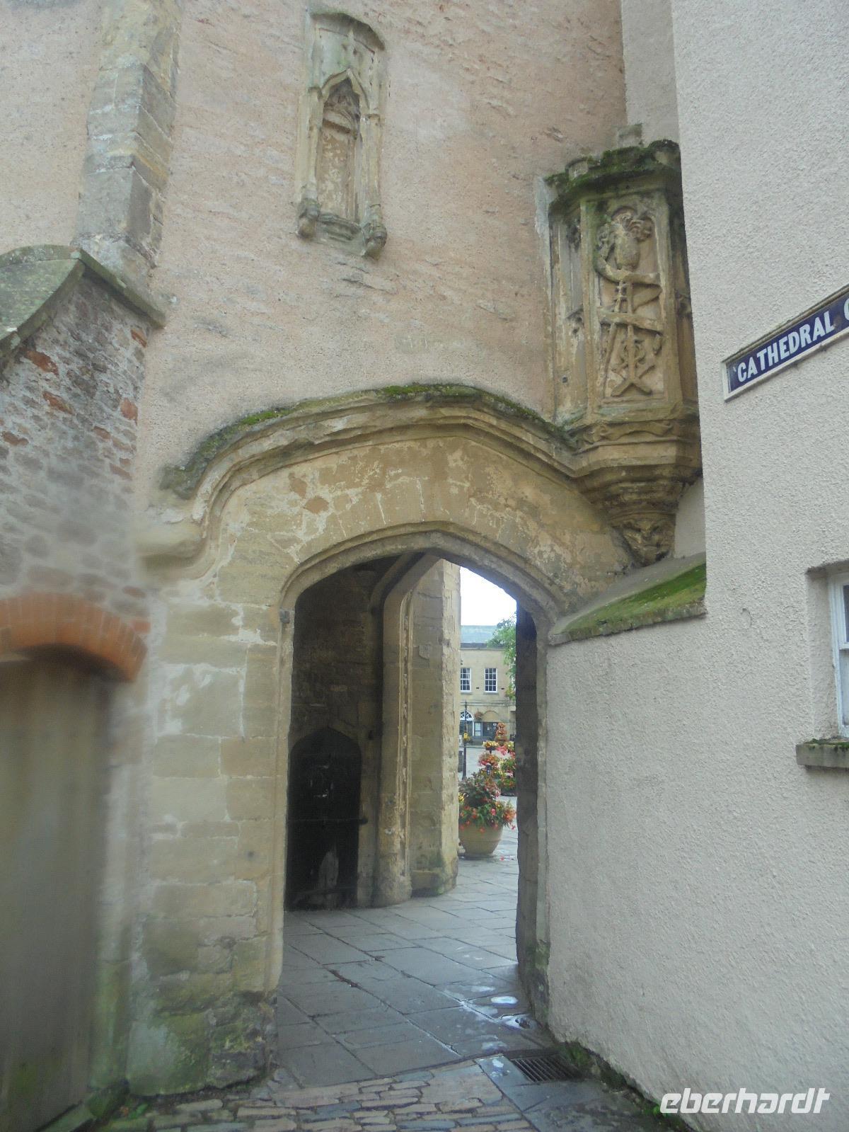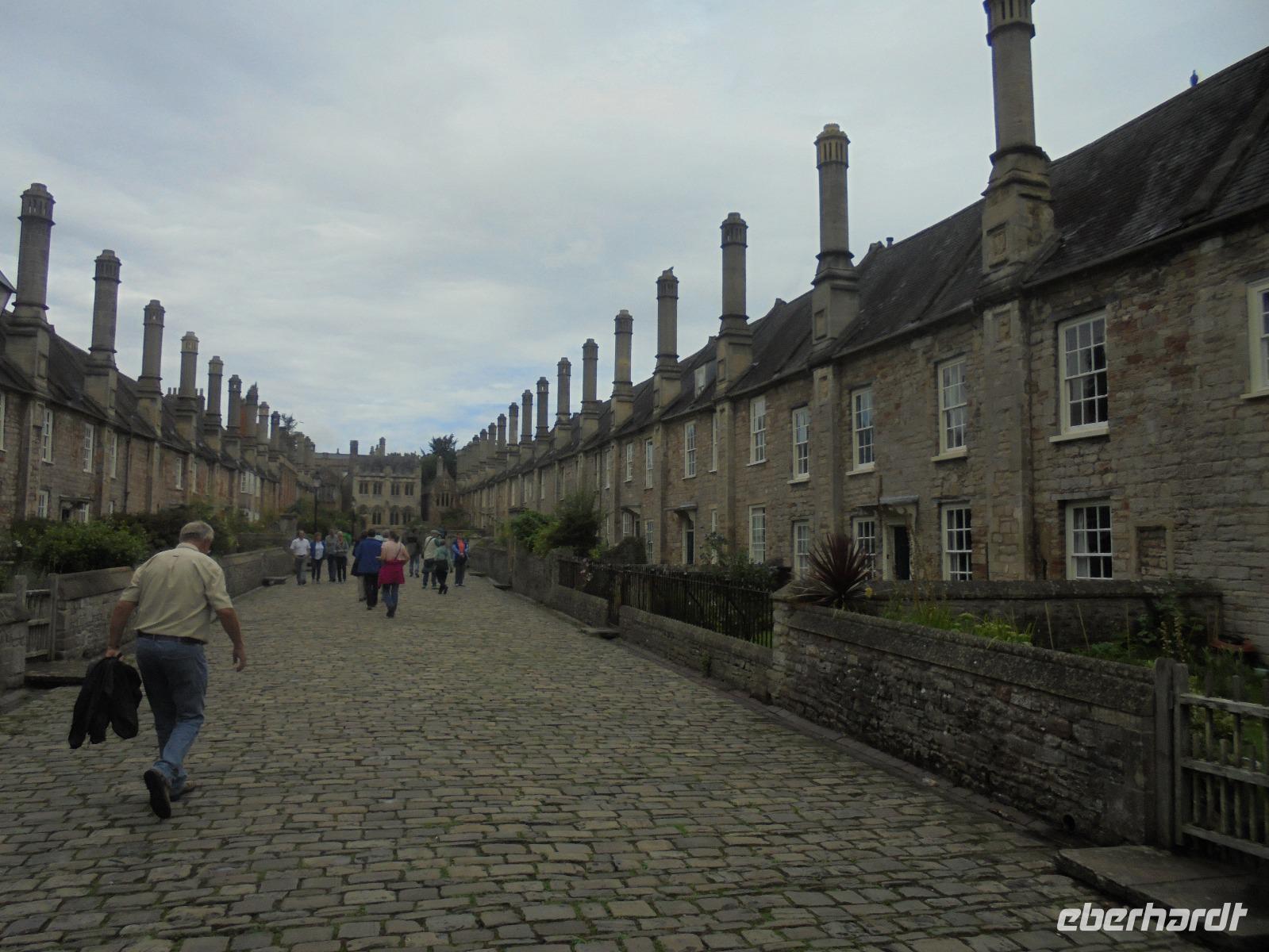 Direkt neben der Kathedrale - durch die Wells auch das Stadtrecht bekam, denn in England darf sich jeder Ort mit Kathedrale Stadt nennen - gibt es die Vicar's Close. Sie gilt nicht nur als älteste durchgängig bewohnte Straße Europas, sondern - aus dem 14. Jahrhundert stammend - auch als ältester Sozialwohnungskomplex des Kontinents.