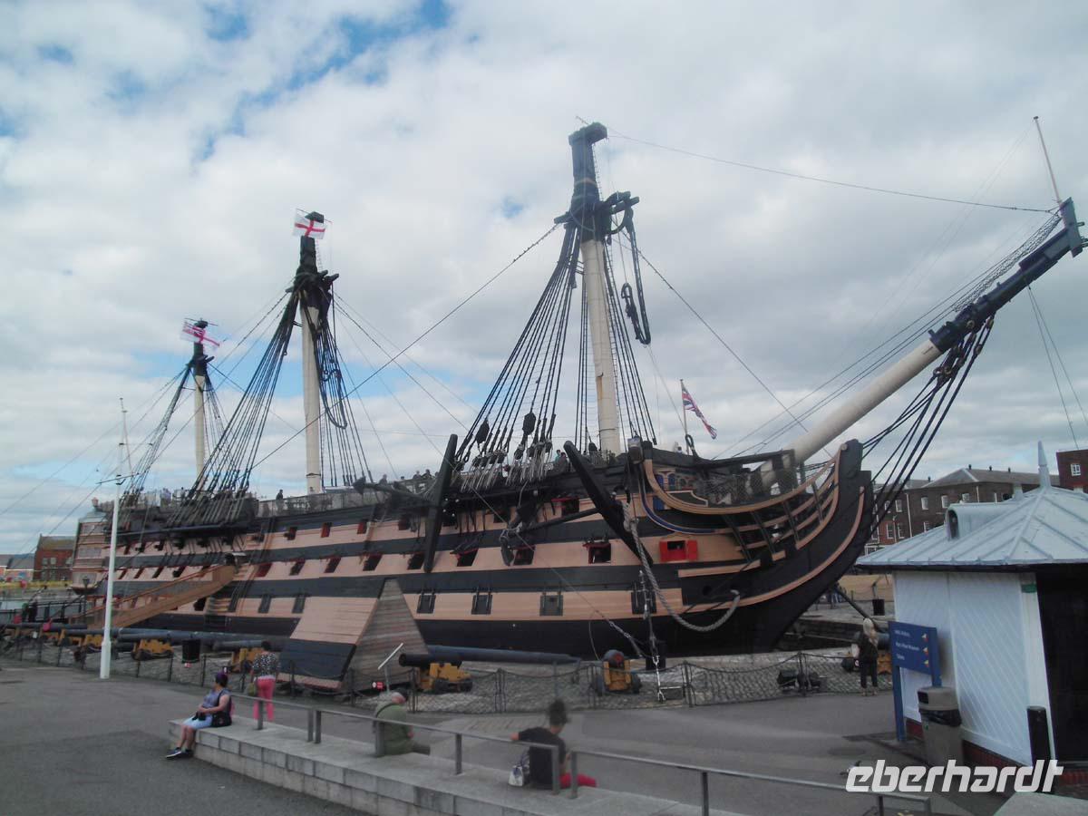 Nach einem ersten „english breakfast" reisen wir nach Arundel. Hier steht eines der größten und besterhaltenen Castles Englands. Bevor wir jedoch das Schloß besichtigen, scheint uns ein Besuch der Kathedrale lohnenswert. Ende des 19. Jh. wurde sie von Joseph Hansom in lupenreiner Neogotik errichtet. Man erkennt das sofort: Der Bau ist irgendwie zu perfekt, zu ebenmäßig. Man wollte eben noch schöner gotisch bauen, als es die mittelalterlichen Meister taten. Anschließend besuchten wir die Park- und Gartenanlage um Arundel Castle. Herrliche Gärten gilt es zu entdecken. Geschwungene Wege geben ein perfektes Bild englischer Gartenarchitektur ab. Sie führen auch in die Fitzalan Chappel, die einzigartig ist. Sie hat in der Mitte eine Trennmauer, sodaß Katholiken und Protestanten dort ihre Gottesdienste jeweils auf der eigenen Seite abhalten konnten. Das Schloß selbst öffnet Mittags und wir besichtigen die Räumlichkeiten, welche von den normannischen Anfängen des 11. Jh. bis in die Gegenwart reichen. Einen Teil des Schlosses bewohnt noch die Familie des Earls von Arundel. Diesen kann man natürlich nicht besichtigen. Aber auch der öffentliche Teil des Castles ist einen Besuch wert und reicht bis in normannische Zeiten zurück. Nach dem Schloßbesuch begeben uns nach Portsmouth in die historischen Docks. Hier besichtigen wir die HMS Victory. Erbaut 1765 ist es das älteste, noch im Marinedienst stehende Schiff der Royal Army: allerdings nur noch für zeremonielle Zwecke. 850 Mann Besatzung hatte sie und Vizeadmiral Nelson gewann auf ihr die Schlacht von Trafalgar gegen die Franzosen, in welcher er selbst tödlich verwundet wurde. Wie schwer das Leben und die Arbeit an Bord eines solchen Schiffes war erfährt jeder, welcher die niedrigen, kanonenbestückten Decks durchwandert. Für einige Gäste, welche die Besichtigung etwas schneller absolvierten reicht die Zeit tatsächlich noch für eine Hafenrundfahrt, die im Ticket inbegriffen ist. Bei der Abreise aus Portsmouth grüßt uns noch der Spinnacker Tower mit seiner Aussichtsplattform in 170 m Höhe. Am Abend erreichen wir unser Hotel in Southampton, wo wir uns das Abendessen schmecken lassen.