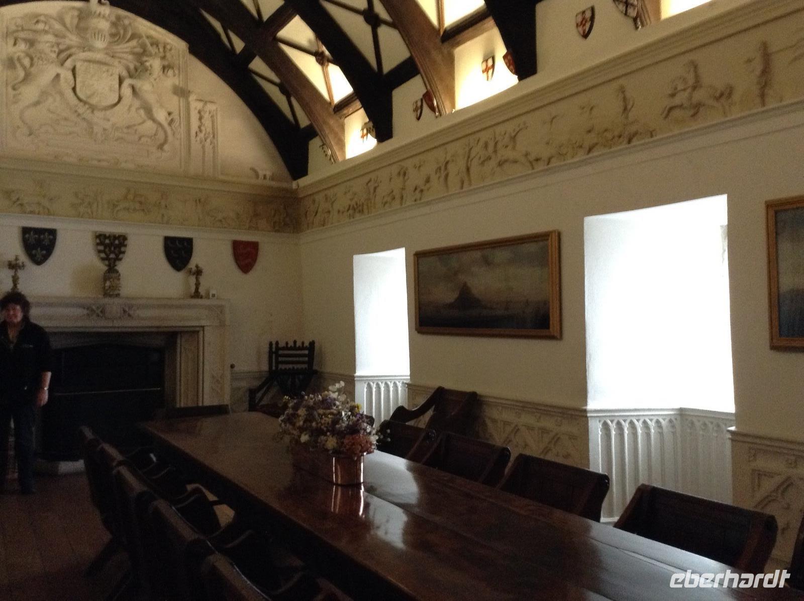 Ein schönes Gefühl, heute mal ohne Koffer zur Abfahrt. Wir fuhren durch Cornwell und erfuhren von den alten Bergbautraditionen dieser Gegend. Heute sind davon nur noch Relikte hier und da zu erkennen. Unser erstes Ziel ist die kleine Gezeiteninsel im Süden Cornwells, St. Michael's Mount. Seit vielen Jahrhunderten kamen Pilger, heute eher Besucher zur Insel. Wir hatten Glück, es war gerade Ebbe und wir konnten den Fußweg vom Land zur Insel nehmen. Der etwas beschwerliche Aufstieg lohnte sich, trotz Regen. Wir besichtigten die zur Wohnburg umgebaute alte Wehranlage. Der Regen ließ nach und wir hatten einen wunderschönen Ausblick auf die Bucht und das Meer. Gegen Mittag ging es dann weiter nach Land's End. Bei Ankunft hatten wir noch Glück mit dem Wetter, wir konnten die Steilküste mit den vorgelagerten Riffen und Inselchen, auch den alten Leuchtturm, gut sehen. Später setzte wieder Regen ein und wir fuhren zurück zum Hotel nach Newquay.