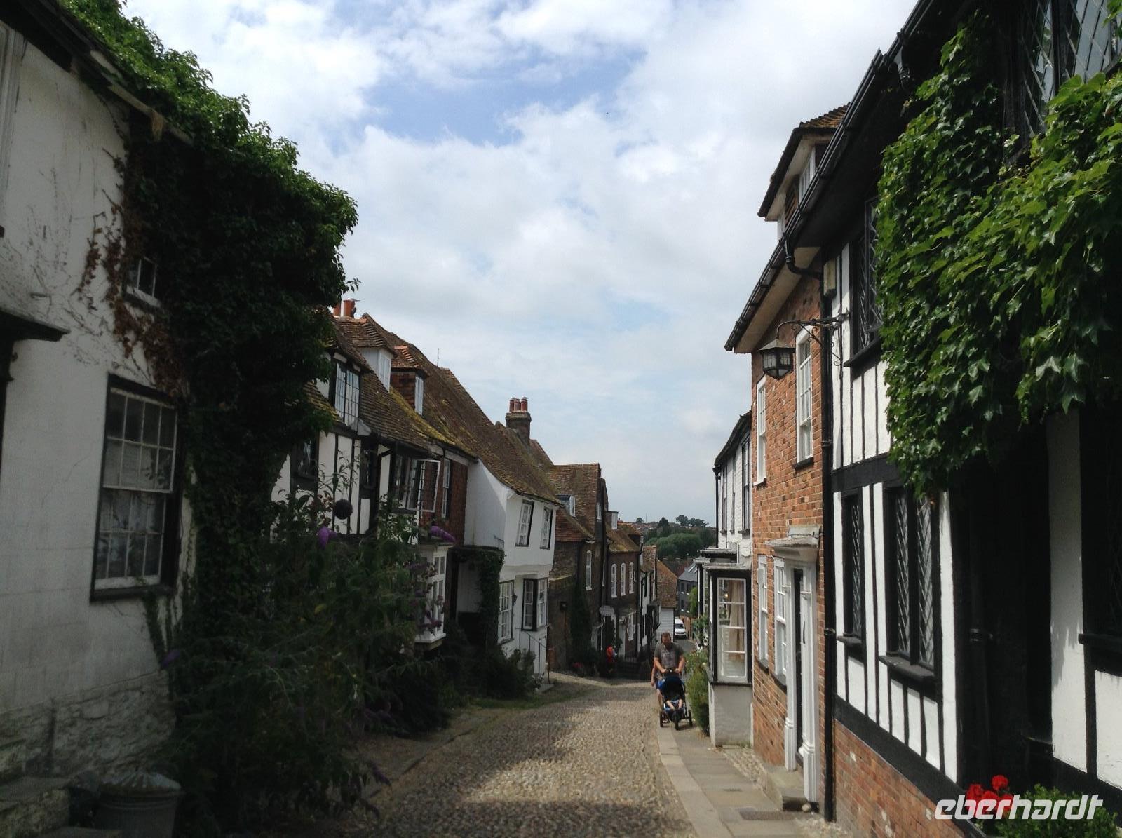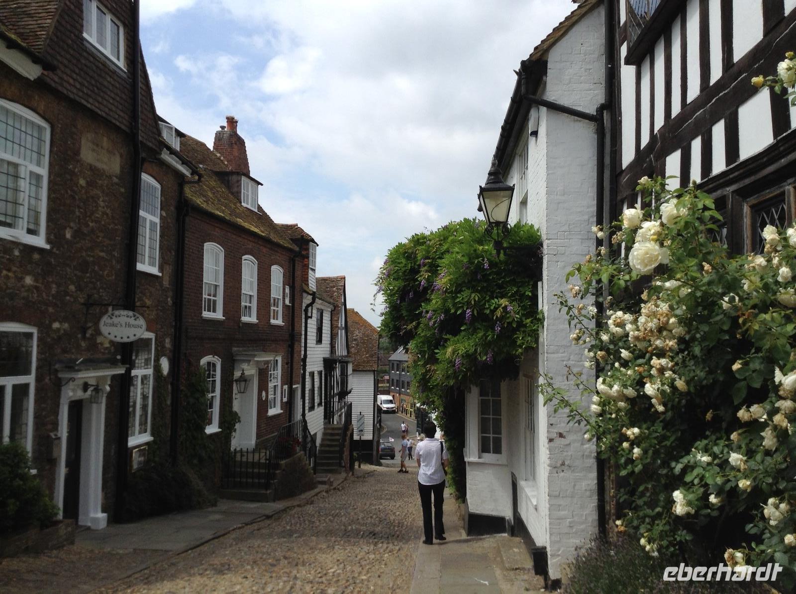 Nach einem richtig guten Frühstück war wieder Koffer Laden angesagt. Es ging zum Hafen und zum Checkin für unsere Fährüberfahrt. Die Grenzkontrolle war sehr streng, aber trotzdem relativ schnell für unsere Gruppe erledigt. Das Wetter war schön und wir konnten beim Anstehen in Calais bereits die weiße Kreideküste von Dover sehen. Eine reichliche Stunde Fährüberfahrt bot abwechslungsreiche Aussichten. In Dover angekommen ging es zügig aus den Hafen heraus, durch den Ort und dann in Richtung Küstenstraße. Unser erster Halt galt dem kleinen pitoresken Städtchen Rye und für uns gab es die Möglichkeit für einen ersten Erkundungsspaziergang.