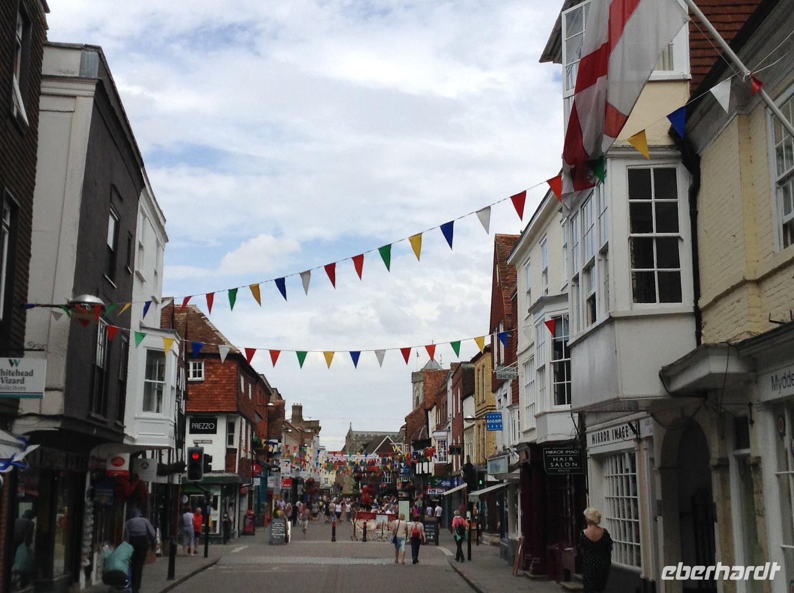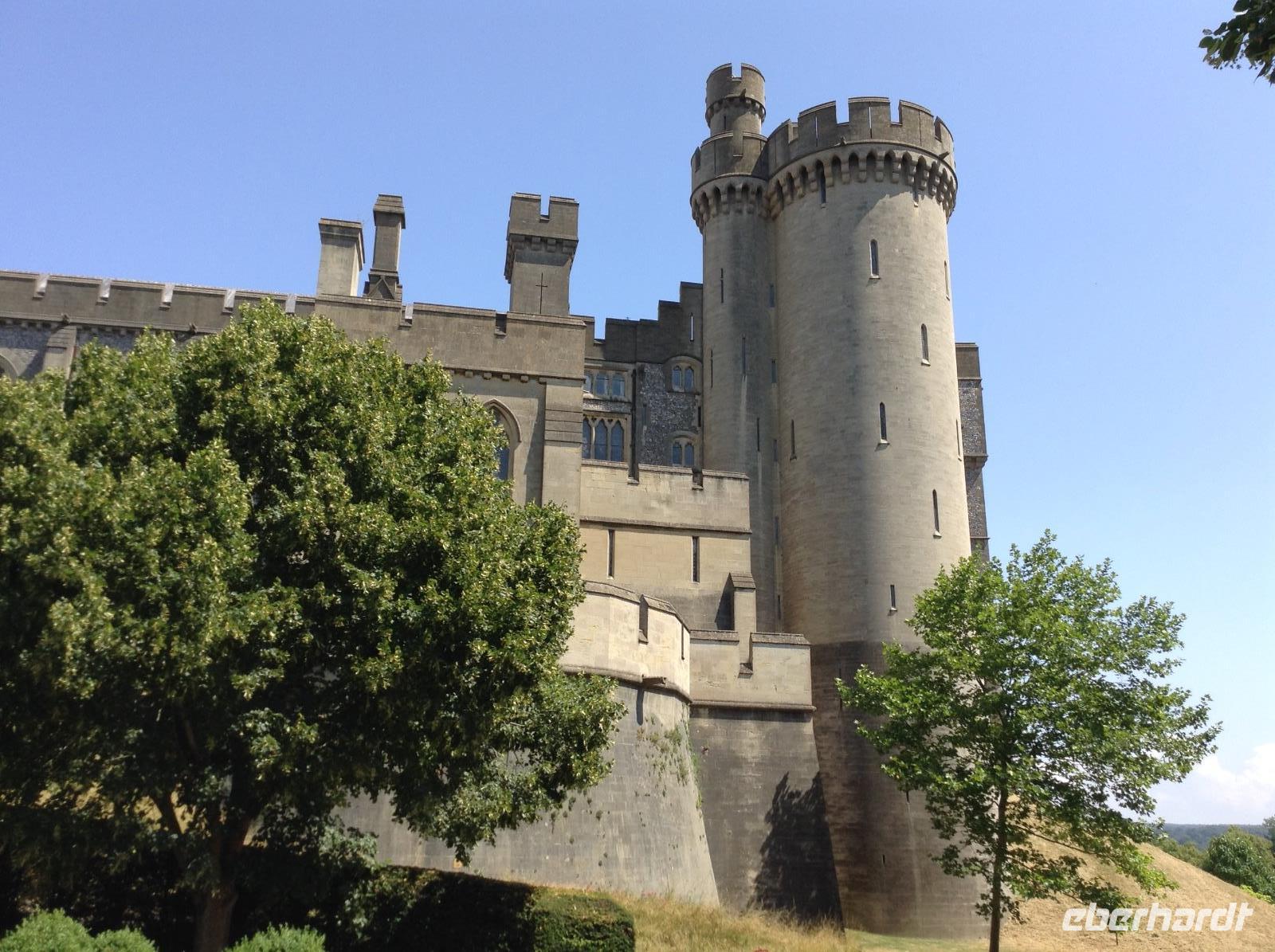 Wieder wurde nach dem Frühstück Koffer geladen. Heute ging es dann das erste Mal auch mit unseren Fluggästen zusammen weiter. Als erster Besichtigungspunkt war Arundel mit dem riesigen Castle auf dem Programm. In Arundel angekommen, stellten wir fest, die ganze Stadt hatte sich für ein Sommerfest vorbereitet und es war schon zeitig viel Trubel im kleinen Ort. Gemeinsam gingen wir hinauf zu den beiden Kirchen, später zurück zum Eingang in den Schloßpark. Das Schloß konnte dann zur Mittagszeit besichtigt werden.