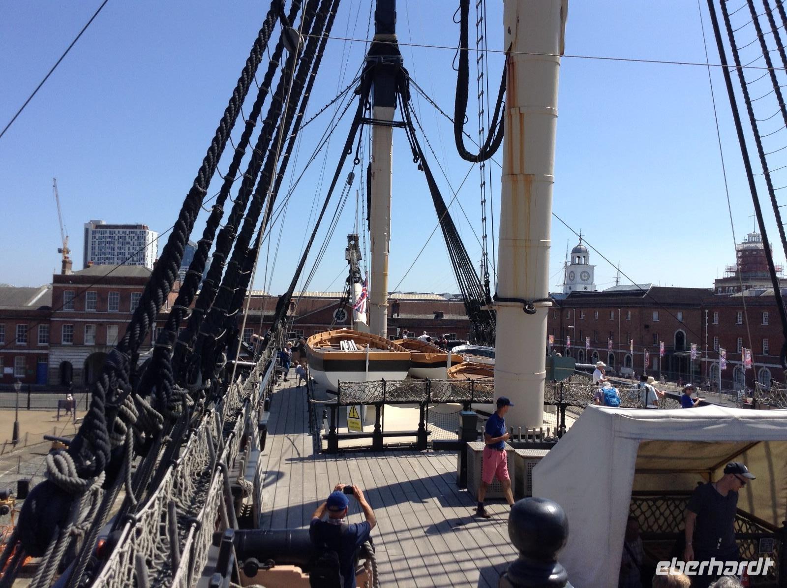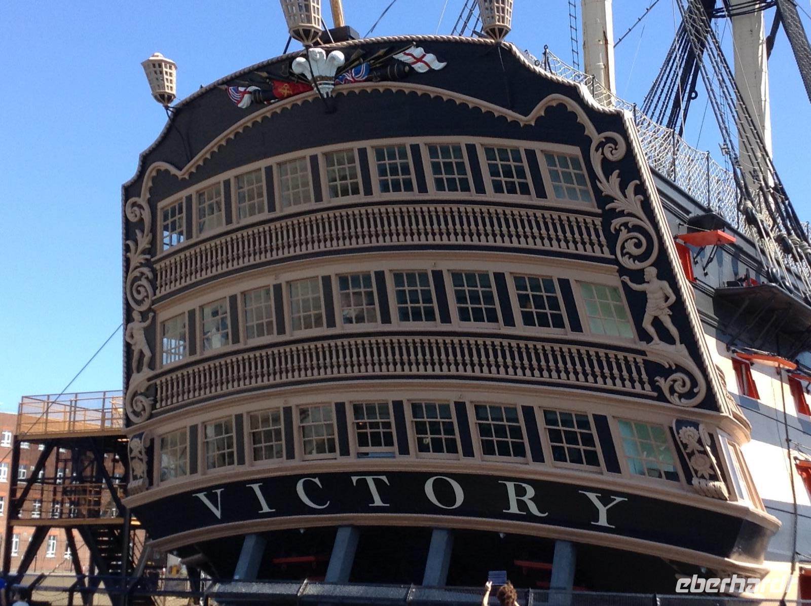 Unser Weg führte uns in den Nachmittagsstunden dann die Südküste weiter entlang bis nach Portsmouth. Die historischen Hafenanlagen wollten wir ansehen und natürlich auch das alte Originalschiff von Lord Nelson, die HMS Viktory. Es war dorch recht schwül und heiß an diesem Nachmittag und wir dann froh, als wir in Southampton unser Hotel beziehen konnten.