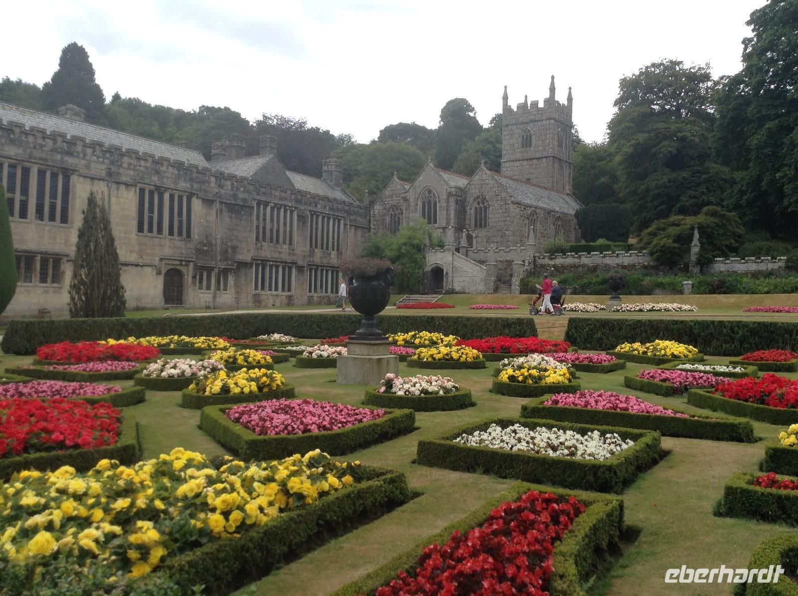 Wieder mit Koffern ging es am Morgen in Richtung Dartmoor. Üppige grüne Vegetation an den Straßenrändern und schmale Straßen machten das Fahren für unsere busfahrerin nicht unbedingt einfach. Zunächst war es noch etwas bewölkt und nebelig, aber im Dartmoor hatten wir dann doch wunderbare Aussichten. Erster Stop war am Nationalparkcenter in Postbridge, an der alten Clapperbridge. In Princetown am Gefängnis vorbei führte uns unser Weg dann nach Tavistock. Für einen kleinen Spaziergang durch den bezaubernden Ort war dann doch noch Zeit. Am Nachmittag hatten wir dann noch eine Verabredung in Lanydrock House und Garten. Wir schauten uns in diesem schönen typischen Landhaus um und genossen auch die riesige schöne Parkanlage. Pünktlich zur Tea Time gab es dann auch English Creme Tea mit allem, was typischer Weise dazu gehört. Das war lecker und für viele eine neue Erfahrung.