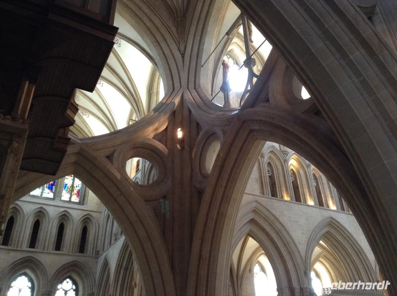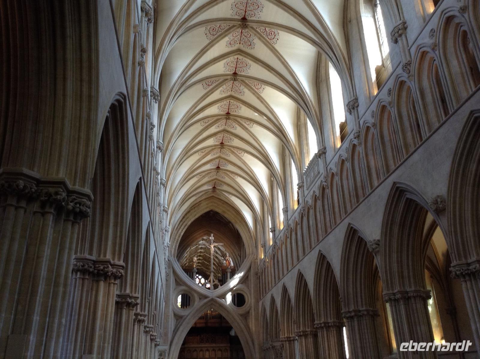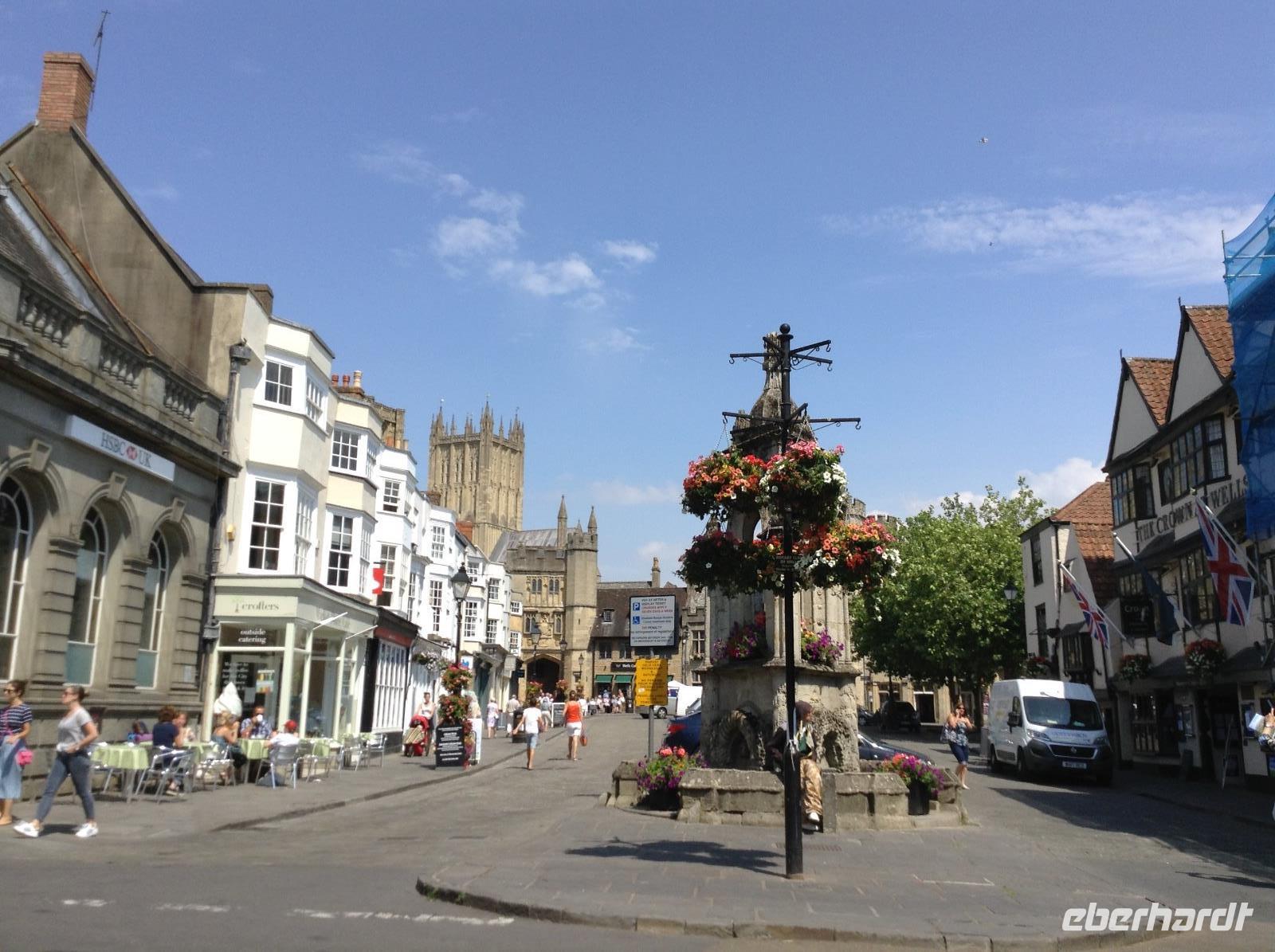 Heute früh verabschiedeten wir uns von der Westküste und fuhren vorbei am Dartmoor und an Exeter bis zur alten Pilgerstätte nach Glastonbury. Schon von weitem sahen wir den Berg mit dem heiligen Tor vor den Stadtmauern. Zunächst wollten wir zur Ruine der wohl ältesten englischen Kultstätte, der Glustonbury Abby. Hier soll wohl King Artur, der legendäre König, begraben liegen, aber keiner weiß es wirklich genau. Auch der Ort ist Kult bis heute und absolut sehenswert. Das wollten wir uns natürlich nicht entgehen lassen und so schauten wir uns hier noch etwas um. Später ging es weiter nach Wells. Der Ort ist sehr hübsch, alles toll mit Blumen geschmückt. Aber die Kathedrale von Wells ist von einzigartiger Schönheit. Wir waren beeindruckt, welch eine bauliche Meisterleistung hier vollbracht wurde. Sie zählt wohl zu den schönsten und aussergewöhnlichsten Kirchen, die das Land zu bieten hat. In den Nachmittagstunden fuhren wir durch romantische hügelige Landschaft an Cheddar vorbei nach Bristol.