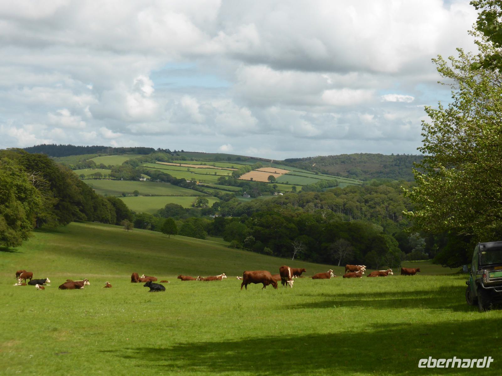 Anschließend fuhren wir weiter nach Glastonbury. Leider war der Verkehr sehr dicht, sodass wir sehr verspätet waren. Ein Unfall auf der Landstraße verzögerte dann die Weiterreise nochmals. Wir hatten allerdings auf der benachbarten Kuhwiese genügend Abwechslung und Zuschauer.