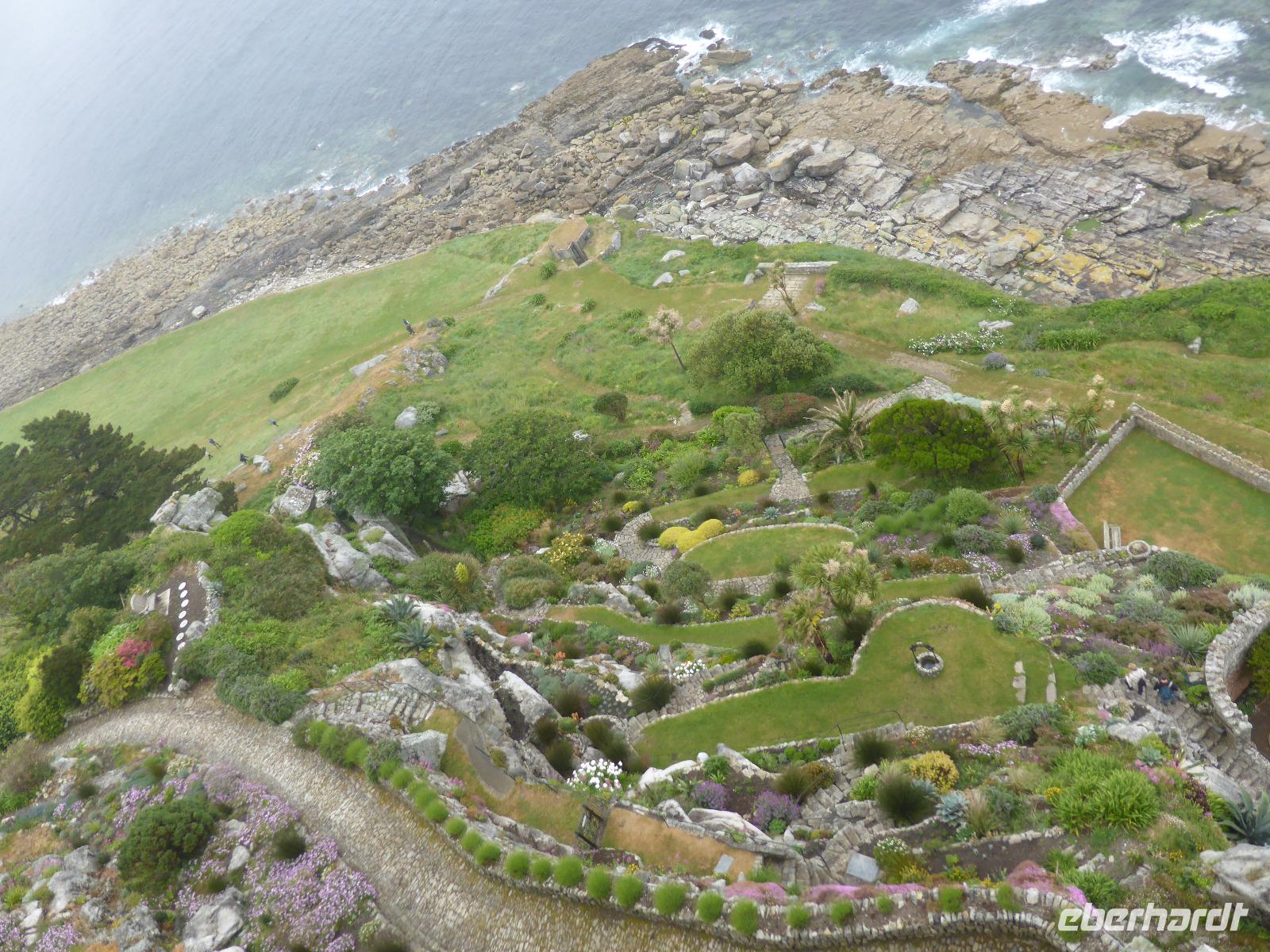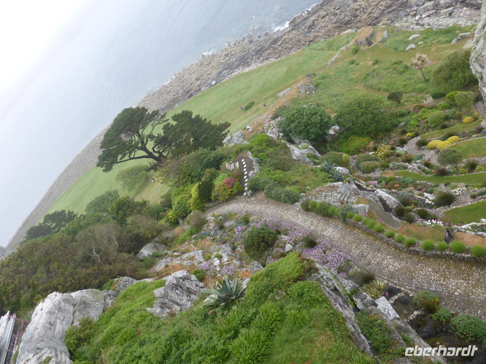 Auf unserem Rundgang besichtigten wir die verschiedenen Wohn- und Repräsentationsräume, die Kirche und genossen einen wunderbaren Blick von der Terrasse auf die Bucht. Von oben hatte man bereits den besten Blick auf die wunderschönen Gärten am Südhang des Felsens. Auch für einen kleinen Besuch der Gärten hat die Zeit noch gereicht.