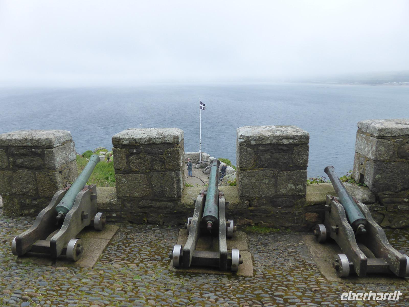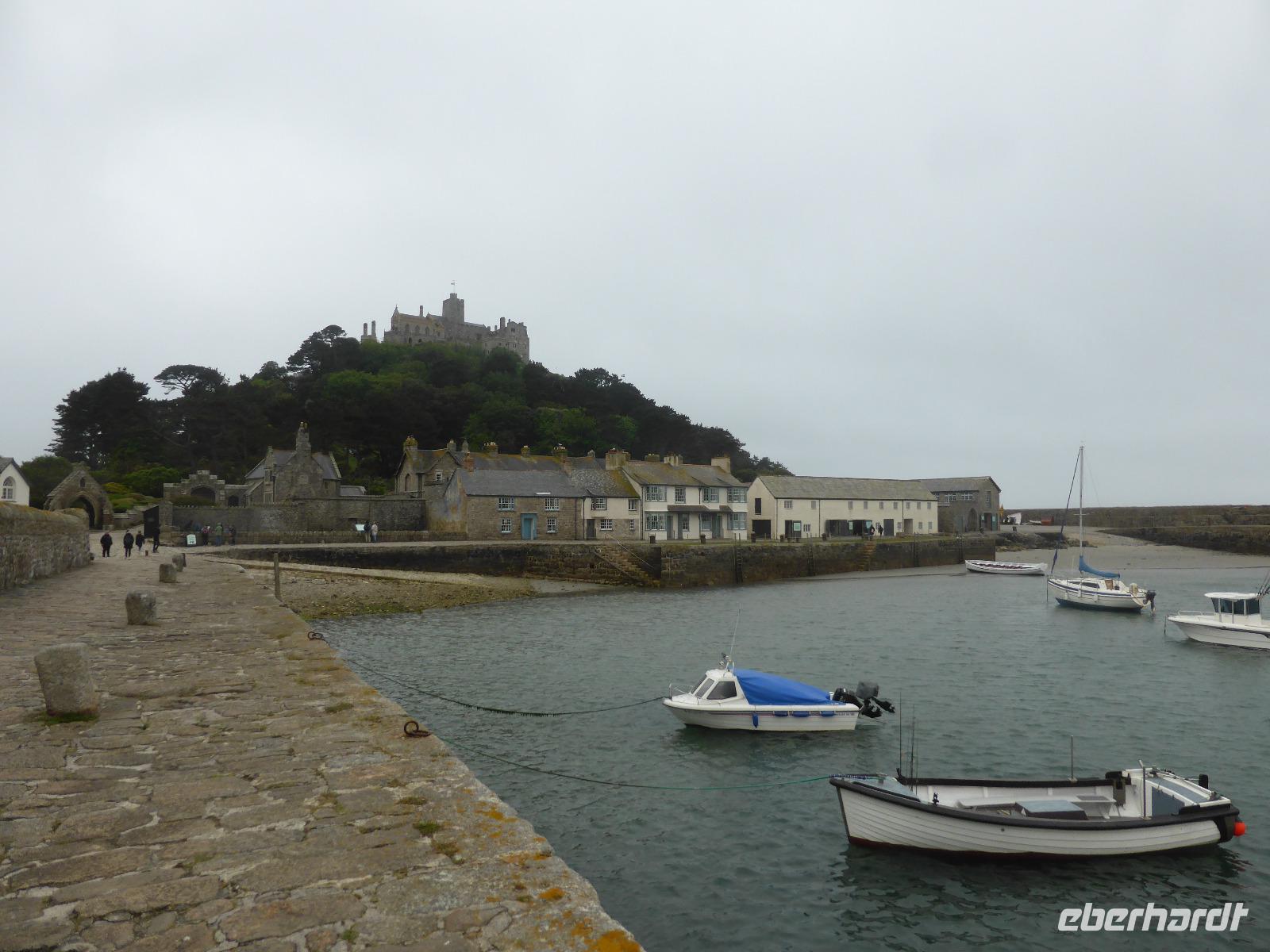 Unsere ersten Ausflugsziele waren heute St. Michael´s Mount sowie die westliche Spitze von Cornwall - Lands End. Leider war es sehr bewölkt. Aufgrund der einsetzenden Flut nutzen wir in Marazion die kleinen Boote, um auf die Insel von St. Michaels Mount zu gelangen. In der Chronik der Felseninsel heißt es, dass 495 der Hl. Michael den Fischern erschienen sein soll. So wurde der Platz zum heiligen Ort, an dem das Christentum bis zur Reformation gepflegt wurde. Wilhelm der Eroberer überließ es bretonischen Benediktinermönchen des Mont St. Michel.