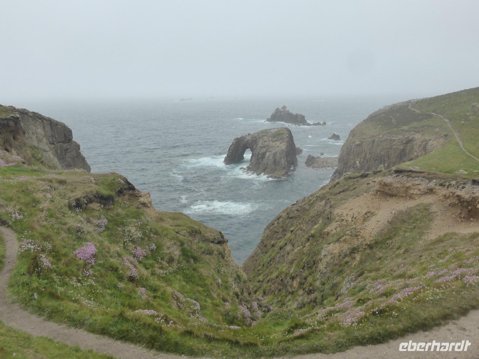 Anschließend fuhren wir weiter zum westlichsten Punkt Englands - Land´s End. Leider war es etwas diesig. Wir unternahmen eine schöne Wanderung entlang der südlichen Steilküste zum Felsen mit dem Torbogen. Wir genossen die Ruhe abseits der Touristenströme. Die Rückfahrt führte uns über die Hauptstadt Cornwalls - Truro - mit viel Verkehr. Nach diesem erlebnisreichen Tag freuten wir uns auf das Abendessen.