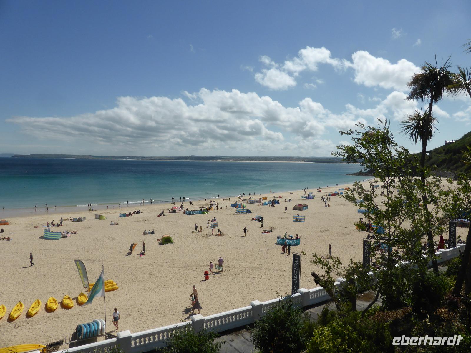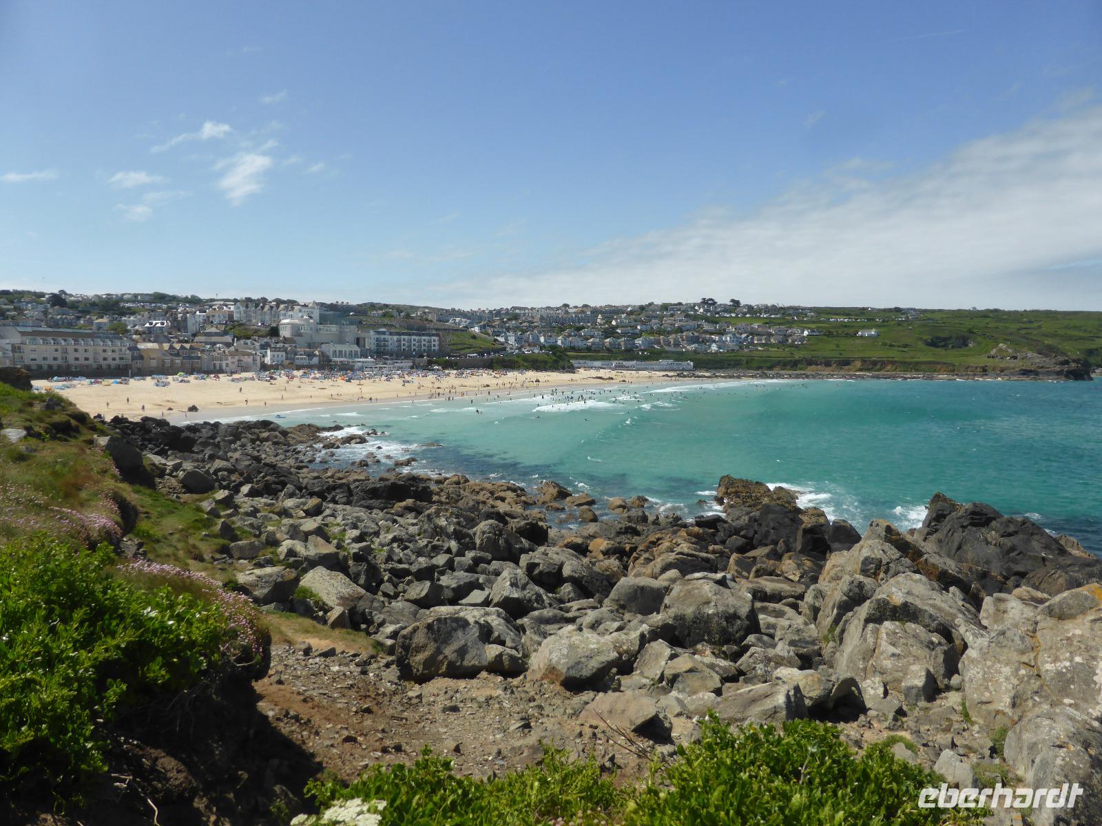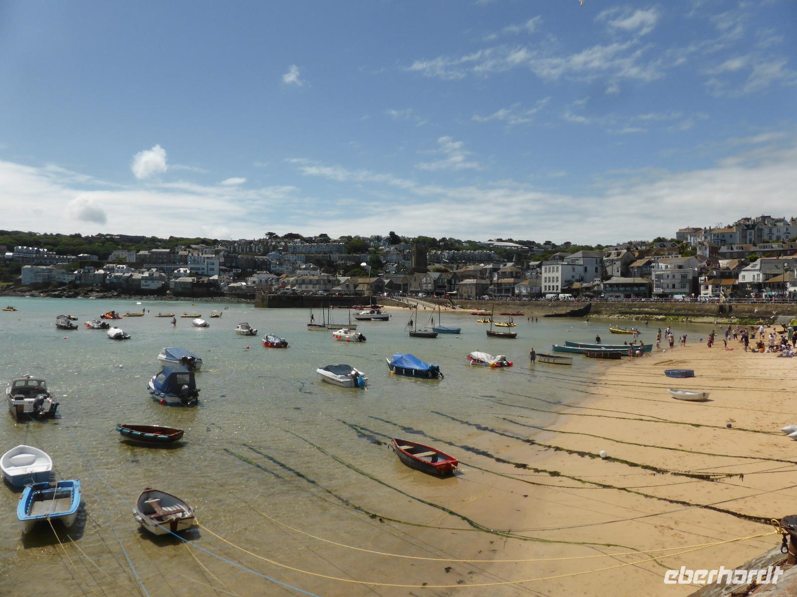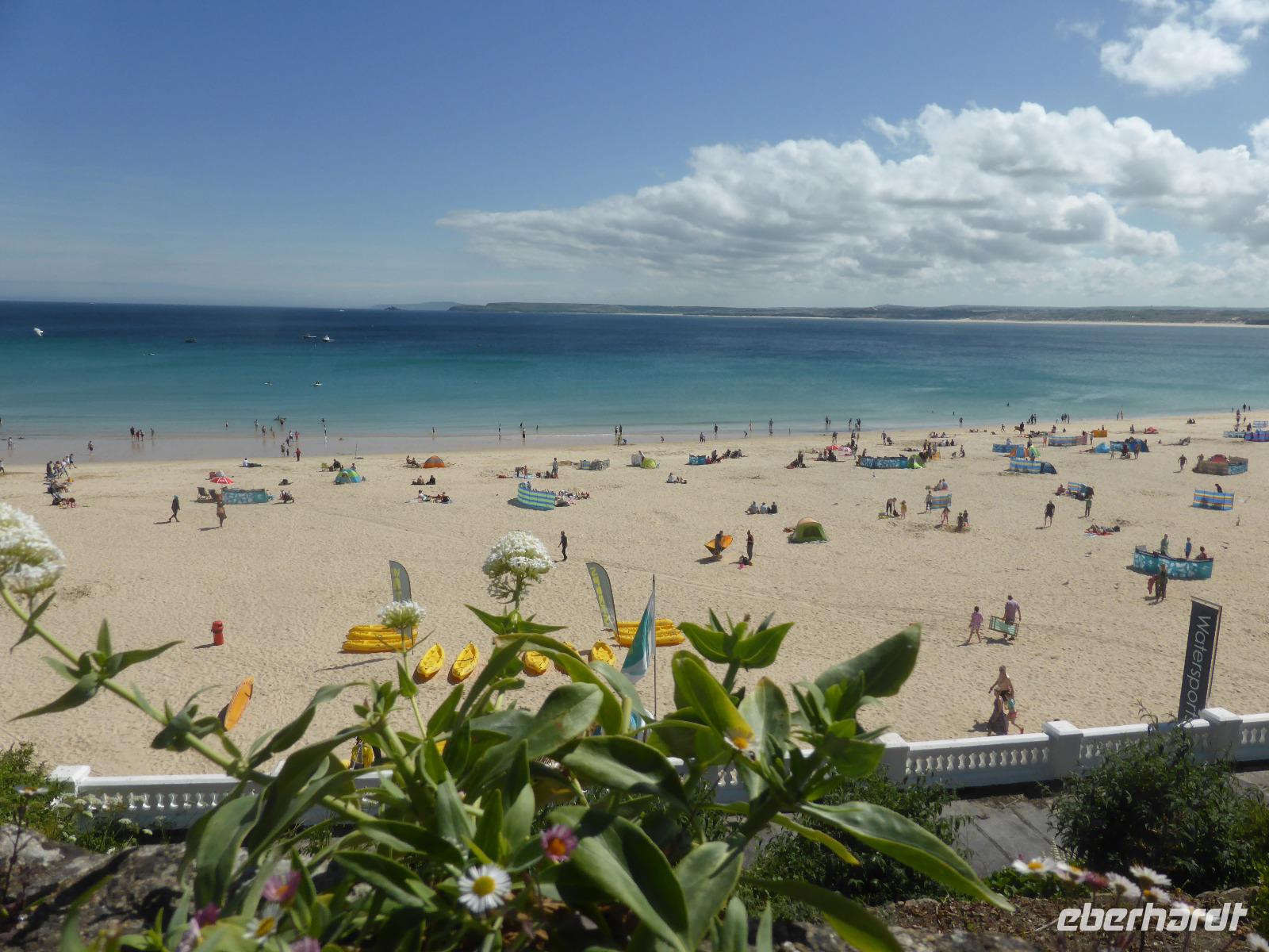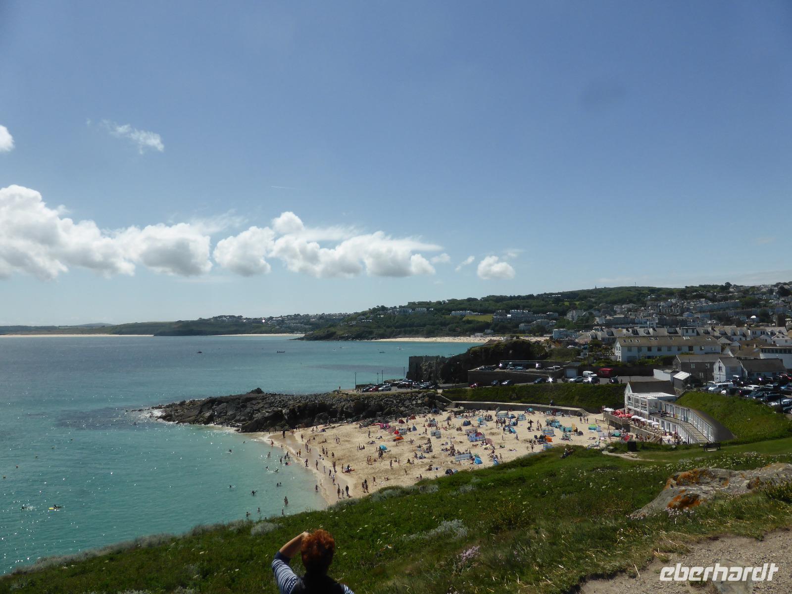 Bei schönstem Wetter traten wir unseren heutigen Tagesausflug an. In Lelant Salting nutzten wir den Zug der Great Western Railway um eine der schönsten Eisenbahnstrecken Großbritannien zu erleben. Die Bahnfahrt führte uns entlang der Salzwiesen mit Blick zu den Stränden und dem türkisblauen Wasser nach St. Ives. Es war ein kurzes, aber sehr schönes Vergnügen.