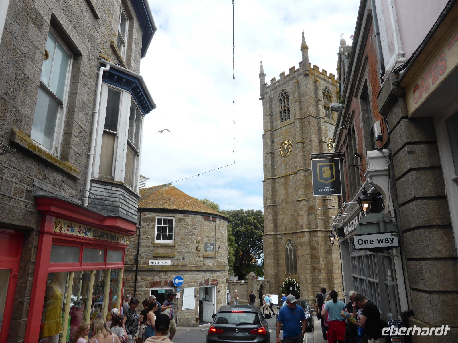 St. Ives ist eines der berühmtesten Ortschaften in Cornwall. Durch dieses Künstlerdorf mit seinen engen Gassen bummelten wir zu einer Cornish Pasties Bakery. Diese typische Mahlzeit der ehemaligen Bergwerksarbeiter ließen wir uns nicht entgehen. Jeder konnte sich nach seinem Geschmack ein Pastie aussuchen. Der Verdauungsspaziergang führte uns dann zur grünen Halbinsel von St. Ives. Wir spazierten um dieses herum und genossen die Blicke zur Stadt, den Stränden und dem Meer. Mit dem Shuttlebus gelangten wir zurück zu unserem Bus. Nach einer kurzen Fahrt erreichten wir die Healeys Cider Farm. Hier erfuhren wir etwas über die Herstellung und Lagerund und konnten sogar verkosten. 13 verschiedene Cider & Weine standen zur Auswahl. Zum Glück gab es zwischendurch auch einen leckeren Saft.
