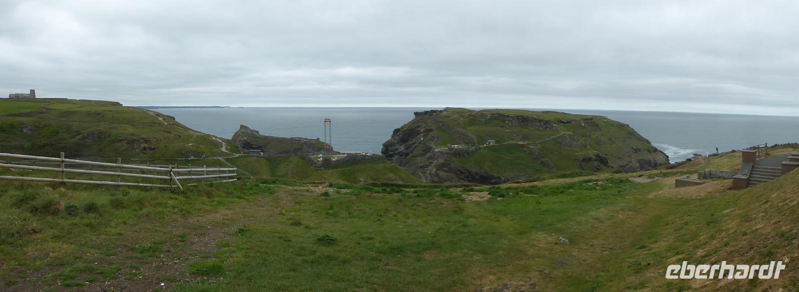 Bei schönstem Wetter traten wir unsere heutige Weiterreise an. Als erstes legten wir einen Fotostop am Camelot Castle Hotel ein. Hier konnten wir einen Blick auf das Tintagel Castle, König Artus´ Burg und sogar in das Hotel hinein werfen. Anziehungspunkt ist eine Burgruine auf zwei Klippen, wo Artus gezeugt und unter Anleitung des Zauberers Merlin aufgewachsen sein soll. Allerdings wurde die Burg ca. 700 Jahre nach König Artus anstelle einer keltischen Klostersiedlung errichtet. Wir konnten einen Blick auf die vorgelagerte Insel mit seinen Zeugnissen aus dem Dark Age sowie die Steilküste Cornwalls genießen.