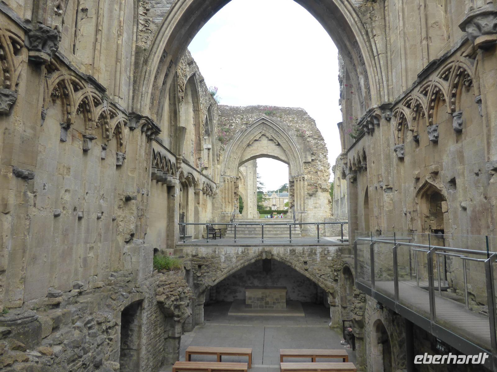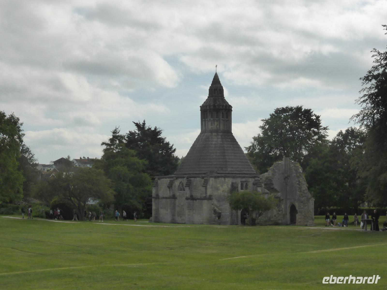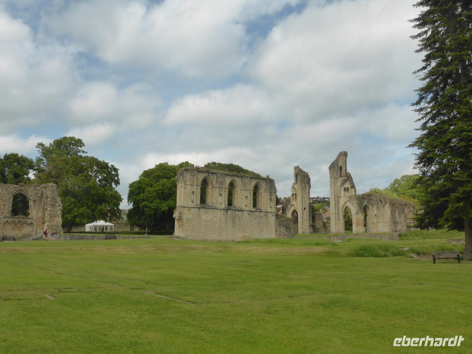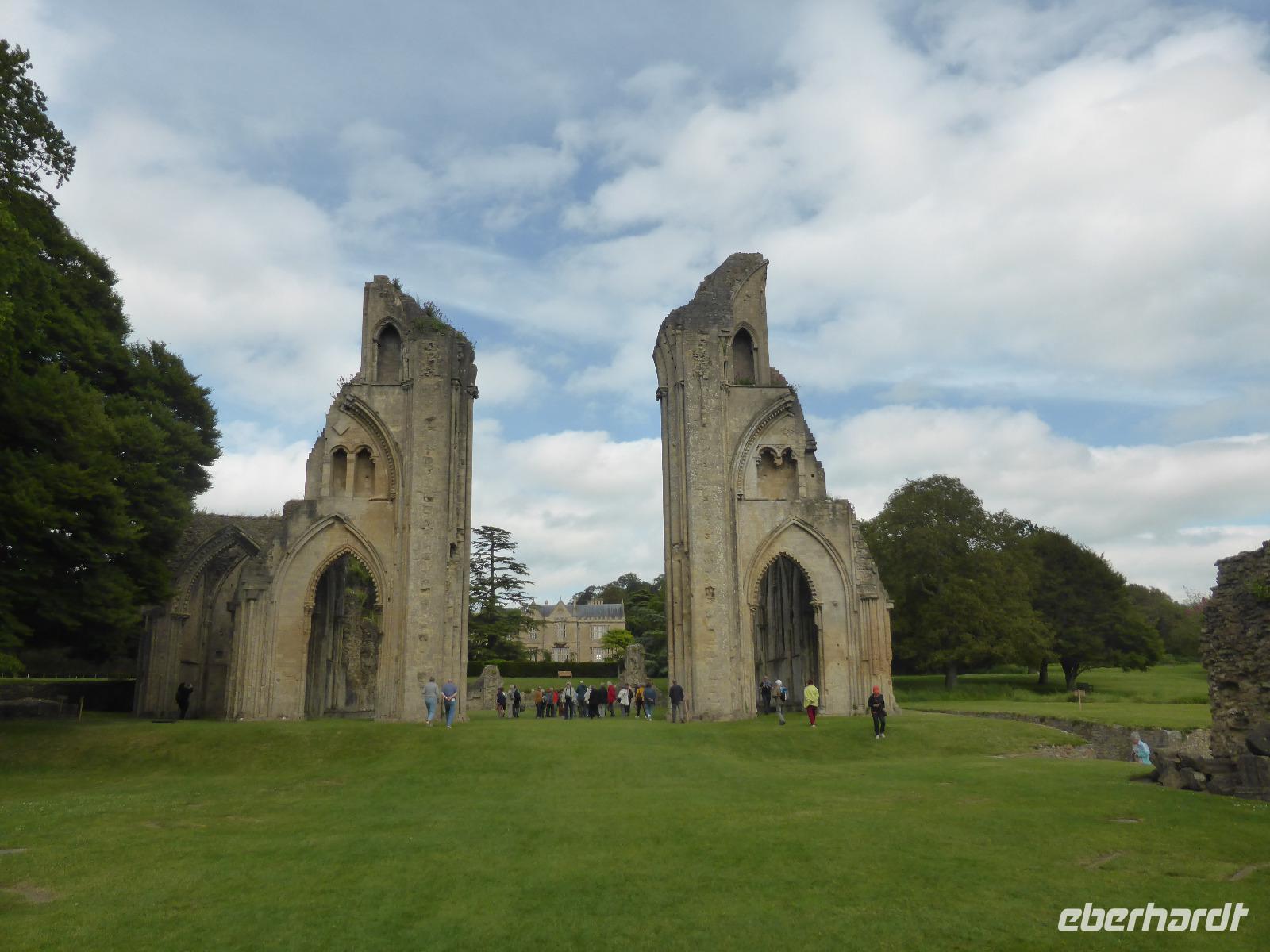 Glastonbury ist ein Wallfahrtsort für Esoteriker aller Art. Dies spiegelte sich auch in den zahlreichen Geschäften des Ortes wieder. Wir besuchten allerdings die ehemalige Abtei von Glastonbury. Hier soll Joseph von Arimathäa den Heiligen Gral vergraben haben und sich das Avalon von König Artus befinden. Während unseres Rundganges sahen wir die vermeintliche Grabstätte von König Artus und seiner Frau Guinevere, da 1191 Mönche der Abtei das Grab entdeckt haben wollen. Die beeindruckenden Ruinen der ehemals fast 177 m langen Klosterkirche beherrschen heute noch das grünbewachsene Areal. Gut erhalten sind die Marienkapelle sowie die Abtsküche.