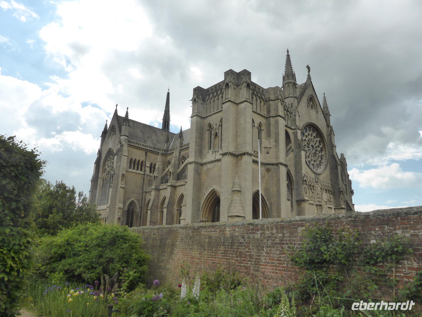 Nach unserem ersten englischen Frühstück führte uns die Reise weiter nach Arundel, ein kleines Dörfchen mit einer Bilderbuchburg. Von Weitem grüßten uns bereits die trutzigen Rundtürme der Bilderburgburg. Aufgrund des Mittelalterfestes war schon recht reger Betrieb in diesem kleinen Städtchen. Wir spazierten durch die Gärten zur kleinen Kapelle und den ummauerten Gärten. Pünktlich um 12:00 Uhr konnten wir dann die Gemächer besichtigen. Besonders beeindruckten die 40 m lange und 15 m hohe Baronenhalle mit einer gewaltigen eichenen Decke, die Gemäldegalerie, der Speisesaal sowie die Bibliothek.