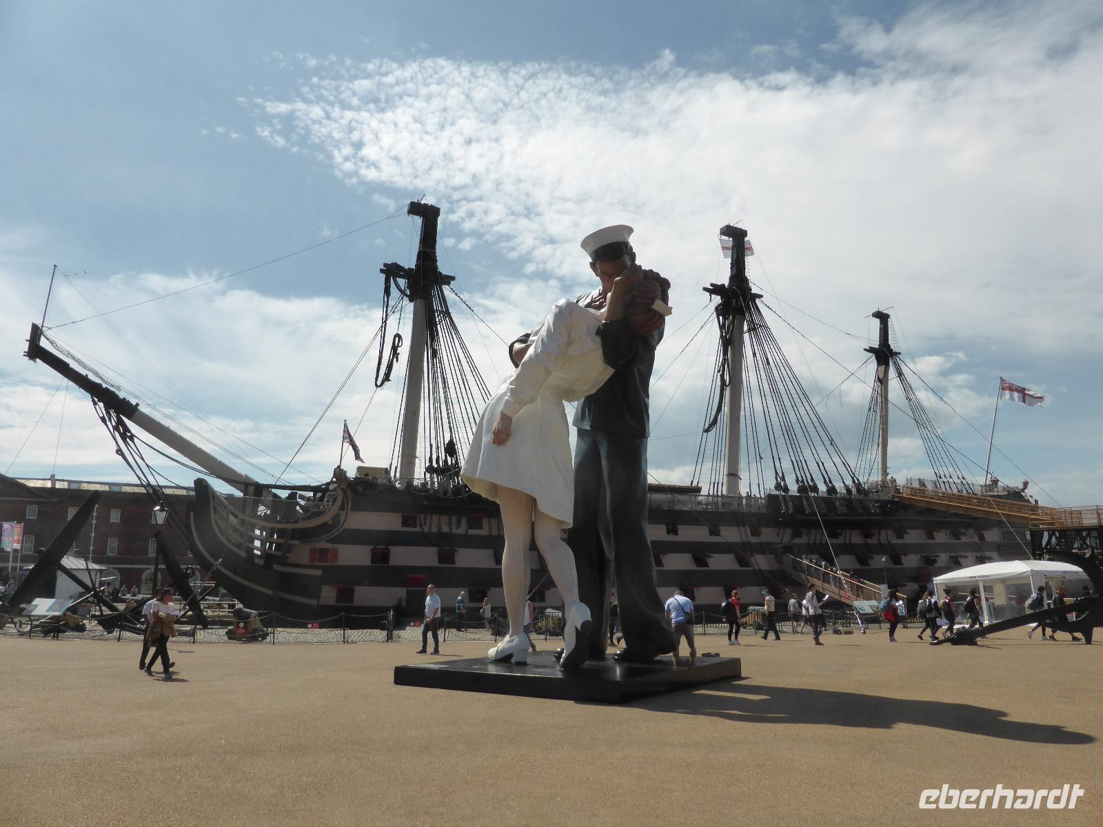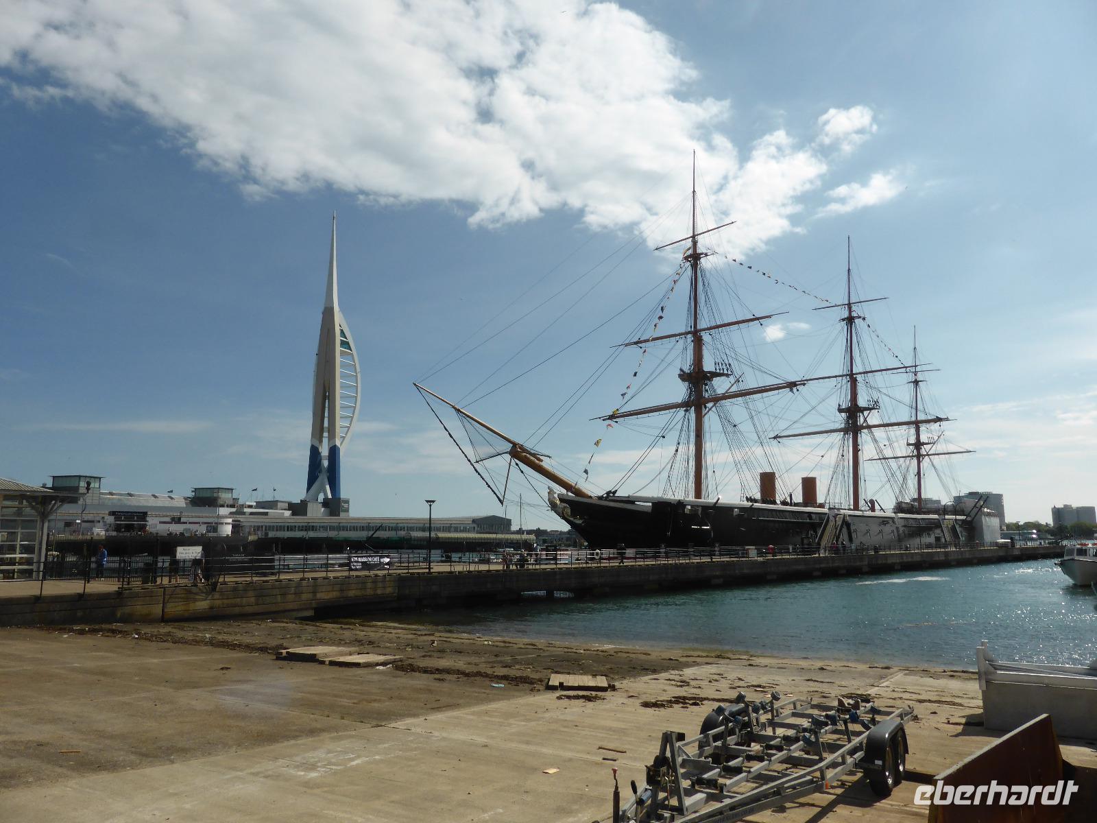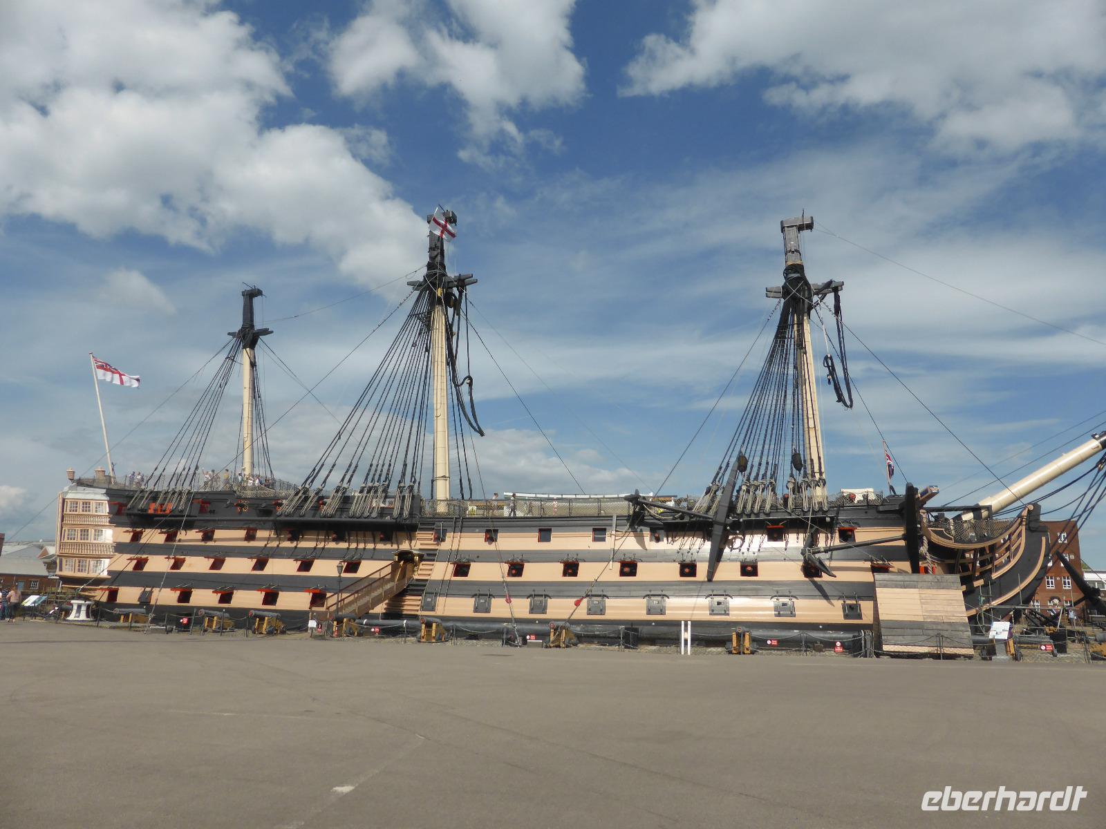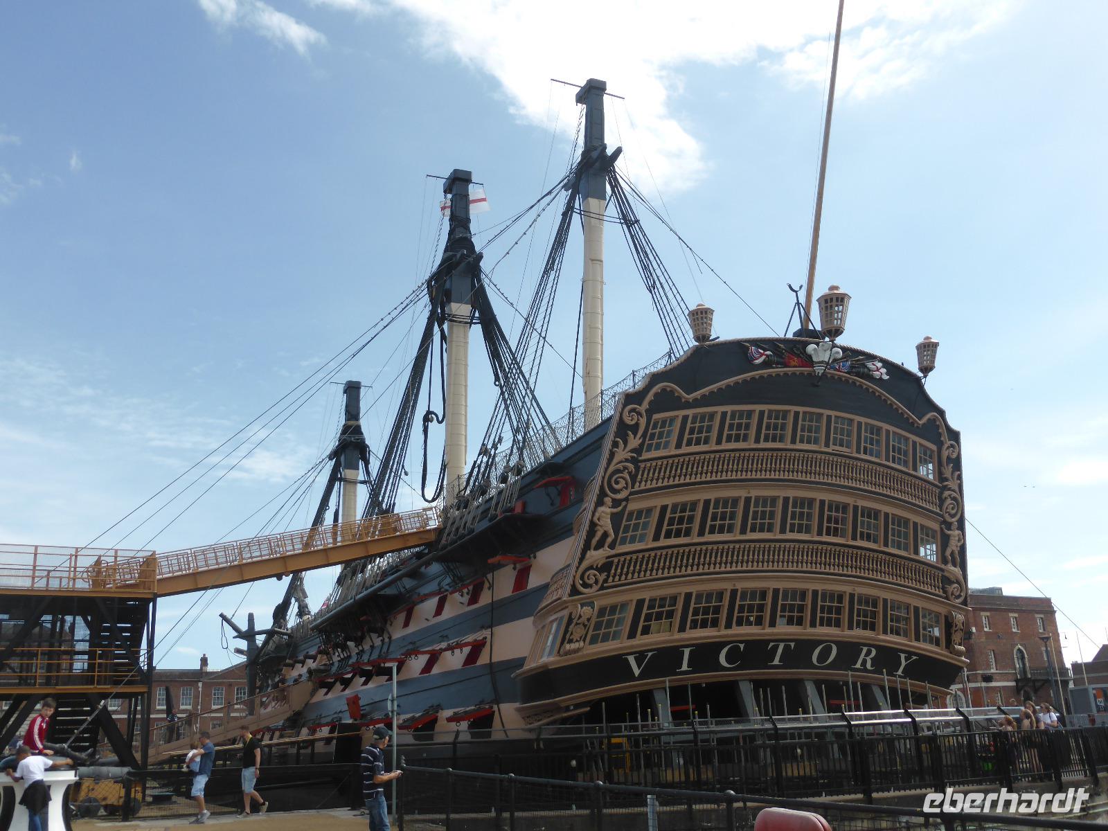 Die Weiterreise führte uns nach Portsmouth, dem wichtigsten Marinestützpunkt England. Der sichere Naturhafen von Portsmouth wurde Ende des 15. Jh. befestigt und trägt den Beinamen „Flagship of Maritime England". In dem Historischen Hafenanlagen befinden sich die HMS Warrior, das erste stahlbewehrte Kriegsschiff, welches 1860 vom Stapel gelaufen ist, die Mary Rose, der Stolz der Kriegsmarine von Heinrich VIII., das Royal Naval Museum sowie die HMS Victory. Unser Ziel war die HMS Victory, das Flaggschiff von Admiral Nelson, die immer noch uneingeschränkt seetüchtig ist. Anhand der deutschen Beschreigung konnten wir einen kleinen Rundgang über die 9 Decks unternehmen. Dabei erfuhren wir viel über die Lebensweise der Matrosen und warfen einen Blick in die Kabine von Lord Nelson. Im Anschluss nutzen einige Gäste die Möglichkeit oder sich den Wind im nahegelegenen Hafeneinkaufsviertel um die Nase wehen zu lassen. Der Spinaker Tower war immer in Sicht.