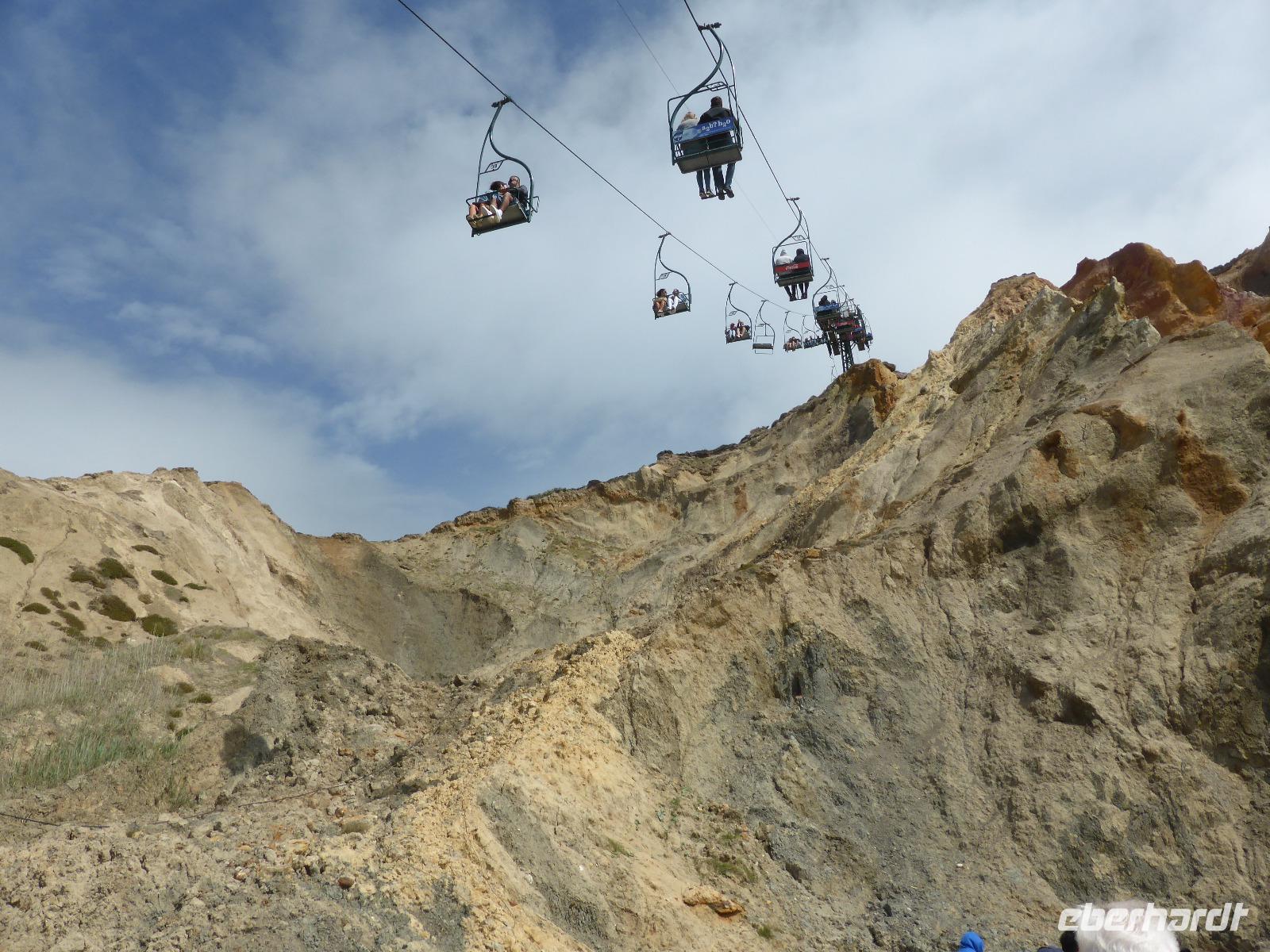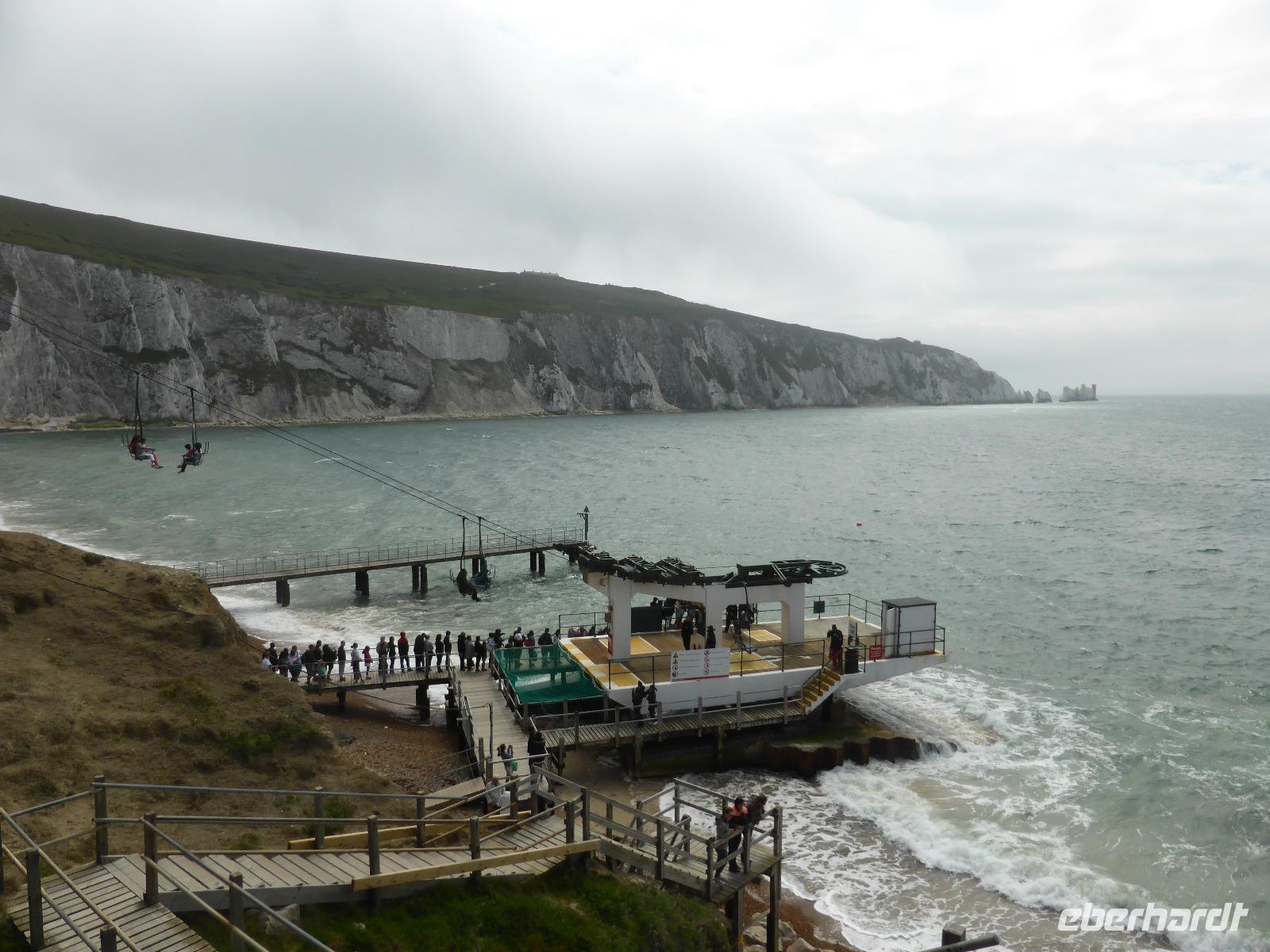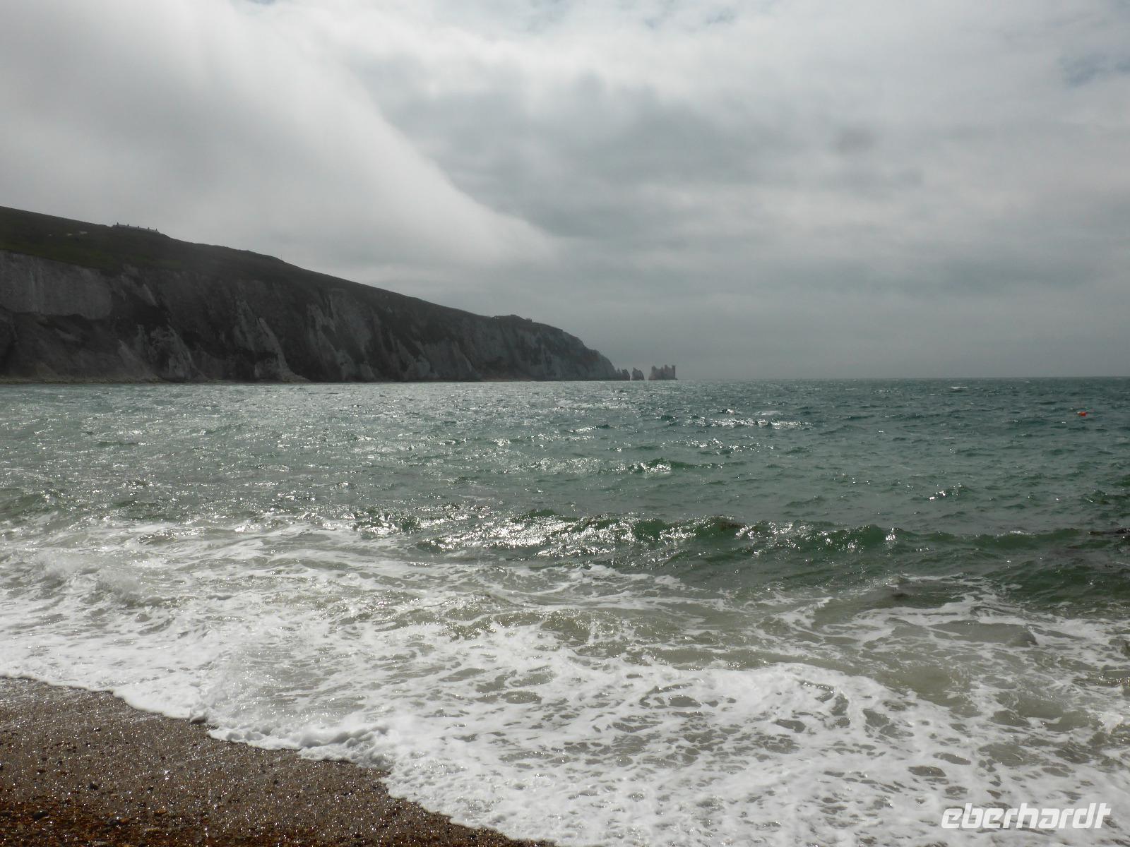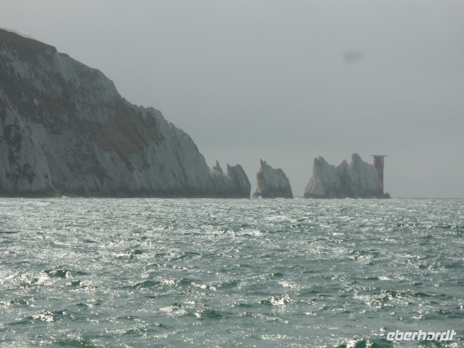 Entlang der Südküste vorbei an dem Heilbad Ventnor mit seinem botanischen Garten sowie dem St. Catherine´s Point dem südlichsten Punkt der Insel gelangten wir zu The Needles und die Alum Bay. Leider verschlechterte sich das Wetter und auf dem Weg schüttete es ziemlich sehr. Doch fast pünktlich zum Ausstieg hielt es wieder auf zu regnen. An der Westspitze der Isle of Wight ragen drei große weiße Kreidefelsen aus dem Meer - die Needles. Sehr beeindruckend waren die bunten Sandsteinfelsen in dieser Bucht. Wir spazierten die Treppen hinunter zum Wasser, um die verschieden farbigen Sandsteinschichten zu betrachten. Einige Gäste benutzen auf dem Rückweg den Sessellift. Der Rückweg zur Fähre führte uns über die Nordwestküste zurück nach East Cowes. Unsere Fähre erwartete uns bereits und brachte uns nach einer einstündigen Überfahrt über den Solent und durch den Mündungstrichter des Southampton Waters zurück nach Southampton.