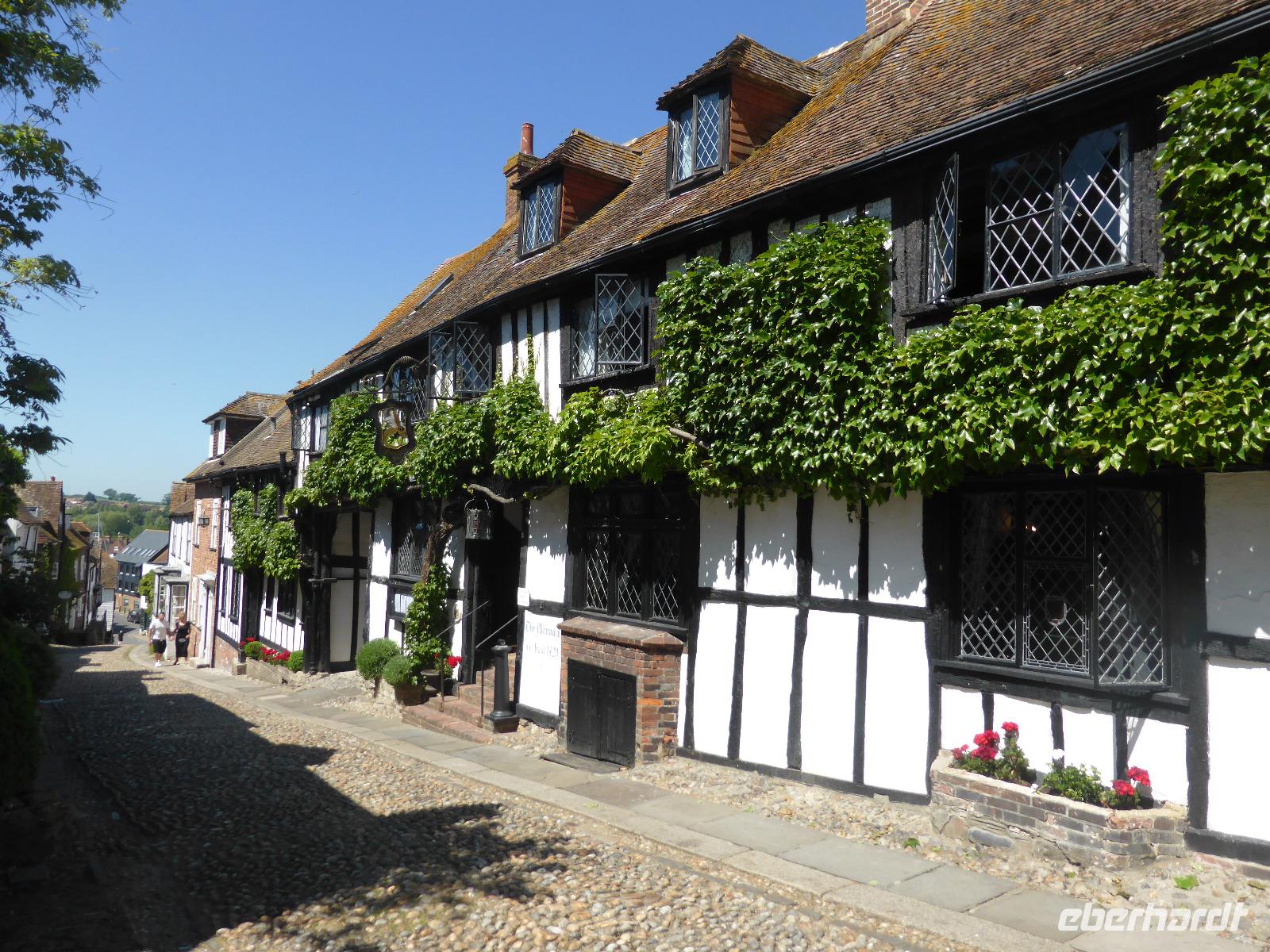 Nach einem für französische Verhältnisse reichhaltigen Frühstück starteten wir zum Fährhafen von Calais. Die Überfahrt über den Ärmelkanal verlief ruhig. Die weißen Klippen von Dover begrüßten uns in England bei herrlichem Sonnenschein. "Ein Kleinod in die Silbersee gefasst..." (W. Shakespeare, Richard II.) - diese Zeilen sind jedem Engländer bekannt. Der westliche Kreidefelsen heißt Shakespeares Cliff, denn Englands großer Dramatiker siedelte dort eine Szene im King Lear an. Unser erster Aufenthalt war das Puppenstubenstädtchen Rye. Wir bummelten durch die katzenkopfgepflasterten Straßen vorbei an den blumengeschmückten, Efeu bewachsenen Fachwerkhäusern und fühlten die rauen Steine unter den Sohlen, die uns in vergangene Jahrhunderte zurück versetzten. Rye gehörte zum Hafenverband der Cinque Ports, und war damit ein wichtiger Militärstützpunkt und den Franzosen ein Dorn im Auge. Während eines gemütlichen Spaziergangs lernten wir die Schönheiten des Städtchens kennen. Durch die Gassen erreichten wir die Pfarrkirche St. Mary´s sowie dem Ypres Tower. Im Turm der Kirche befindet sich eine der ältesten noch funktionierenden Uhren Großbritanniens. Über die schönste Straße - die Mermaid Street - vorbei am berühmten Pub Mermaid Inn aus dem Jahr 1420 ging es hinunter zu den Netzspeichern. In unserer Freizeit genossen wir das Flair der Gemütlichkeit bei Fish and Chips oder einem Bummel durch die Gassen. Die Weiterfahrt führte uns nach Hastings, wo Wilhelm der Eroberer an Land ging. Hastings ist von allen Seebädern vielleicht das fadeste, jedoch berühmt durch gleichnamige Schlacht. Diese fand im Jahr 1066 im nahe gelegenen Battle statt. Der Normanne Wilhelm der Eroberer siegte und ließe sich im gleichen Jahr zum englischen König krönen.