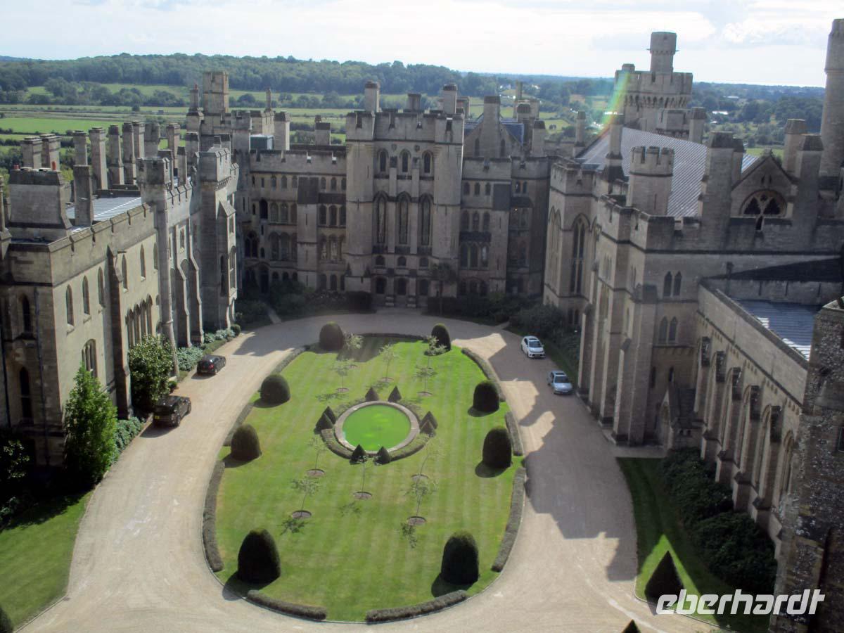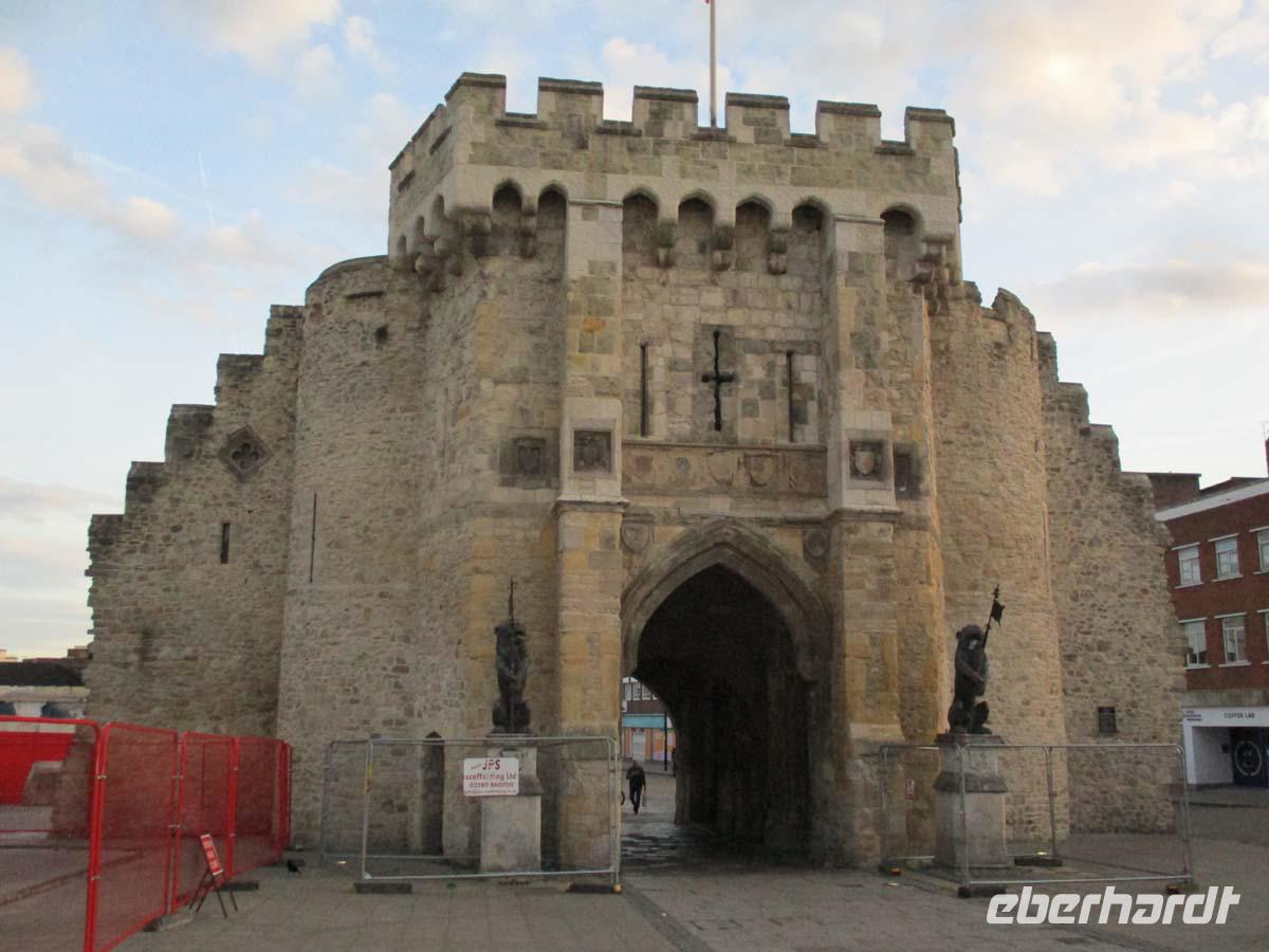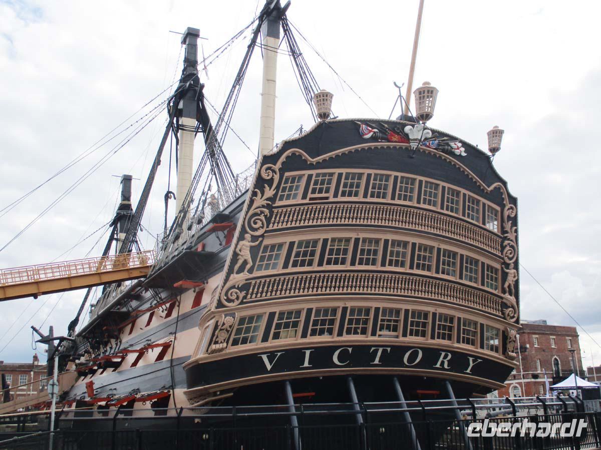 Nach einem ersten „english breakfast" reisen wir nach Arundel. Hier steht eines der größten und besterhaltenen Castles Englands. Bevor wir jedoch das Schloß besichtigen, scheint uns ein Besuch der Kathedrale lohnenswert. Ende des 19. Jh. wurde sie von Joseph Hansom in lupenreiner Neogotik errichtet. Man erkennt das sofort: Der Bau ist irgendwie zu perfekt, zu ebenmäßig. Man wollte eben noch schöner gotisch bauen, als es die mittelalterlichen Meister taten. Anschließend gehen wir an der Pfarrlirche St. Nikolas vorbei, in der leider gerade ein Veranstaltung ist. Sie ist der protestantische Teil einer Doppelkirche. Der östliche Teil ist die Fitzalan Chapel, die katholische Grabe der Dukes of Norfolk und nur durch den Schlossgarten für uns zu erreichen. Danach geht es in die Park- und Gartenanlage um Arundel Castle. Herrliche Gärten gilt es zu entdecken. Geschwungene Wege geben ein perfektes Bild englischer Gartenarchitektur ab. Sie führen nun in die Fitzalan Chapel, die einzigartig ist. Sie hat in eine Trennmauer zur St. Nikolas Kirche, sodaß Katholiken und Protestanten dort ihre Gottesdienste jeweils auf der eigenen Seite abhalten konnten. Das Schloß selbst öffnet Mittags und wir besichtigen die Räumlichkeiten, welche von den normannischen Anfängen des 11. Jh. bis in die Gegenwart reichen. Einen Teil des Schlosses bewohnt noch die Familie des Earls von Arundel. Diesen kann man natürlich nicht besichtigen. Aber auch der öffentliche Teil des Castles ist einen Besuch wert und reicht bis in normannische Zeiten zurück. Nach dem Schloßbesuch begeben uns nach Portsmouth in die historischen Docks. Hier besichtigen besichtigen wir die HMS Victory. Erbaut 1765 ist es das älteste, noch im Marinedienst stehende Schiff der Royal Army: allerdings nur noch für zeremonielle Zwecke. 850 Mann Besatzung hatte sie und Vizeadmiral Nelson gewann auf ihr die Schlacht von Trafalgar gegen die Franzosen, in welcher er selbst tödlich verwundet wurde. Wie schwer das Leben und die Arbeit an Bord eines solchen Schiffes war erfährt jeder, welcher die niedrigen, kanonenbestückten Decks durchwandert. Bei der Abreise aus Portsmouth grüßt uns noch einmal der Spinnacker Tower mit seiner Aussichtsplattform in 100 m Höhe. Am Abend erreichen wir unser Hotel in Southampton, wo wir uns das Abendessen schmecken lassen.