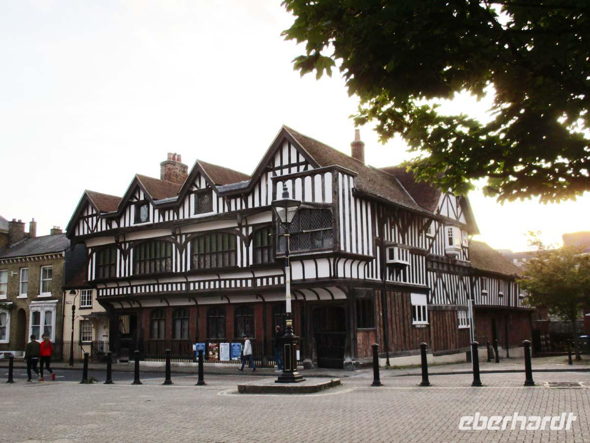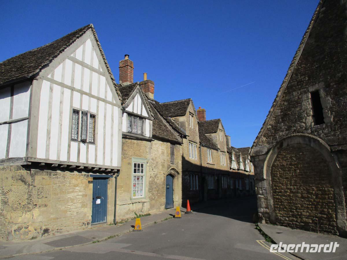 Gleich hinter Bristol beginnen die Cotswolds. Es ist eine hügelige Landschaft, die nach Norden recht bergig wird und mitunter als das Herz Englands bezeichnet wird. In der Tat: Weicht man von den Nationalstraßen oder den Autobahnen ab, befindet man sich schnell in engsten Straßen von Feldwegbreite. Die Häuser hier sind allesamt aus dem anstehenden Kalkstein von beigegelber Farbe gebaut. Sie geben den kleinen Dörfern ihr typisches Gepräge. Wir besuchen das Dorf Lacock. Mittelalter pur! Krumme und schiefe Häuschen mit Rosen bekränzt. Gibt es ein schöneres Englandklischee? Auf unserm Rundgang durch das Kleinod mittelalterlicher Profanarchitektur gibt es auch letzte Gelegenheiten sich mit süßen Köstlichkeiten einzudecken. Nebenbei erblicken wir die zu einem Herrenhaus umgebaute Abtei, welche genauso Drehkulisse für Harry Potter Filme war, wie das Haus der Potters, welches direkt neben der Kirche aus dem 14. Jh. liegt. Leider müssen wir aufbrechen. In Dover erreichen wir nach unserer fast staufreien Reise die Fähre, welche ein wenig verspätet ablegt. Am späten Abend landen wir in Calais an, wo wir im Hotel direkt am Hafen einchecken und unser letztes Abendessen auf dieser Reise genießen.