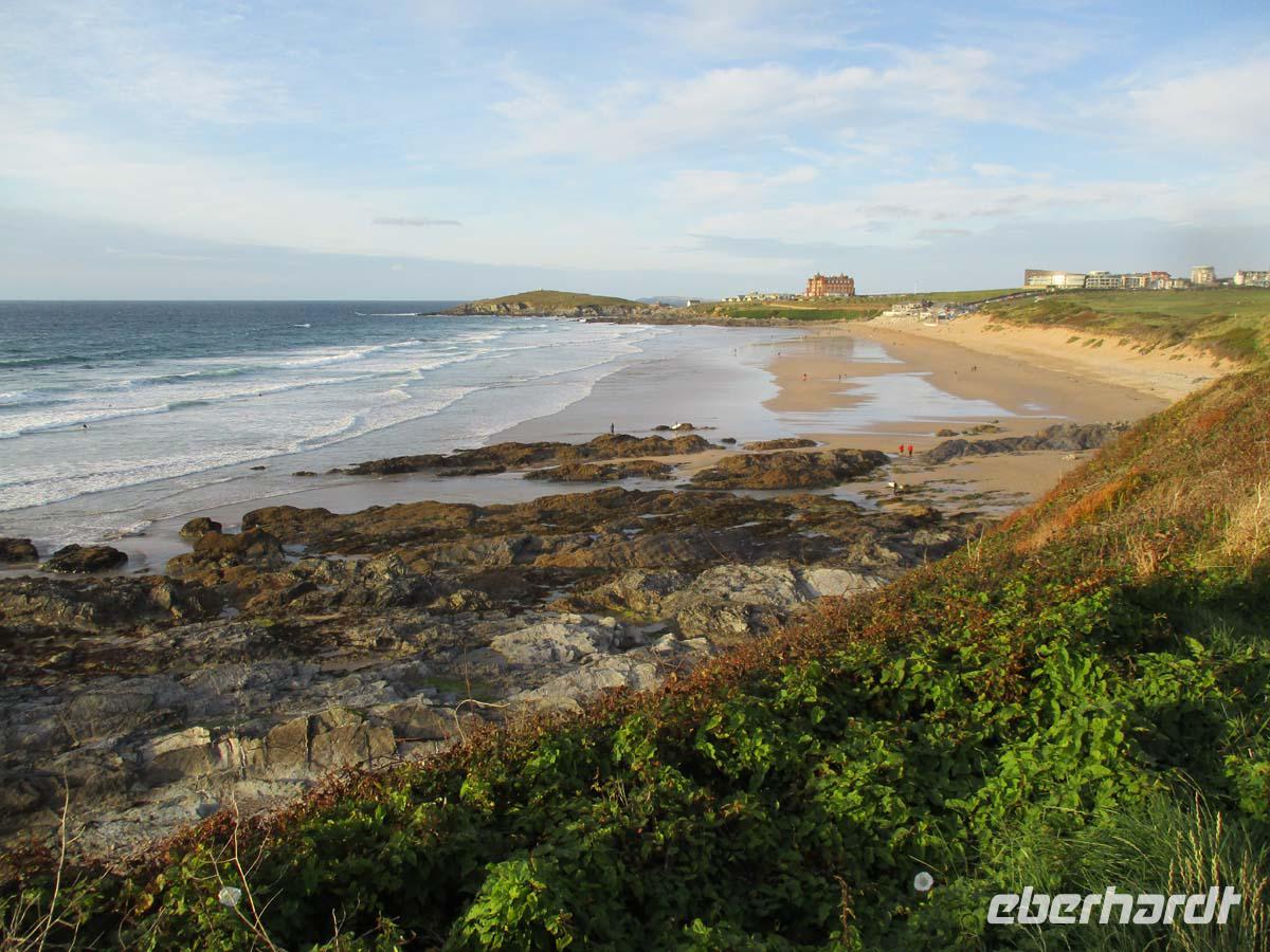 Zunächst reisen wir ins Dartmoor. Der zentrale Teil ist seit 1951 als Nationalpark ausgeschrieben. Die Straßen werden immer enger, aber wir meistern Dank unseres versierten Chauffeurs Ingo auch diese. Größter Landbesitzer hier ist übrigens der Prince of Wales, also Charles. In Moretonhampstead besichtigen wir die sehr große Dorfkirche aus dem 14. Jh., sowie das Armenhaus. Es ist einzigartig in der Architektur und mindestens aus dem 15. Jh. Hinter Moretonhampstead stoppen wir bei weitem Blick in die Landschaft in Gesellschaft von Schafen und den kleinen Dartmoorponys. In Postbridge gibt es eine so genannte Clapperbridge, eine archaische Brücke aus grob zugerichteten Kalksteinen. Auch vor dem berüchtigten Gefängnis von Princetown legen wir einen Stop ein. Es hat oft Eingang in die Literatur gefunden, z. B. bei Agatha Christie. Maximal 10 m hohe Granitfelsen auf Hügelkuppen, von denen man weit in die Landschaft blicken kann nennt man Tors. Vor einem legen wir einen letzten Stop ein bevor wir uns nach Lanhydrock aufmachen. Am Nachmittag sind wir im Lanhydrock House zum Afternoon Tea mit Scones, Kuchen und Sandwiches geladen. Das riesige Anwesen war schon ab 1621 in im Besitz der Familie Robartes. Was wir sehen ist das Schloß einer superreichen Familie aus viktorianischer Zeit, die es nur 4 Wochen im Jahr mit 80 Bediensteten als Sommersitz nutzte. Es ist, als wäre die Zeit stehen geblieben. Lange verbringen wir in den original erhaltenen Räumen und den ausgedehnten Gärten ringsherum. Am Abend erreichen wir unser Hotel in Newquay, dem englischen Surferparadies mit 10 Stränden von 11 km Länge.