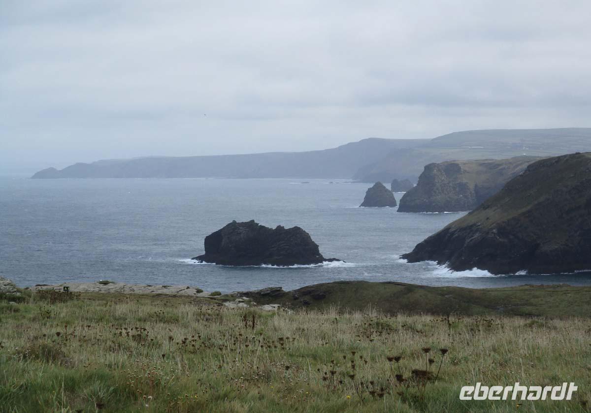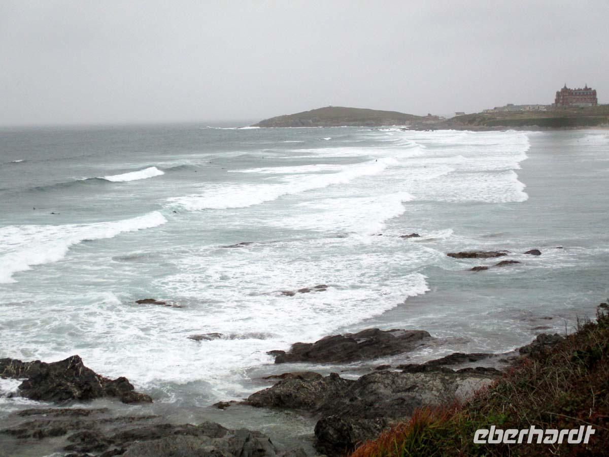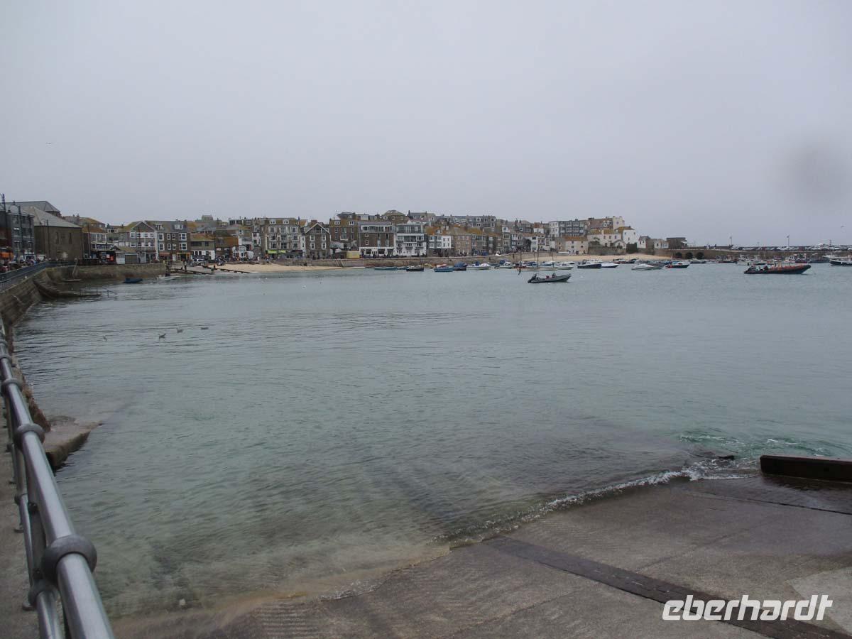 Unser erstes Ziel ist heute das Pendant von Mont St.Michel in Frankreich. St. Michaels Mount wurde tatsächlich von den Mönchen dort gegründet. Wilhelm der Eroberer rief sie schon im 11. Jh. hierher. Nach und nach wich die religiöse Nutzung einer militärischen. Von hier aus wurde z. B. das erste Signal bei der Entdeckung der spanischen Armada im 16. Jh. gegeben. Die Familie Aubyn, welche die Insel im 17.Jh. übertragen bekam, lebt noch immer dort. Zwar hat der Lord 1964 alles dem National Trust übereignet, nicht jedoch ohne für seine Nachkommen ein Wohnrecht für die nächsten 999 Jahre zu sichern. Weil Ebbe ist, können wir die Insel zu Fuß erreichen. Wir setzen unsere Reise zum westlichsten Punkt der britischen Insel, trefflich „Lands End" genannt fort. Noch ist es trocken und die Landschaft wird durch blühende Heide in violette Farbtöne getaucht. Hier kann man auch, wie in vielen Ortschaften die Pasties probieren. Es sind mit Lamm und Wurzelgemüse gefüllte Teigtaschen, welche sehr sättigend sind. Am Nachmittag erreichen wir St. Yves. Zwei Strände rahmen die total verwinkelten Gassen ein. Uralte Wohnhäuser, eng zusammen stehend in schmalsten Gässchen münden am Hafen, der den weiten Blick aufs Meer freigibt. Bei einem Rundgang kann man in individueller Freizeit herrlich in Läden mit Kunsthandwerk und lukullische Genüssen stöbern. Und dann kommt es doch noch, nasskaltes Mistwetter. Aber da sitzen wir schon wieder alle in unserem warmen und trockenen Bus und sind auf dem Weg nach Newquay zu unserem Hotel.
