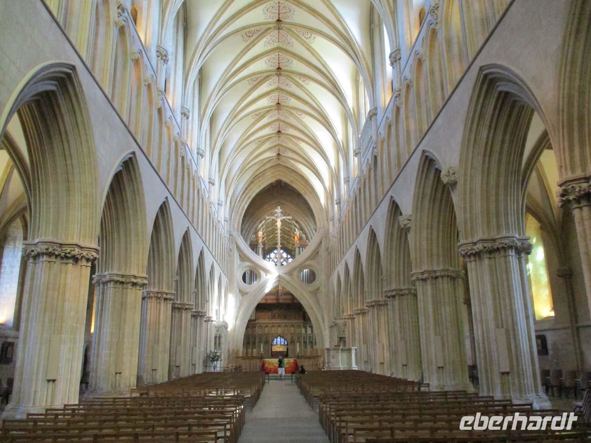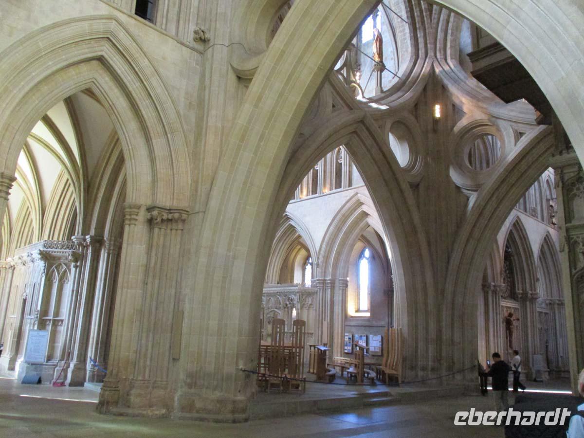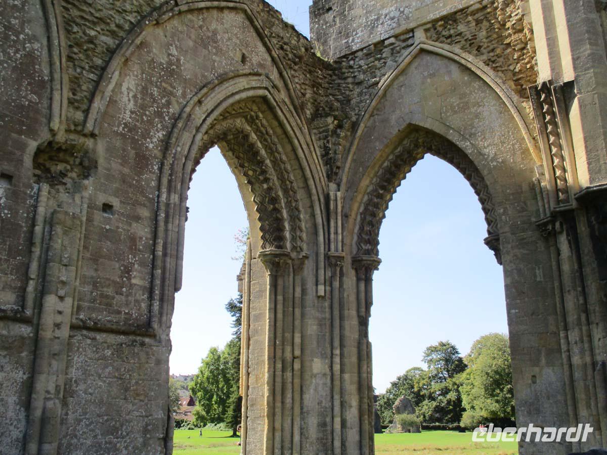 Unser erstes Ziel, Glastonbury soll der Eingang in die Feenwelt Avalon sein, wo die Fee Morgane (Fata Morgana leitet sich davon ab) ihren Bruder Artus beheimatet. Laut walisischer Variante der Artussage die Apfelinsel in einem See. Nach englischer Version aber der Tor oberhalb der einst mächtigen Abtei. Joseph von Arimathäa soll die Abtei gegründet haben. Auch den heiligen Gral soll er dort vergraben haben und als er seinen Stab in die Erde steckte 63 n. Chr. wuchs dort ein Weißdornbusch. Dieser steht heute noch. Im 10. Jh. nachweislich gegründet, wurde die Abtei durch ein Feuer 1184 völlig zerstört. Bei den Vorbereitungen für den Neubau stießen Mönche 1191 auf eine Bleiplatte mit der Inschrift: „Hic iacet sepultus inclitus rex Arturius in insula Avalonia", also hier liegt der Berühmte König Artus begraben. Dieser Fund ist vom damaligen Diakon bestätigt worden und die Bleiplatte wird auch noch im 16. Jh. vom Augenzeugen beschrieben. 1962 konnten Archäologen die Existenz dieses Grabes per Nachgrabungen zweifelsfrei bestätigen; nicht aber, wer darinnen bestattet war! Imponderabilien hin, Unwägbarkeiten her: Glastonbury ist zweifelsohne eine der identitätsstiftendsten Orte Britanniens. Mit Mythen und Sagen umrankt, lassen uns auch noch die Ruinen die Macht und Mächtigkeit dieser Abtei spürbar werden. Doch auch die kleine Stadt hat es in sich. Viele Läden mit allem, was das Herz Aller höher schlagen läßt, die mit Esoterik etwas anfangen können. Aber leckeren Kuchen gibt es in den vielen kleinen Cafés auch. In Wells besichtigen wir die Kathedrale. Es ist die erste, welche völlig im damals neuen Stil der Gotik ab der 2. H. des 12. Jh. errichtet wurde. Einzigartig sind auch die imposanten Scherenbögen in der Vierung. Kleine Details an den Säulenkapitellen sind durchaus weltlich. Wie z. B. ein Mann mit Zahnschmerzen, oder ein anderer, der sich einen Splitter aus dem Fuß zieht. Doch nun reisen wir nach Brighton, der alten mittelalterlichen Großstadt am Avon. Das Zentrum des alten Stadtkerns ist heute eine Rasenfläche. Im 2. Weltkrieg wurde er von deutschen Bombern dem Erdboden gleichgemacht und nur die Ruine der Stadtkirche St. Peter ragt als Mahnmal aus der Fläche. Drumherum haben sich aber trotz allen viele schöne Gässchen erhalten, und am Kanal zum Fluß Avon sind aus alten Lagerhäusern schicke Büros und Wohnungen geworden. Unser Hotel liegt direkt neben der riesigen Pfarrkirche St. Mary Redcliff von der Elisabeth I. sagte, es sei die schönste in ganz England. Nach dem üppigen Abendbüffet macht manch einer noch einen Verdauungsspaziergang in die Stadt. Heute verabschieden wir unsere Fluggäste, die morgen noch den gesamten Vormittag zur Erkundung der Stadt zur Verfügung haben.