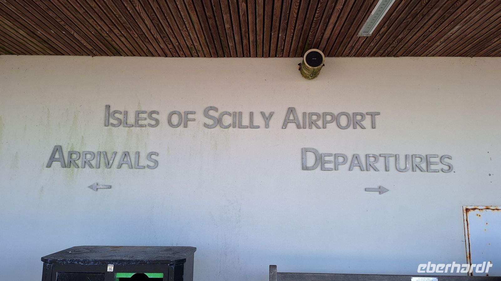 Wir fahren nun weiter Richtung Land's End .- wie der Name schon verspricht, also quasi das Ende der (britischen) Welt. Lange Zeit dachte man, dass das etwas nördlicher gelegene Cape Cornwall der westlichste Punkt Großbritanniens sei, doch heute weiß man es besser. Von Land's End ganz im Südwesten sind es 794 Meilen bis nach John O'Groats ganz im Nordosten Schottlands – eine Strecke die gerne von Extremsportlern als Rekord-Distanz gewählt wird. Wir biegen jedoch kurz vorher ab und erreichen schon kurz darauf den Flughafen Land's End. Hier müssen wir uns für's Erste von Hayley verabschieden und einchecken für unseren Flug nach St Mary's. Das Prozedere ist hier recht einfach, schließlich bleiben wir im Land und der Flug dauert nur knapp 20 Minuten – ein bisschen aufregend ist es jedoch schon, denn die meisten von uns sind noch nie mit so kleinen Maschinen geflogen. Die Flugzeuge sind sogar so klein, dass unsere Gruppe geteilt werden muss. Es folgt eine kurze Sicherheitsunterweisung und dann geht es auch schon los. Aus den Fenstern sehen wir das türkise Wasser der keltischen See und können auch den Leuchtturm von Land's End erkennen. Schnell ist der Spaß schon wieder vorbei und wir landen auf der größten der fünf bewohnten Scilly-Inseln. Insgesamt umfasst das Archipel, das etwa 45 Kilometer vor der kornischen Küste liegt, 150 Inseln und Inselchen und gilt auch als die Karibik Englands. Vom Golfstrom verwöhnt gedeihen hier Pflanzen aus allen Erdteilen wunderbar und die Temperaturen sind das ganze Jahr sehr mild. Wir freuen uns schon auf die ersten Entdeckungen.