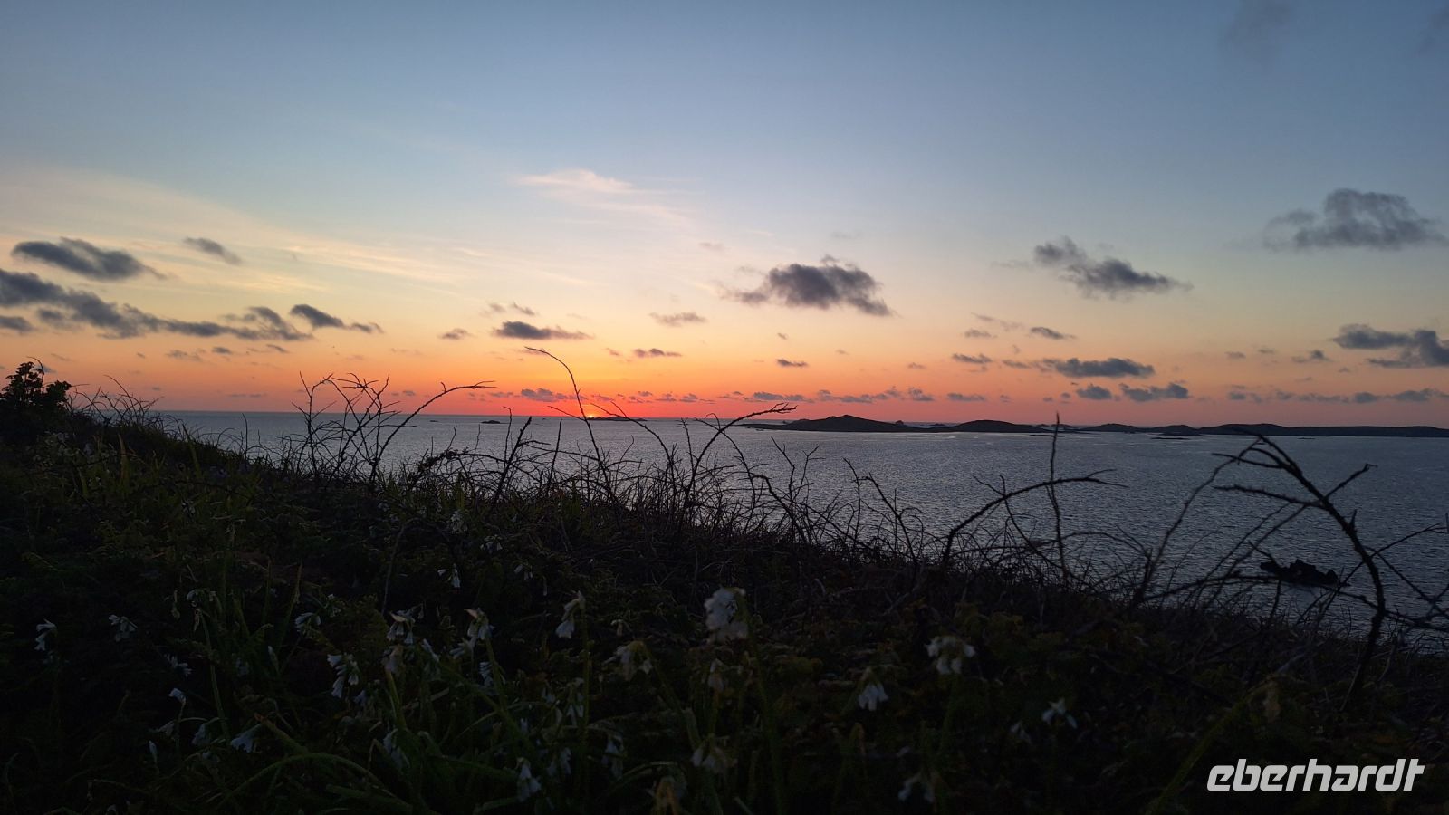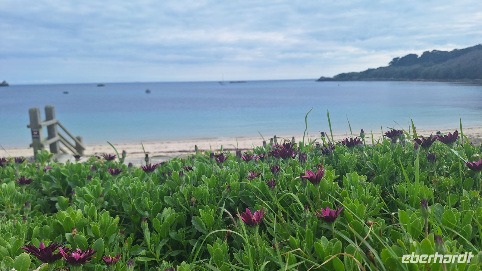 Nach einem leckeren Frühstück spazieren wir dann gemeinsam zum Hafen: unser heutiges Tagesziel ist die Insel St. Martin's. Mit einem kleinen blauen Boot werden wir in knapp 20 Minuten auf die benachbarte Insel gebracht – und während auf der Überfahrt noch ein paar vereinzelte Regentropfen fallen, wird das Wetter kurz nach der Ankunft minütlich besser. St Martin's gilt als die abwechslungsreichste der Inseln, denn während der geschützte Süden mit schönen Sandstränden und üppiger Vegetation begeistert, beeindrucken im Norden raue Steilküsten und Moorlandschaft – und das alles bei einem Umfang von knapp 10 Kilometern.